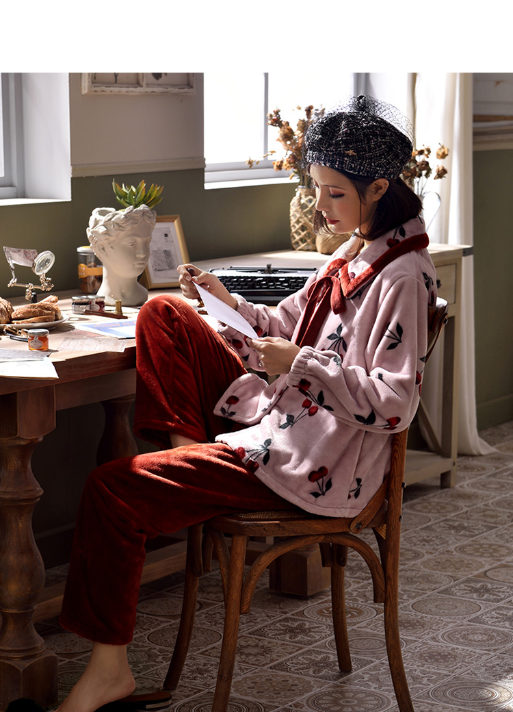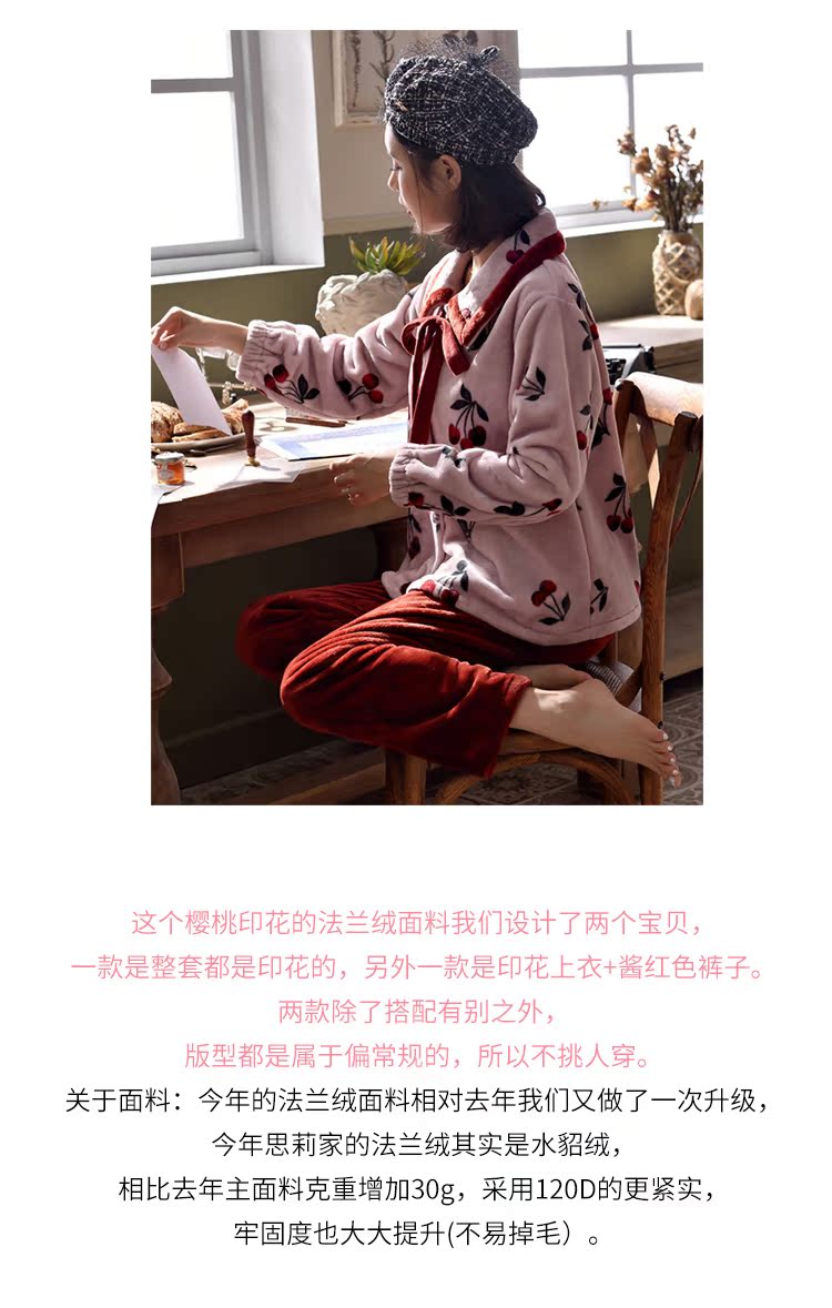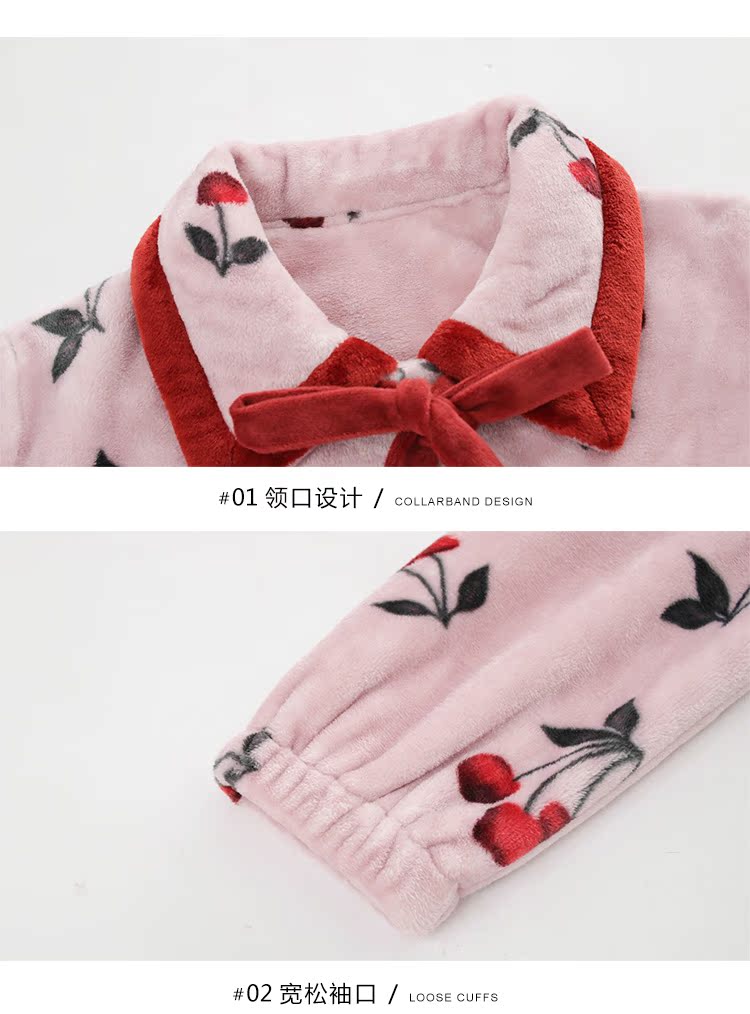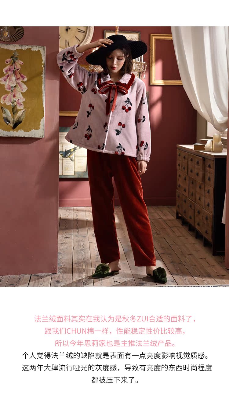 2018新款睡衣女秋冬珊瑚絨韓版清新學生宿舍潮款法蘭絨可愛套裝1入