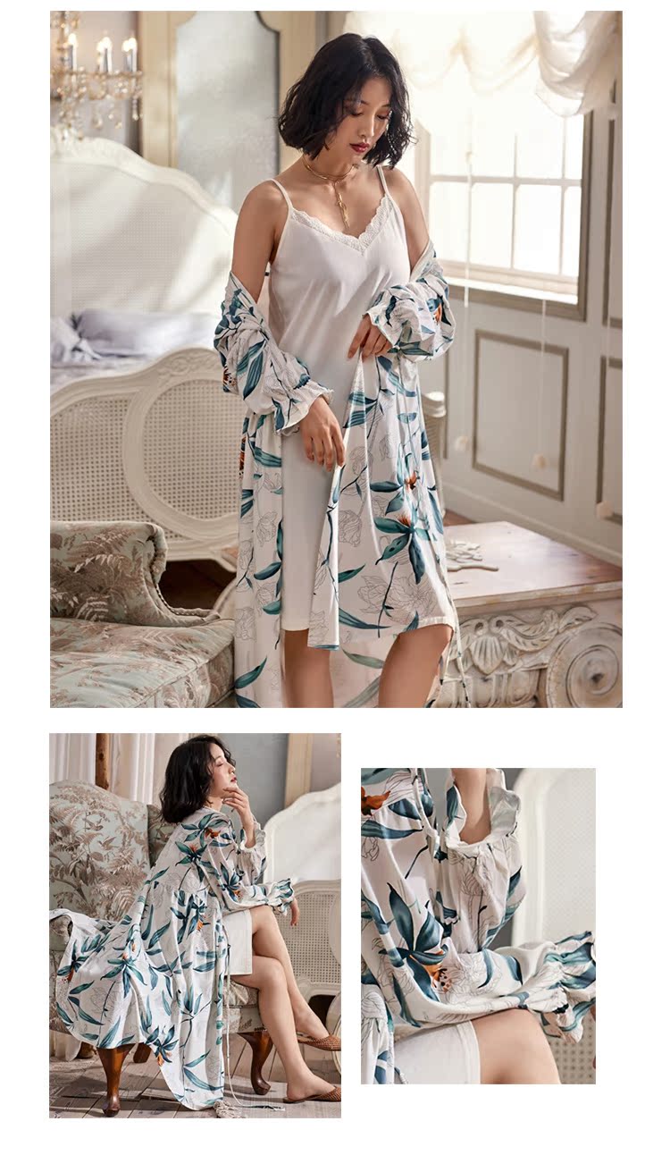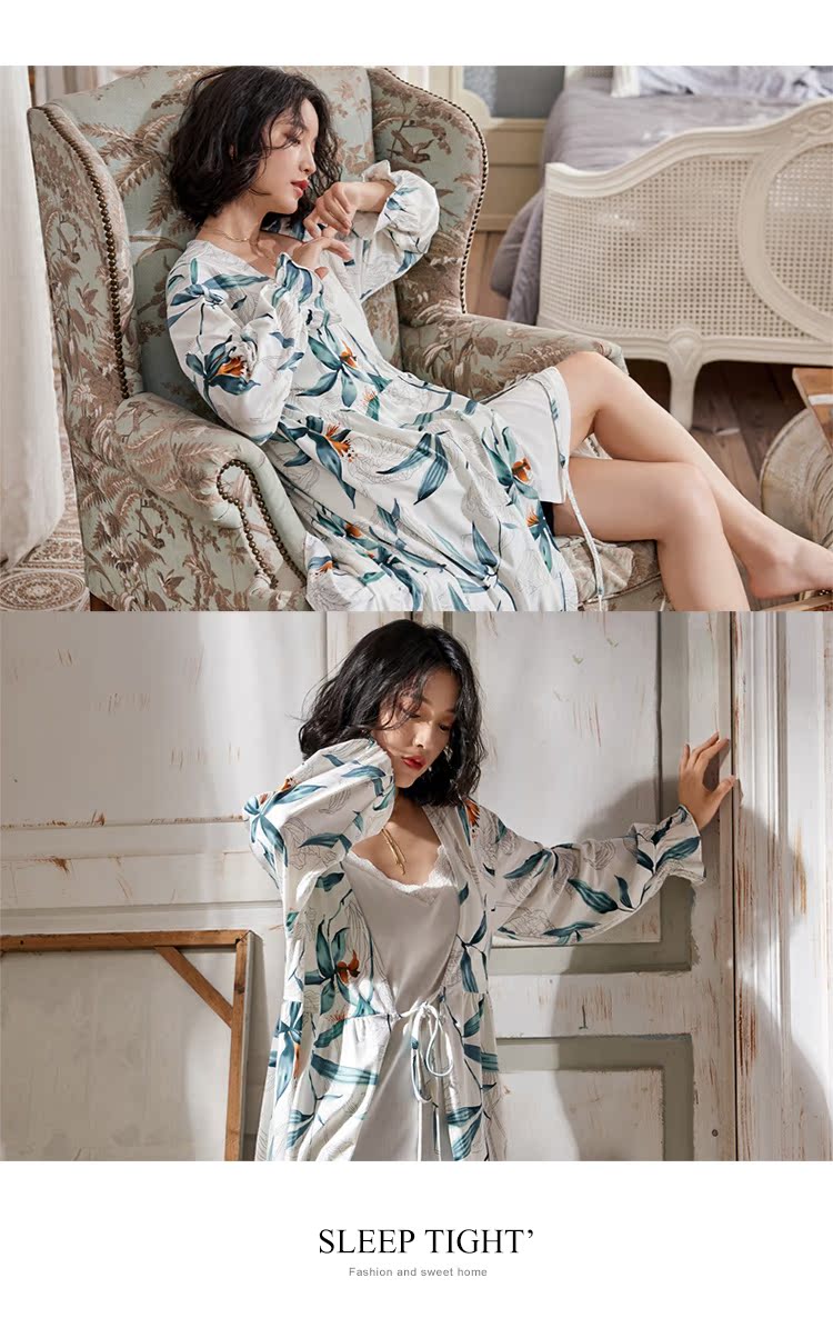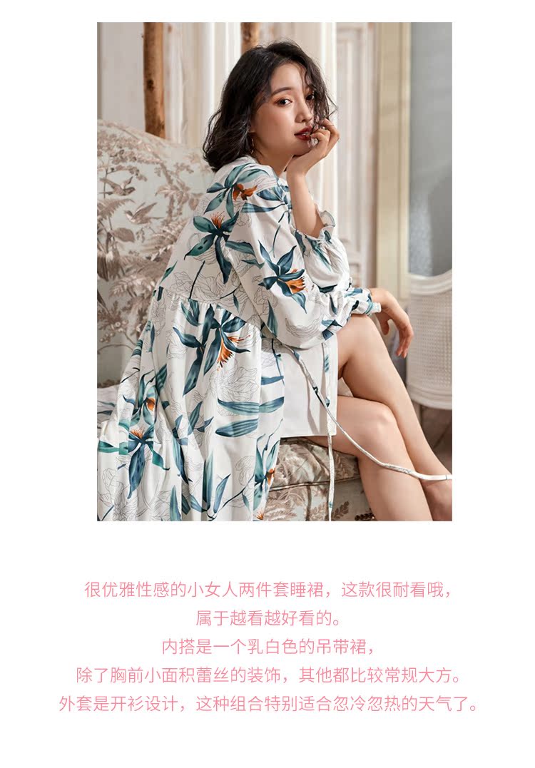 2018新款睡衣睡裙女秋冬韓版性感潮款莫代爾長款吊帶公主風兩件套1入