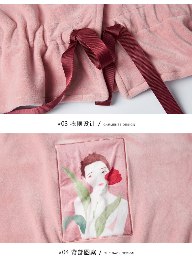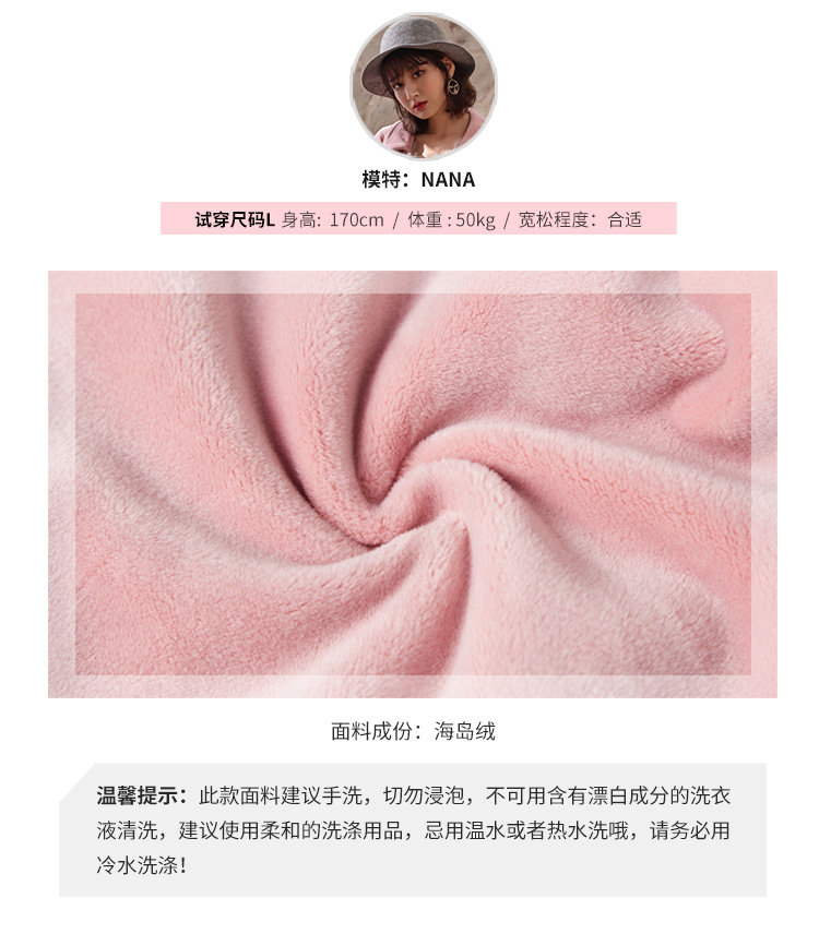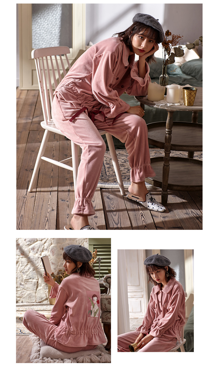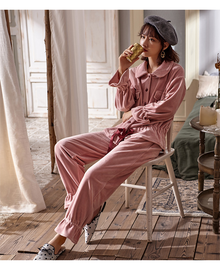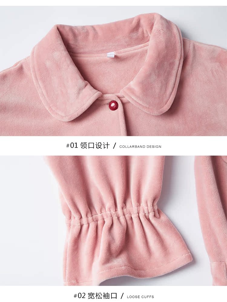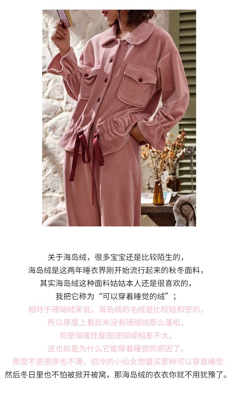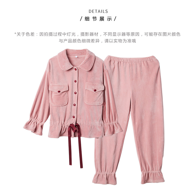 2018新款睡衣女秋冬珊瑚絨長袖套裝潮款可外穿冬天甜美可愛兩件套1入