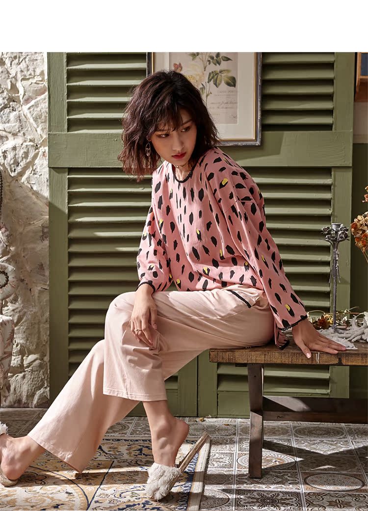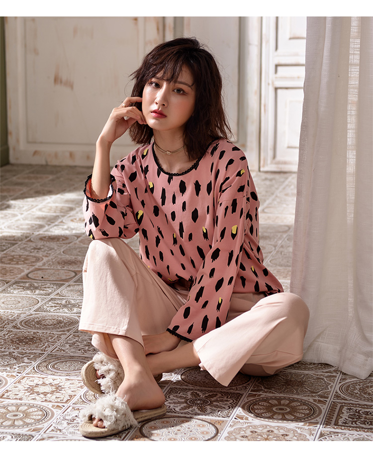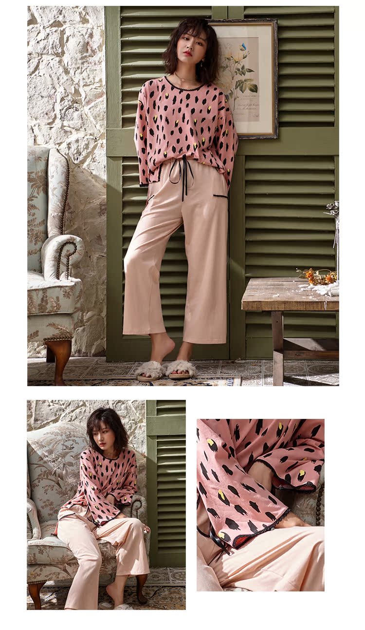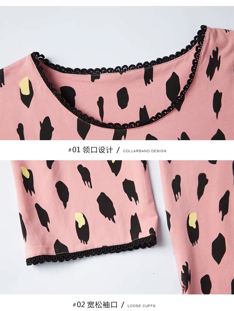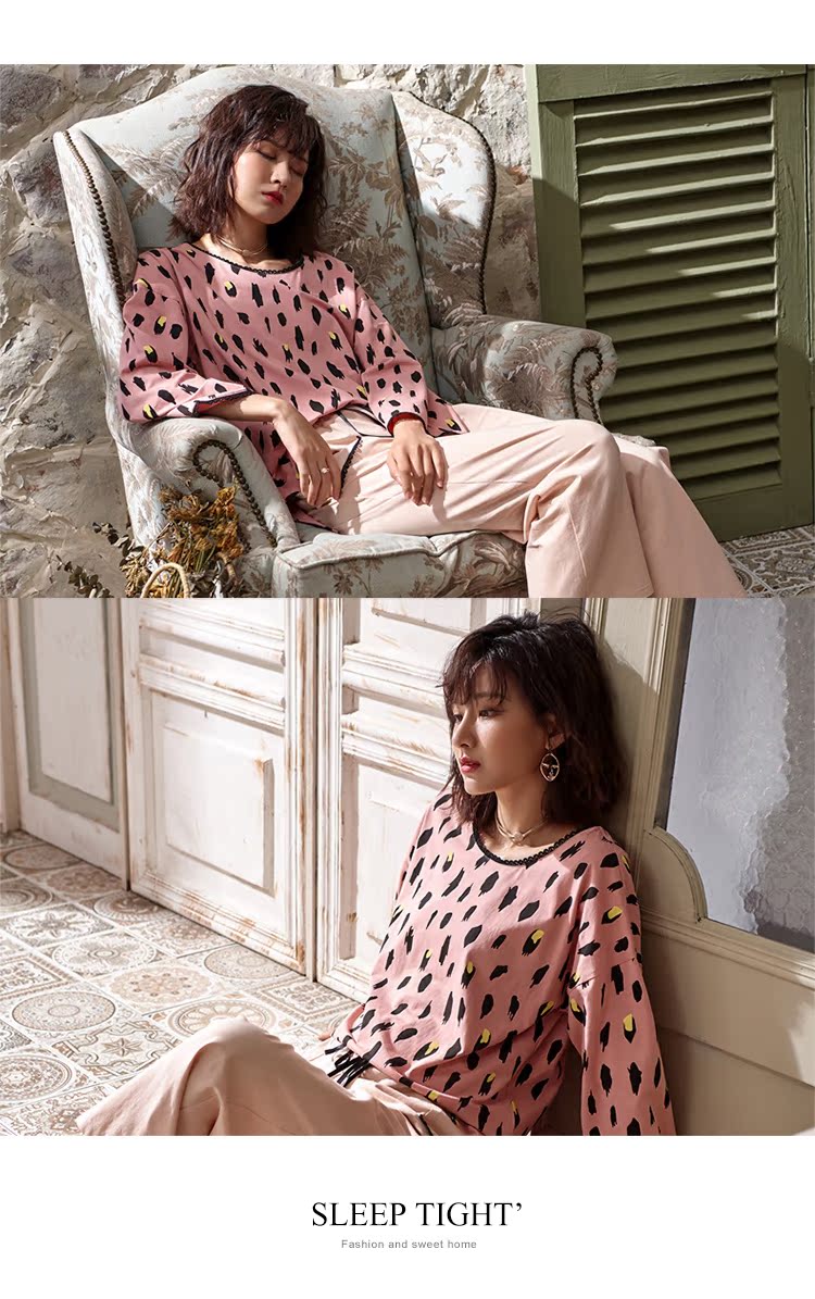 2018新款睡衣女秋冬純棉長袖韓版清新學生可愛潮款網紅豹紋兩件套1入