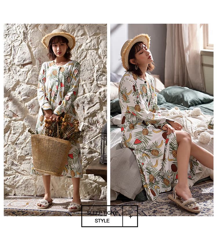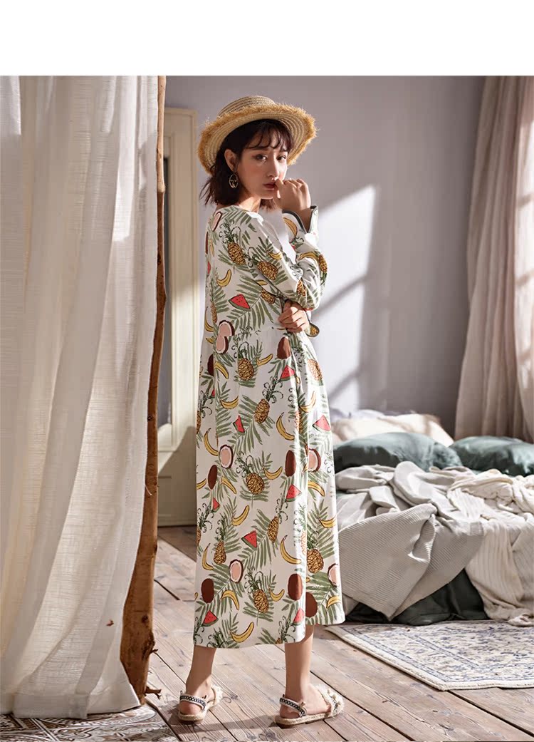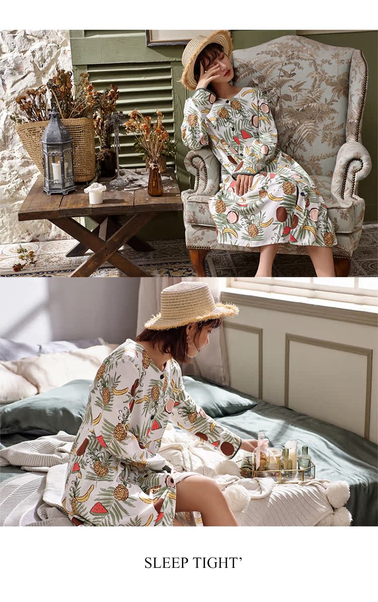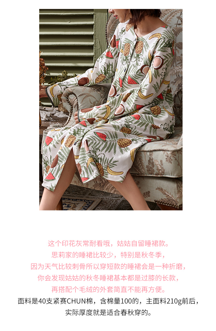 2018新款睡裙女秋純棉長袖長款過膝性感公主風春秋韓版日式睡衣1入