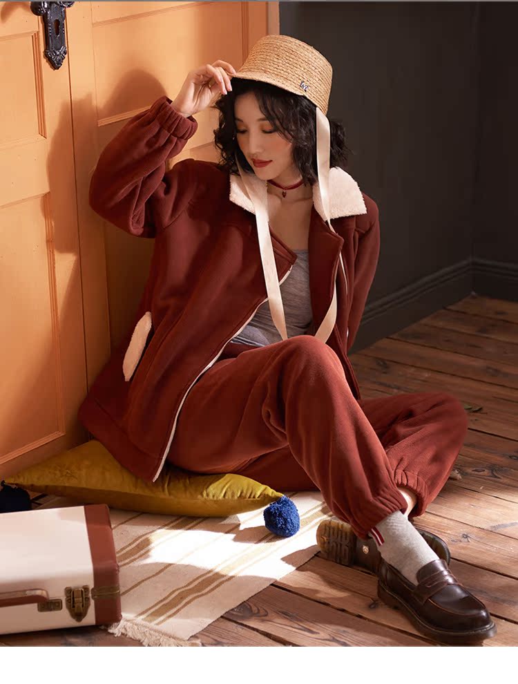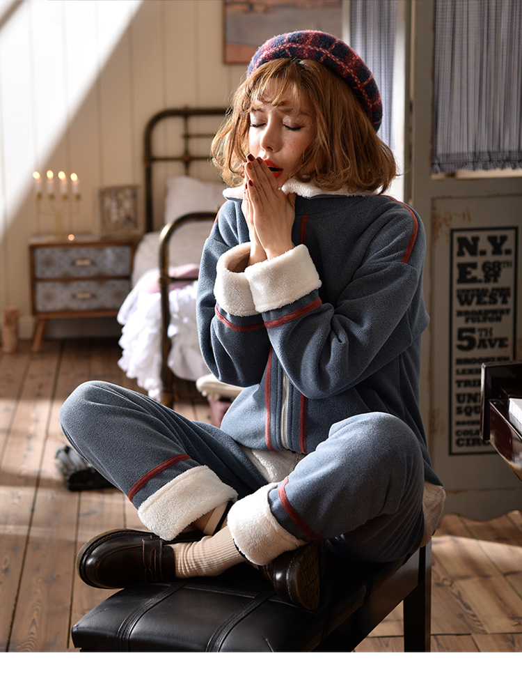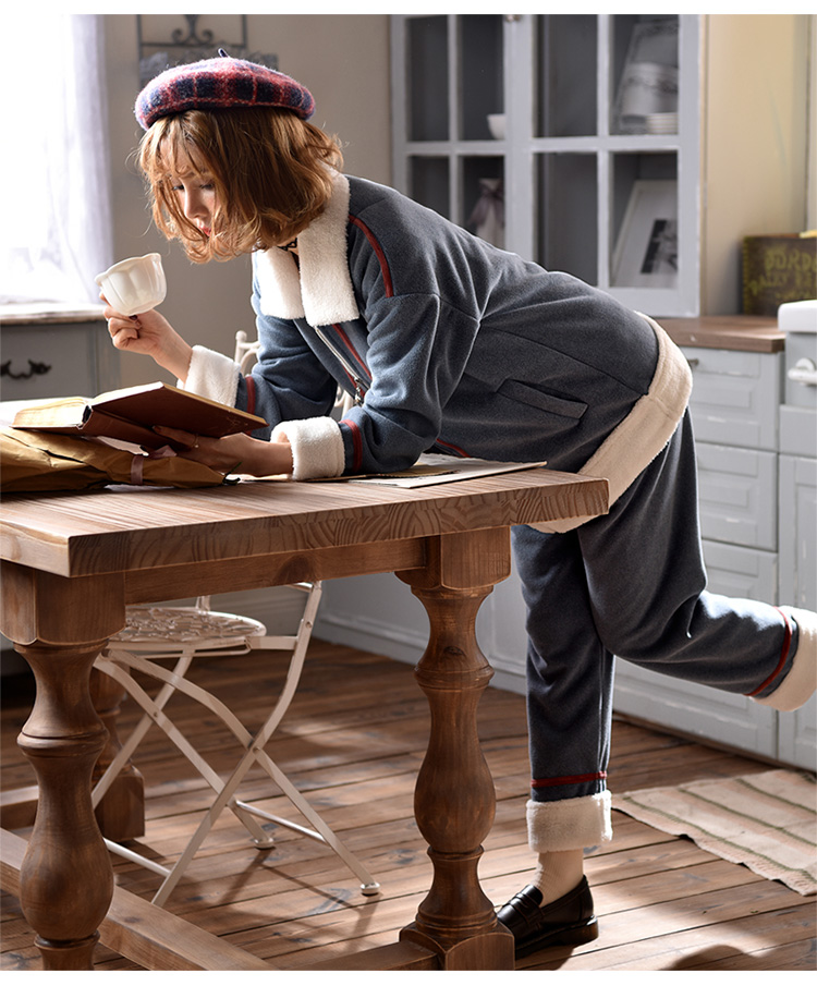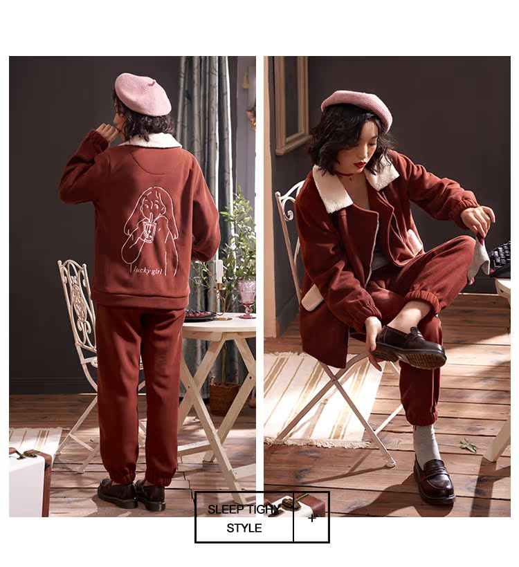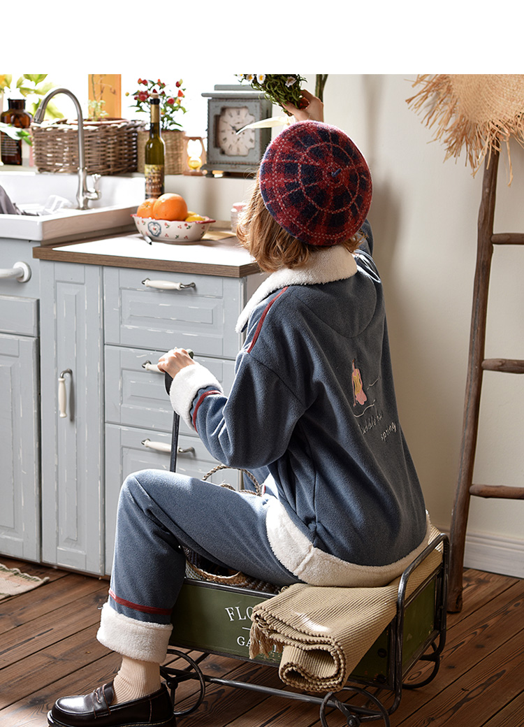 2018新款睡衣女冬加厚可愛保暖珊瑚絨可外穿棉服搖粒絨加絨秋冬款1入