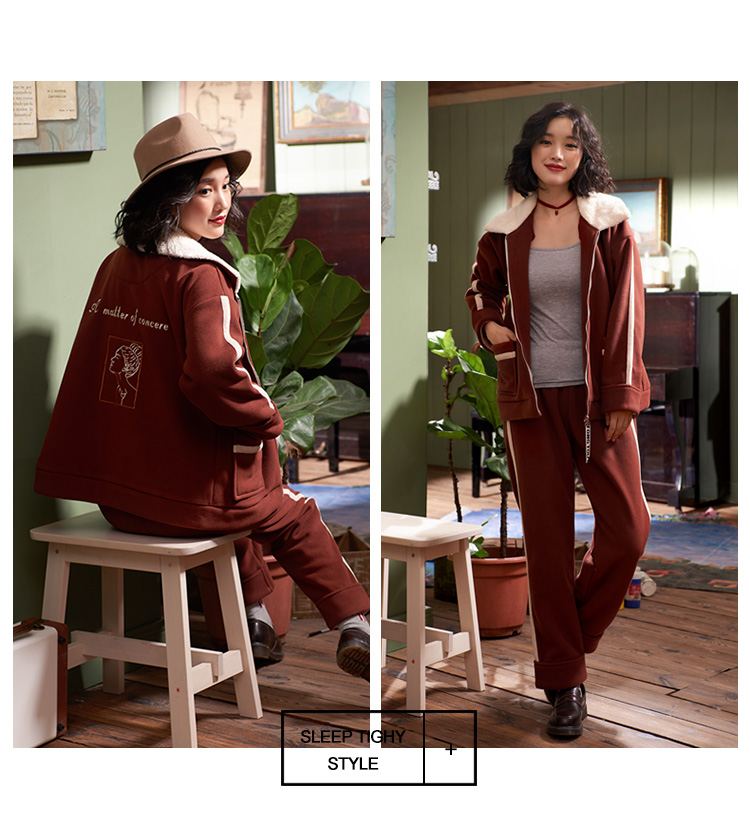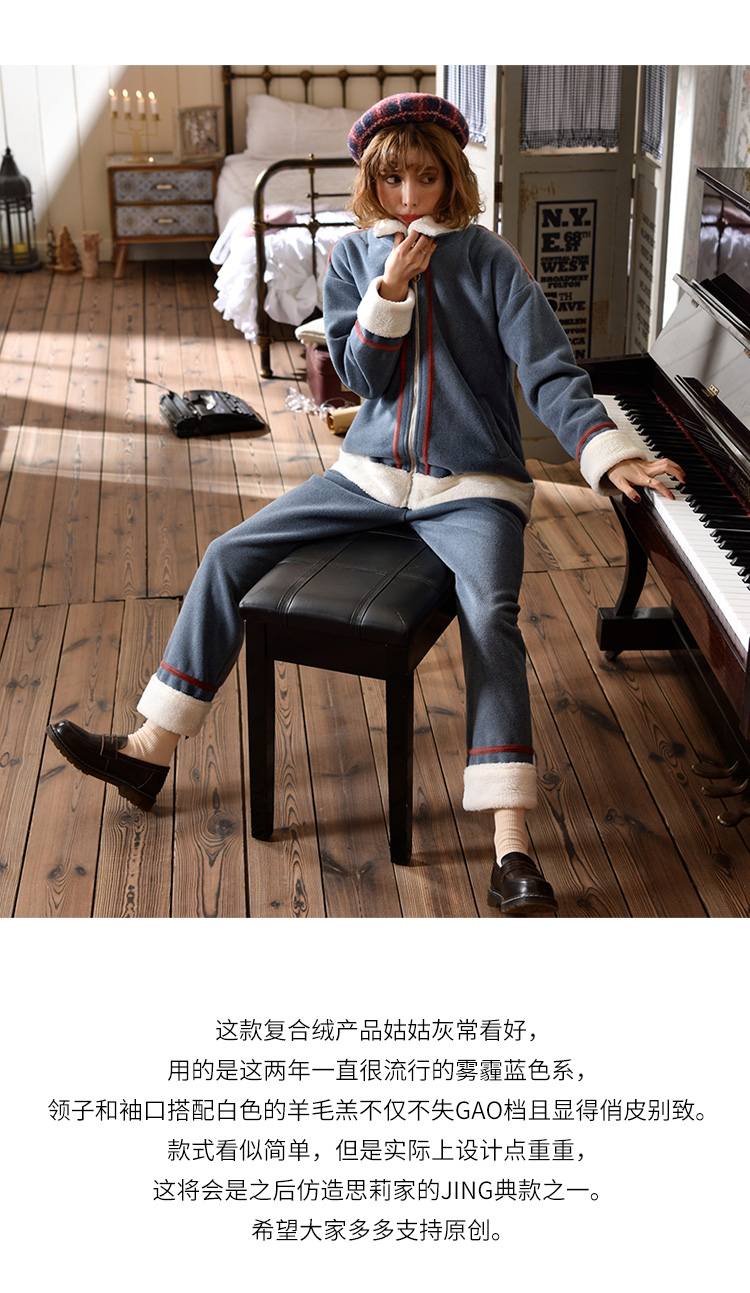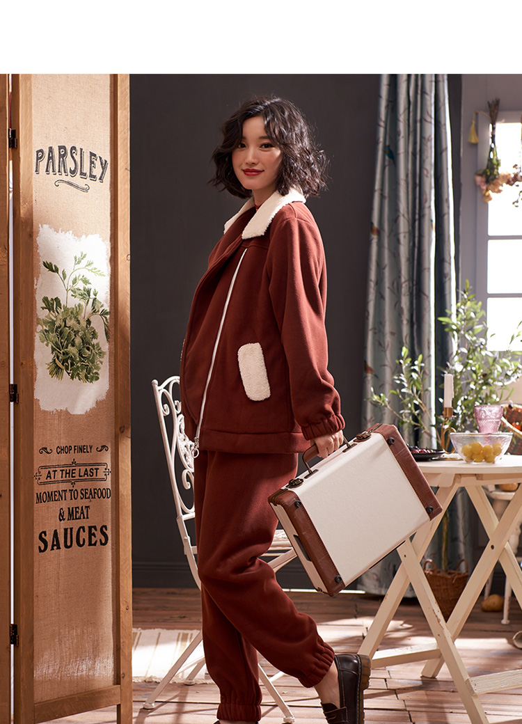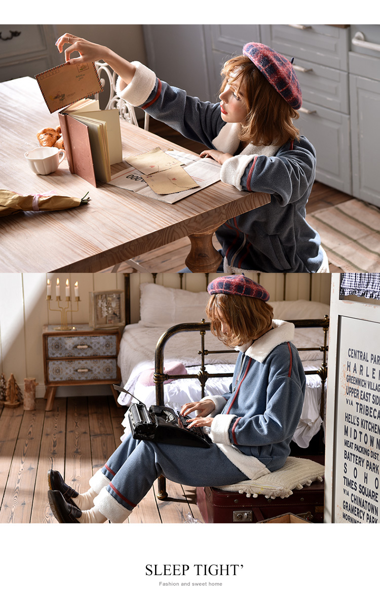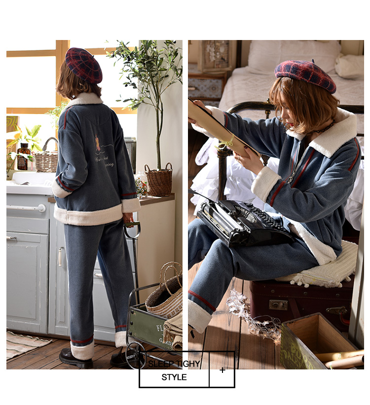 2018新款睡衣女冬加厚可愛保暖珊瑚絨可外穿棉服搖粒絨加絨秋冬款1入