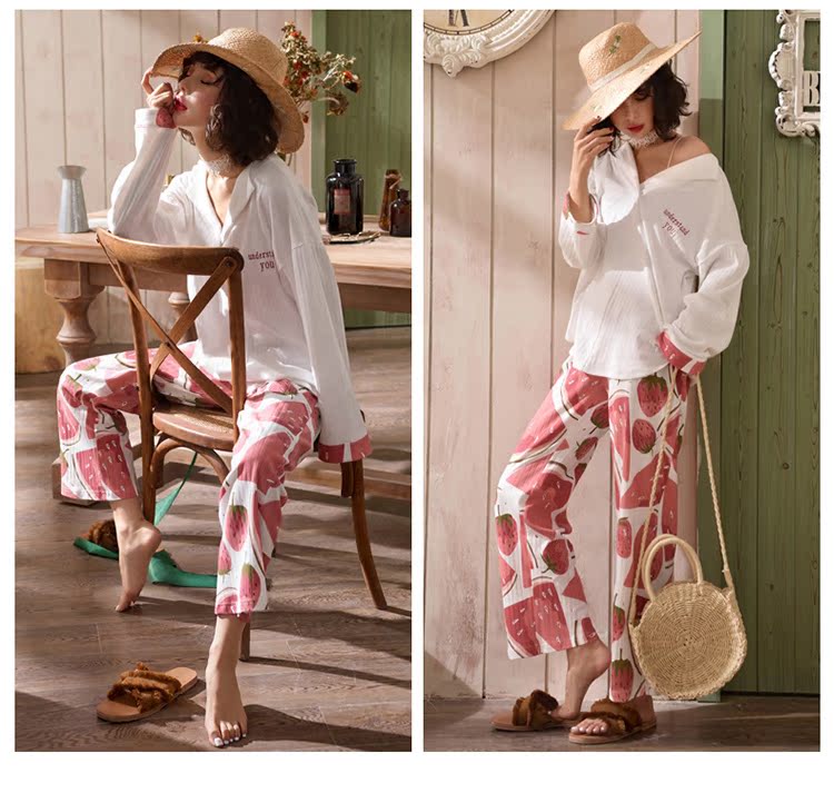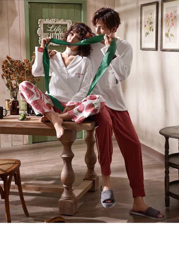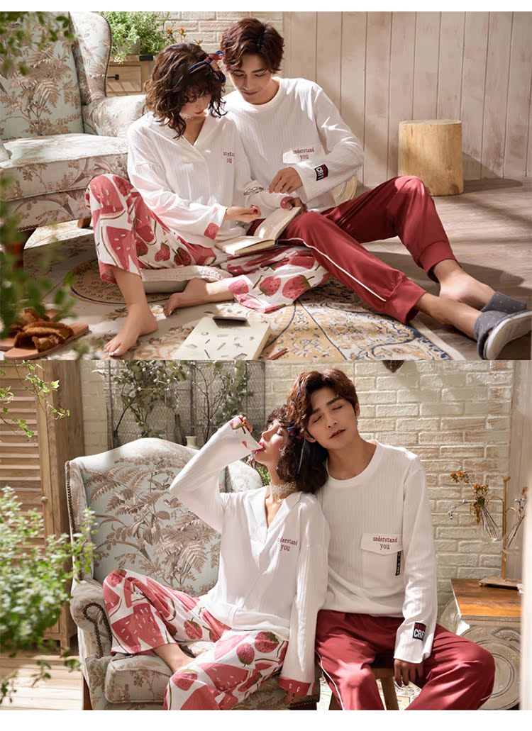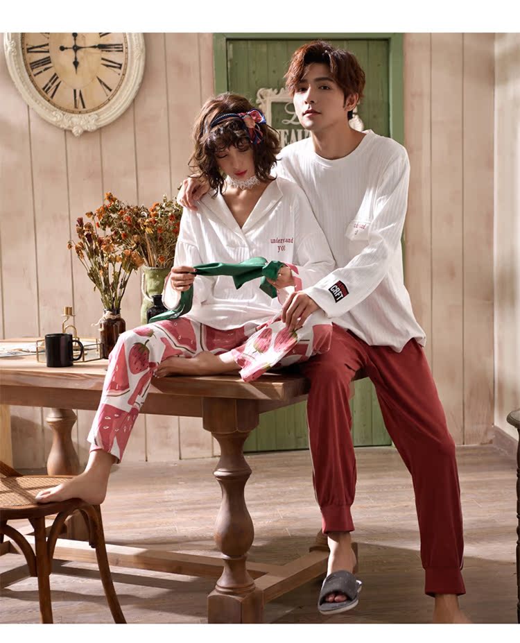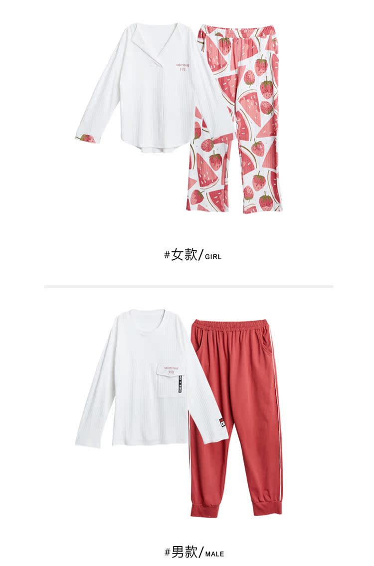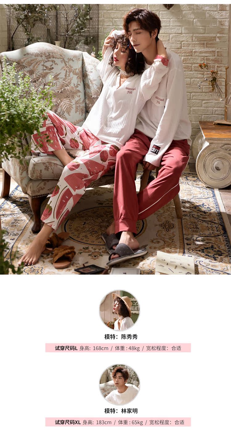 2018新款情侶睡衣秋季純棉長袖秋天女士韓版可愛公主風西瓜情侶裝1入