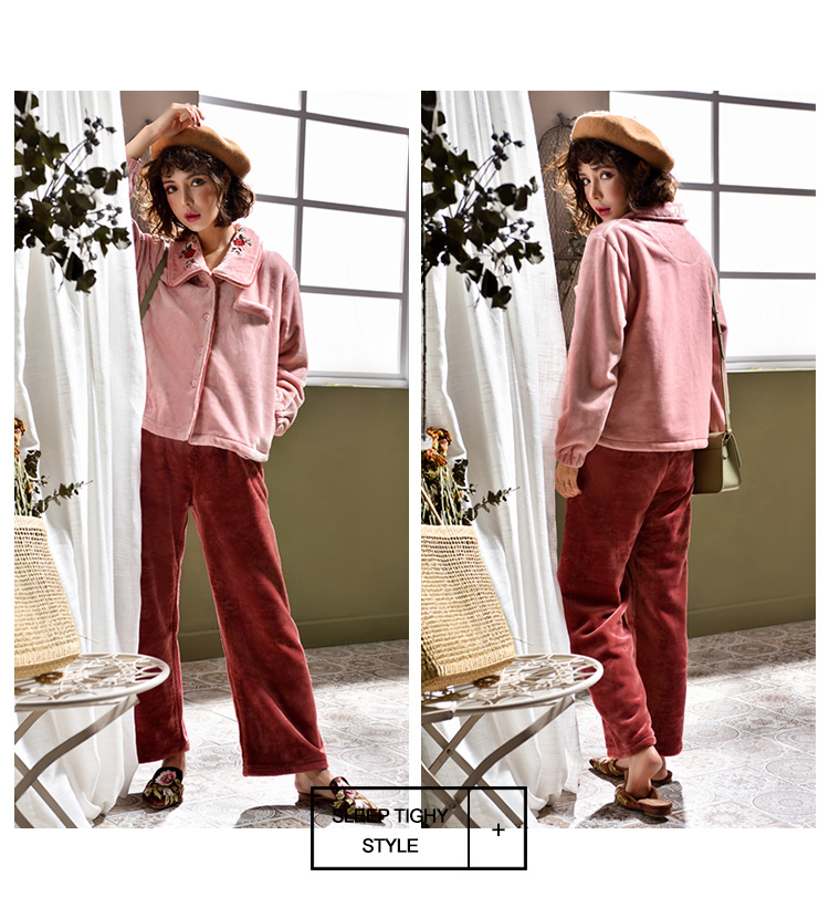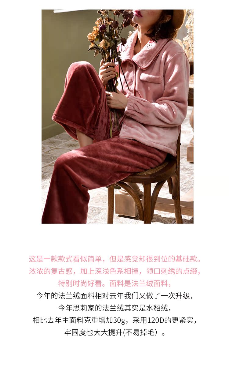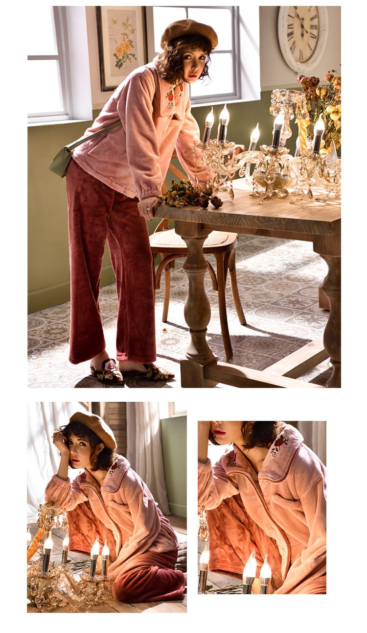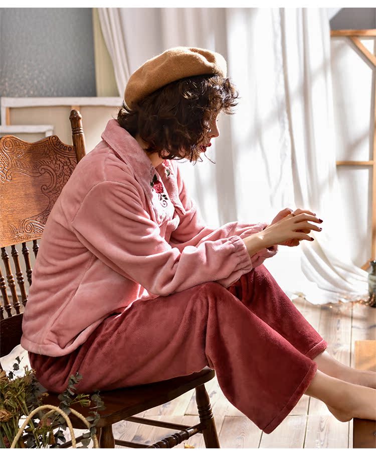 2018新款睡衣女冬珊瑚絨加厚保暖韓式公主風甜美可愛文藝森系冬裝1入