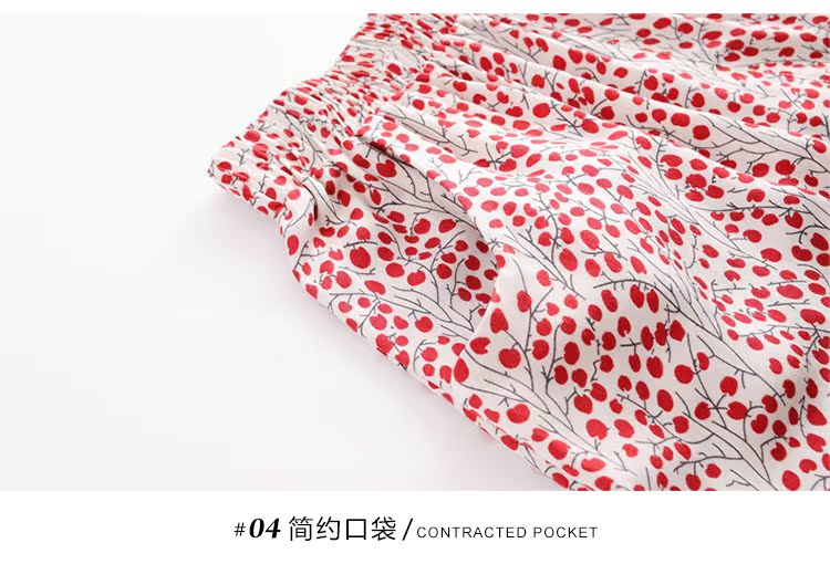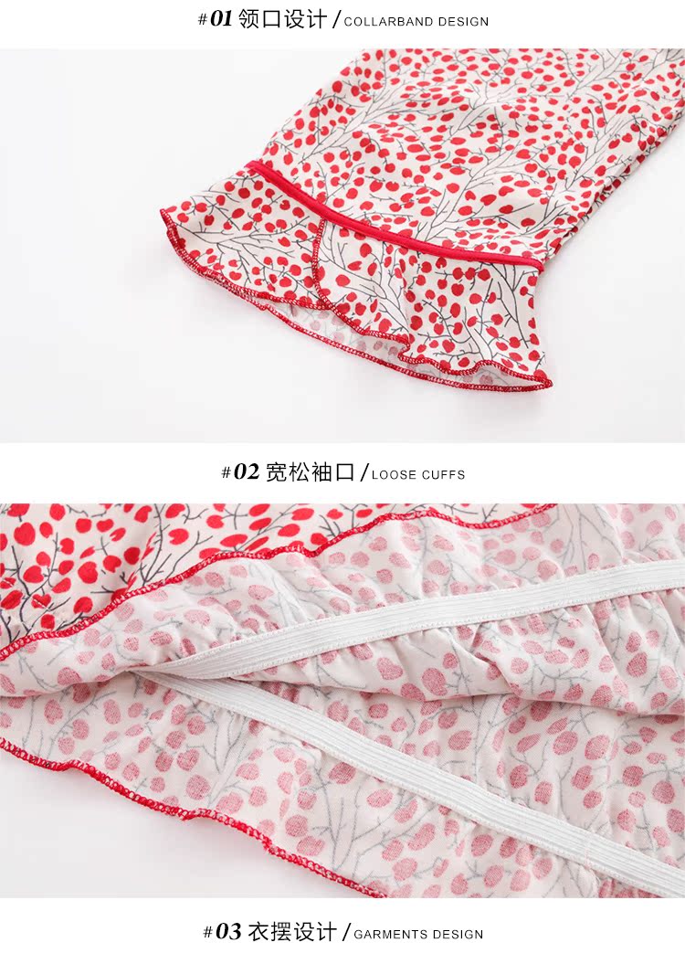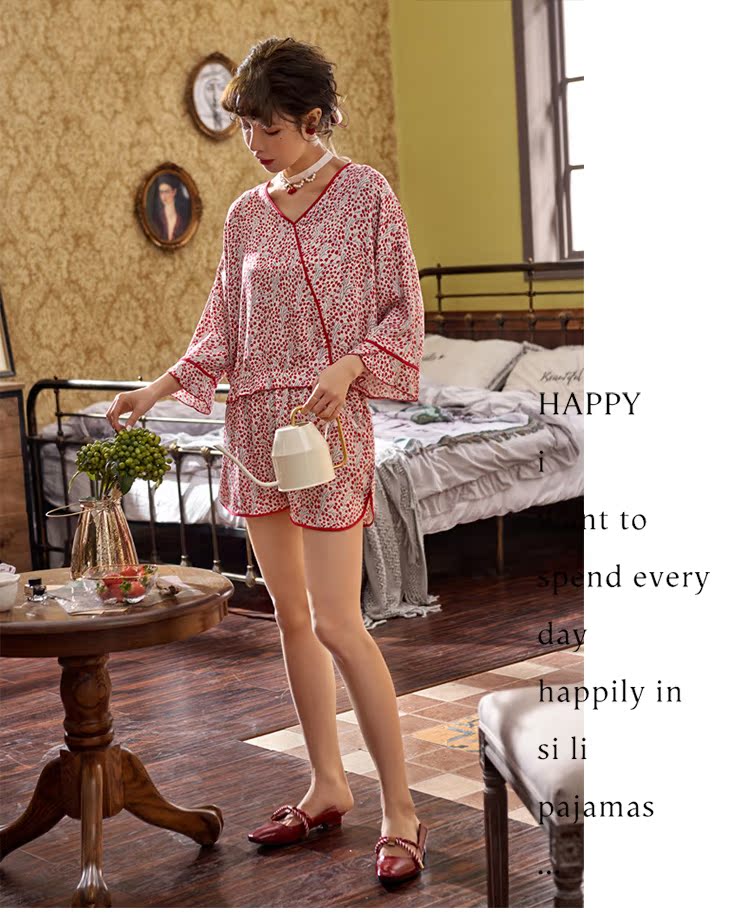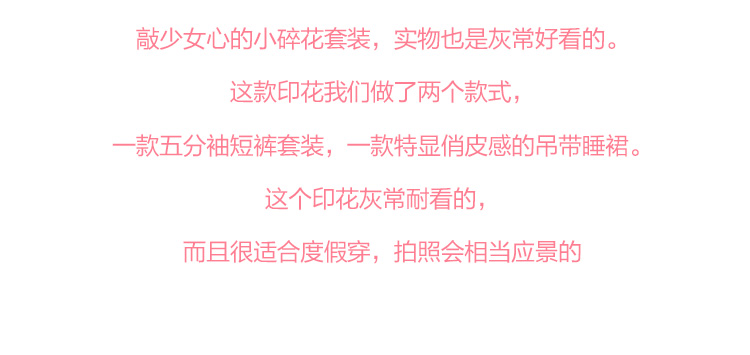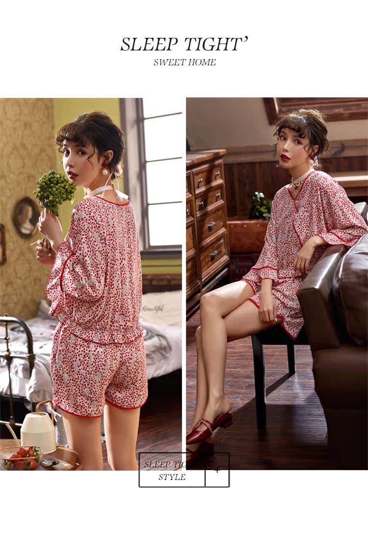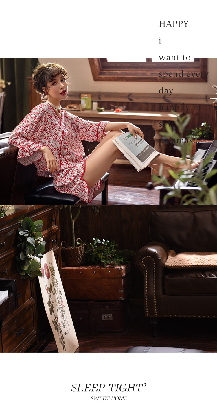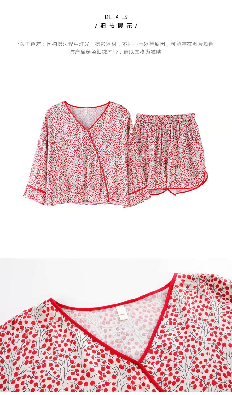 2019新款睡衣女夏季薄款七分袖短褲兩件套人棉碎花超仙女度假套裝1入