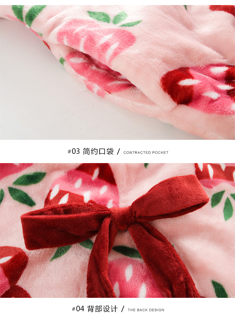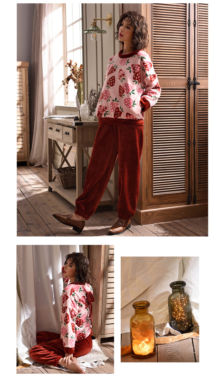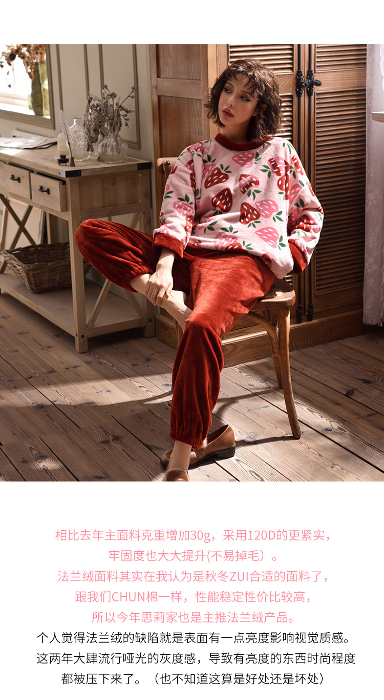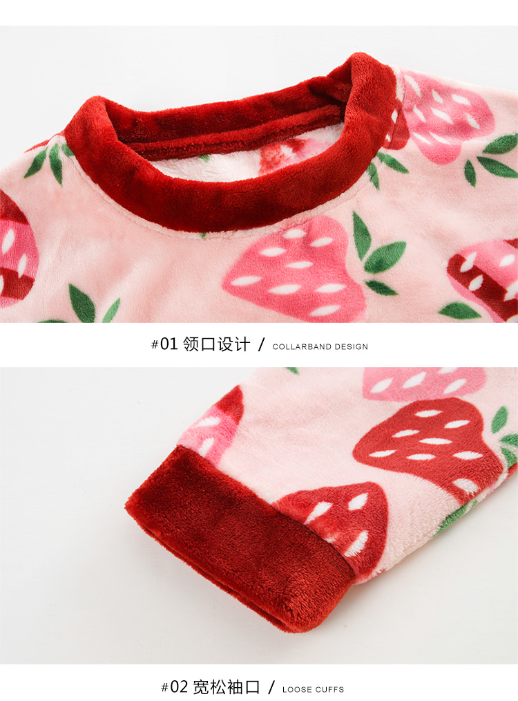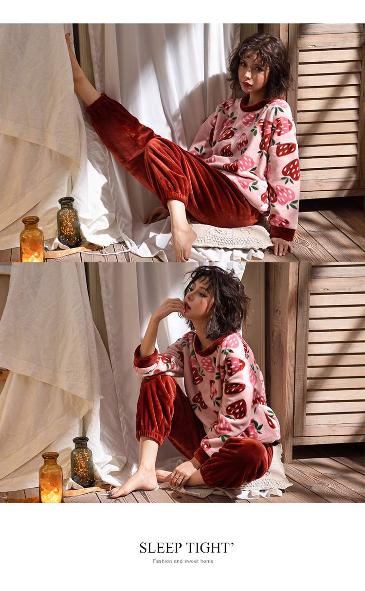 2018新款珊瑚絨睡衣女秋冬長袖草莓套頭可愛潮款毛毛冬季兩件套裝1入