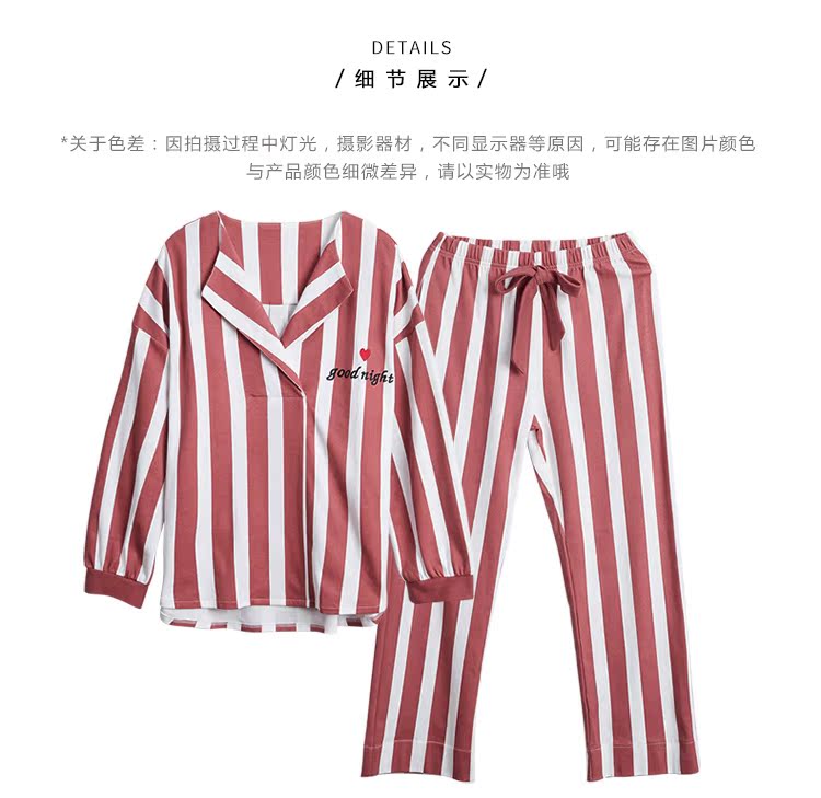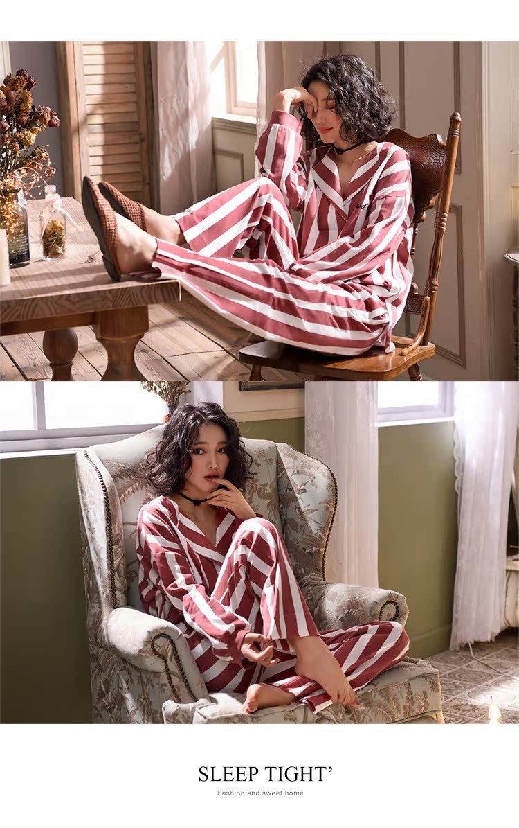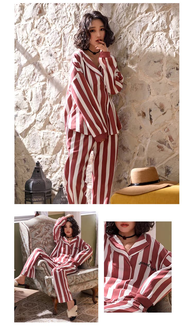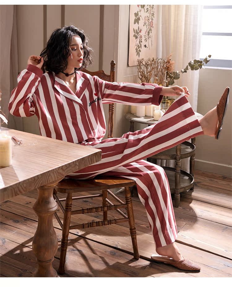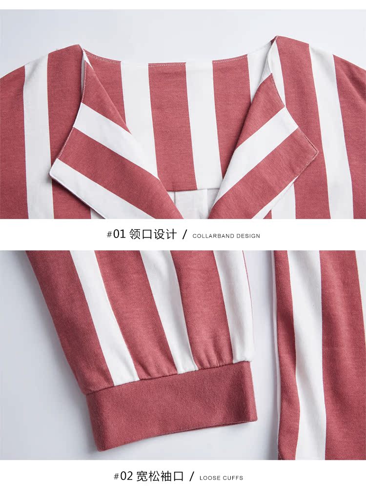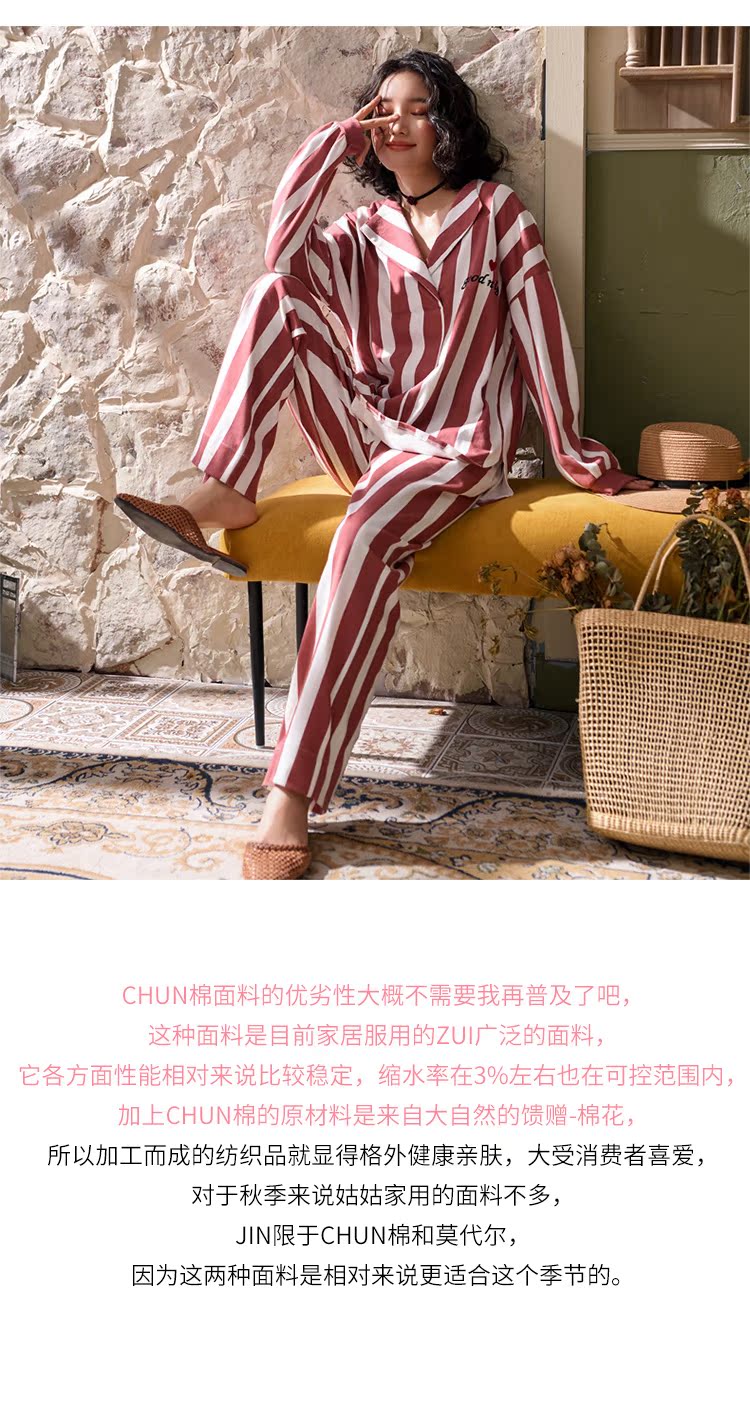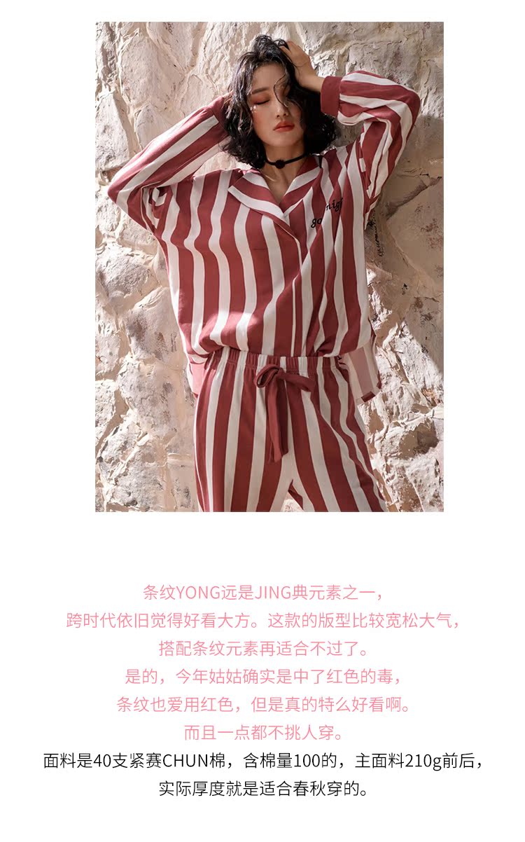 2018新款睡衣女秋純棉長袖可外穿秋冬款慵懶簡約寬松女士全棉秋裝1入