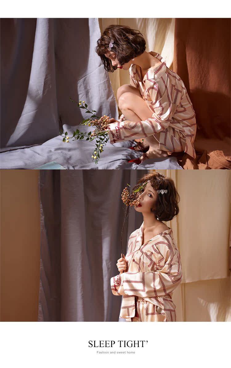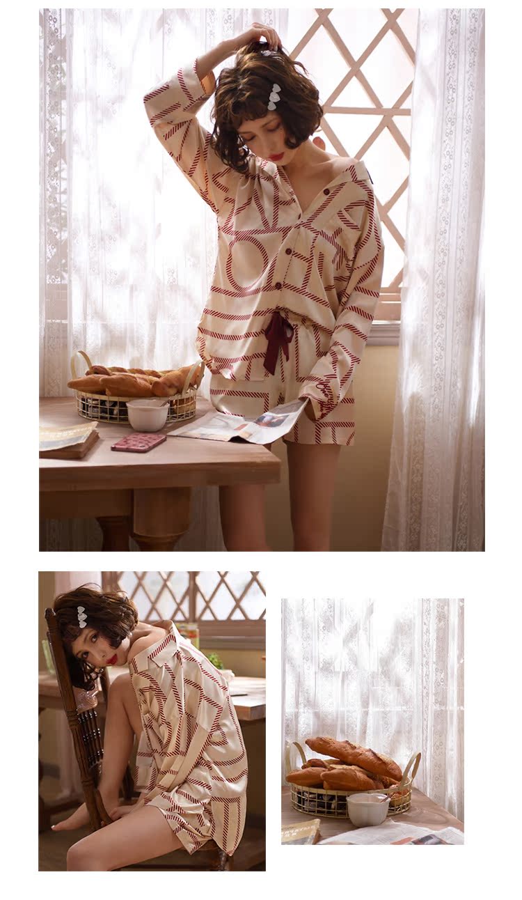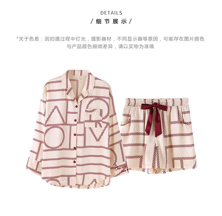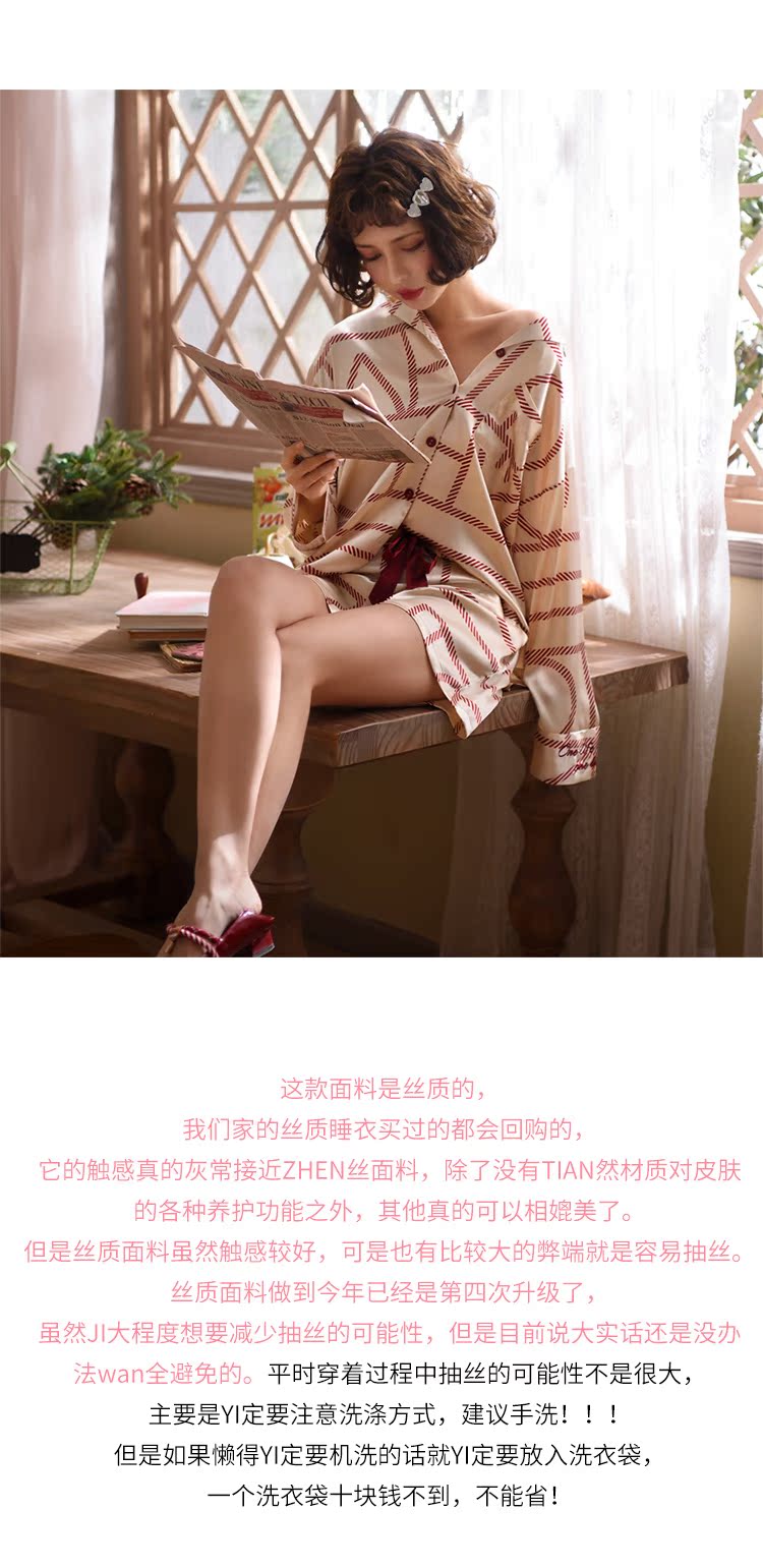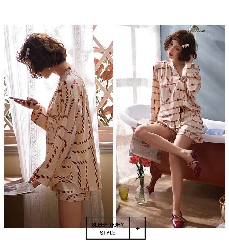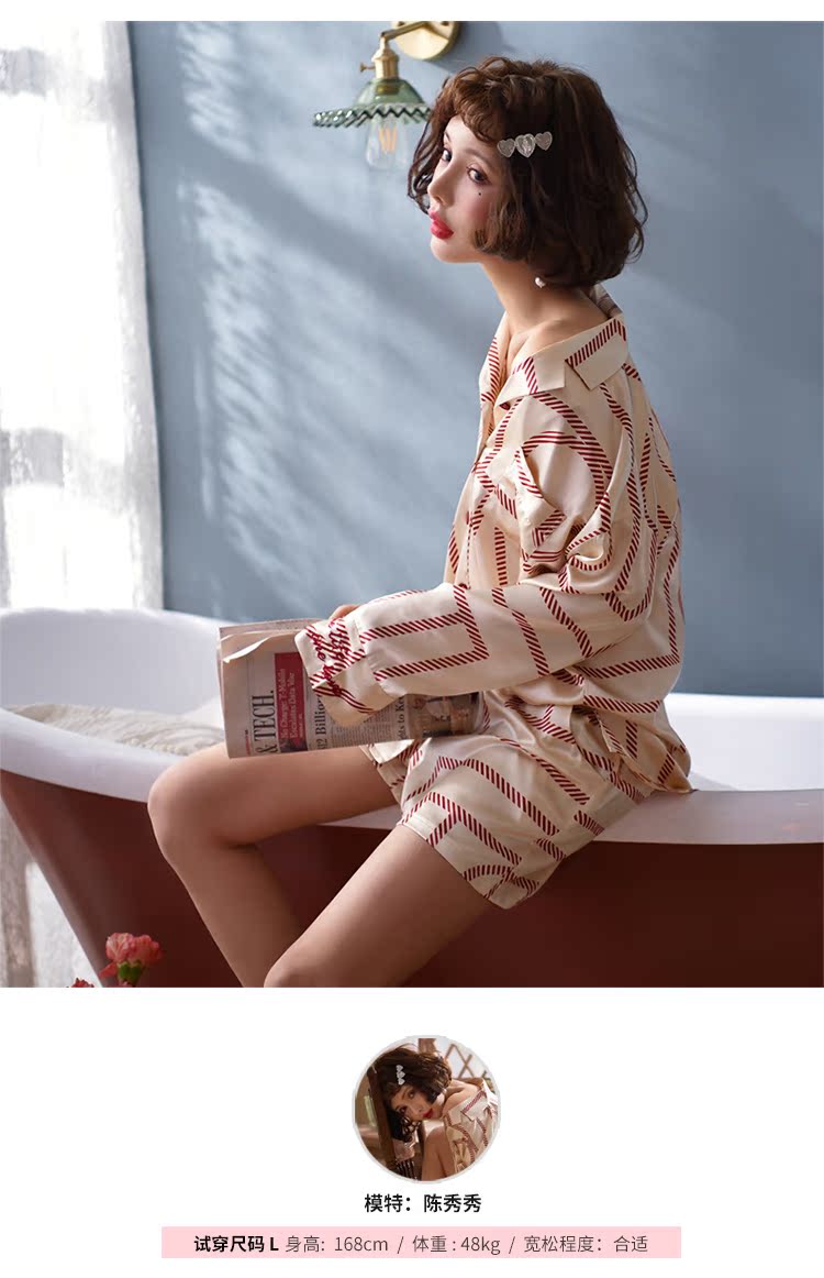 2019新款睡衣女夏季薄款冰絲長袖短褲ins網紅性感男友風寬松襯衫1入