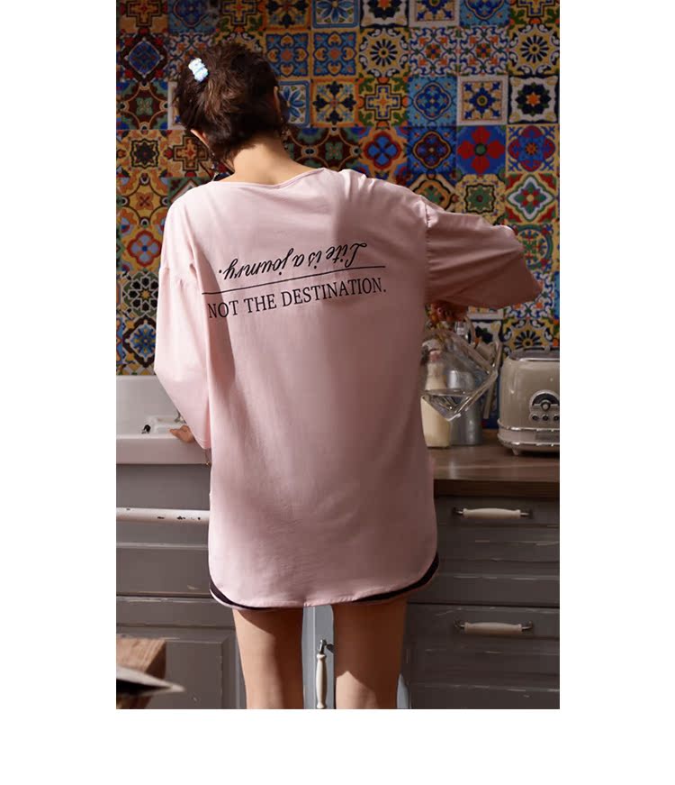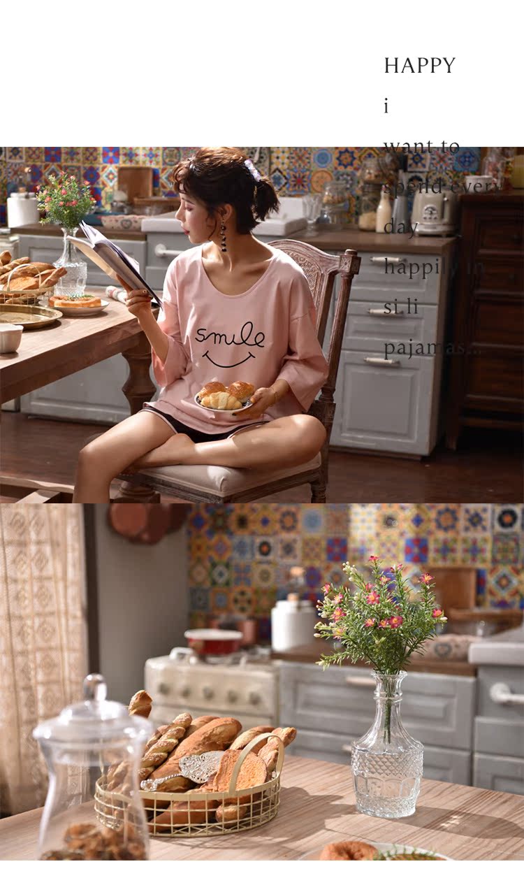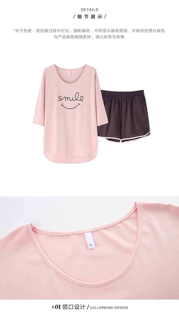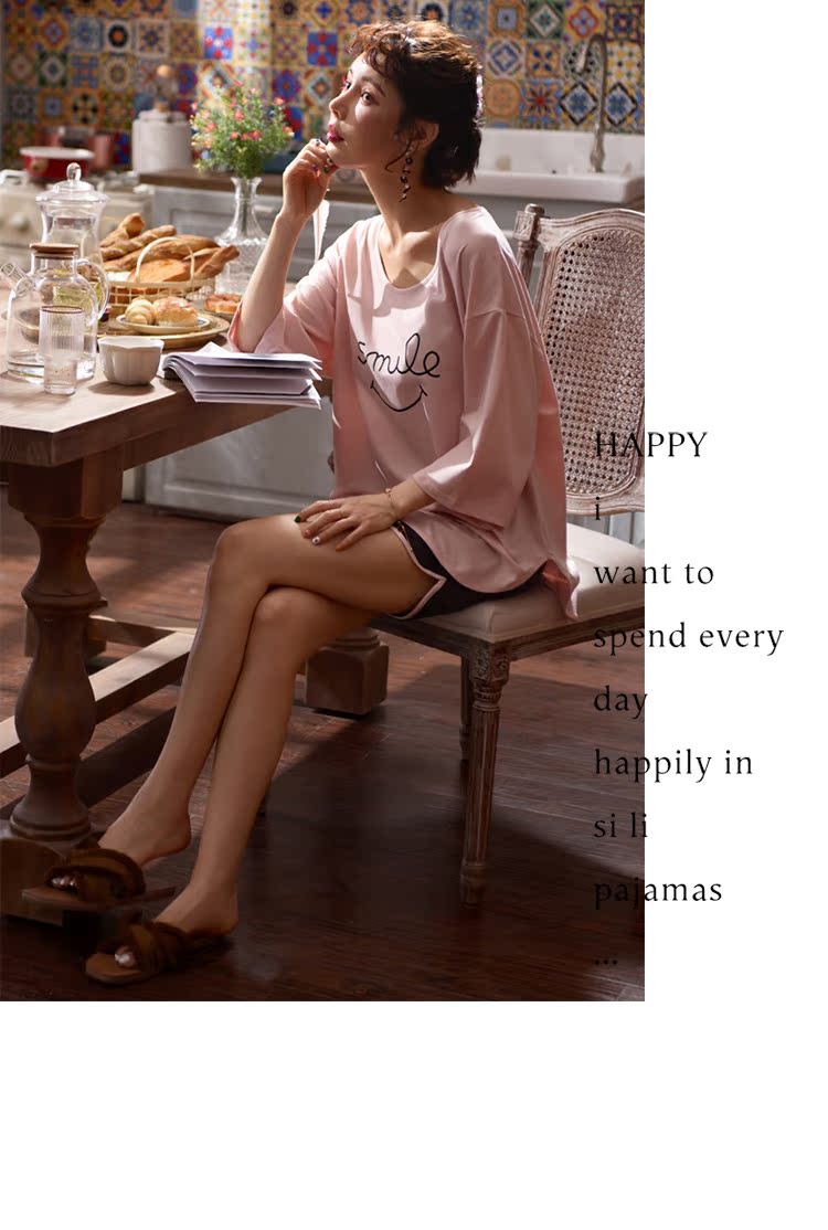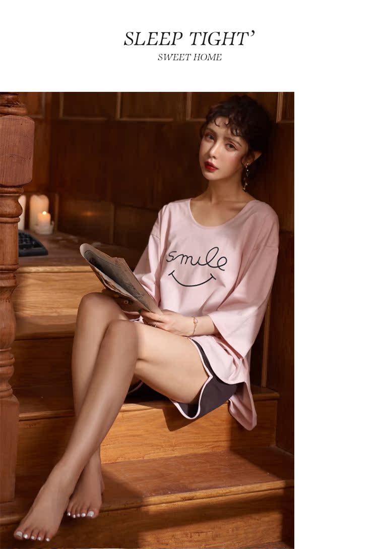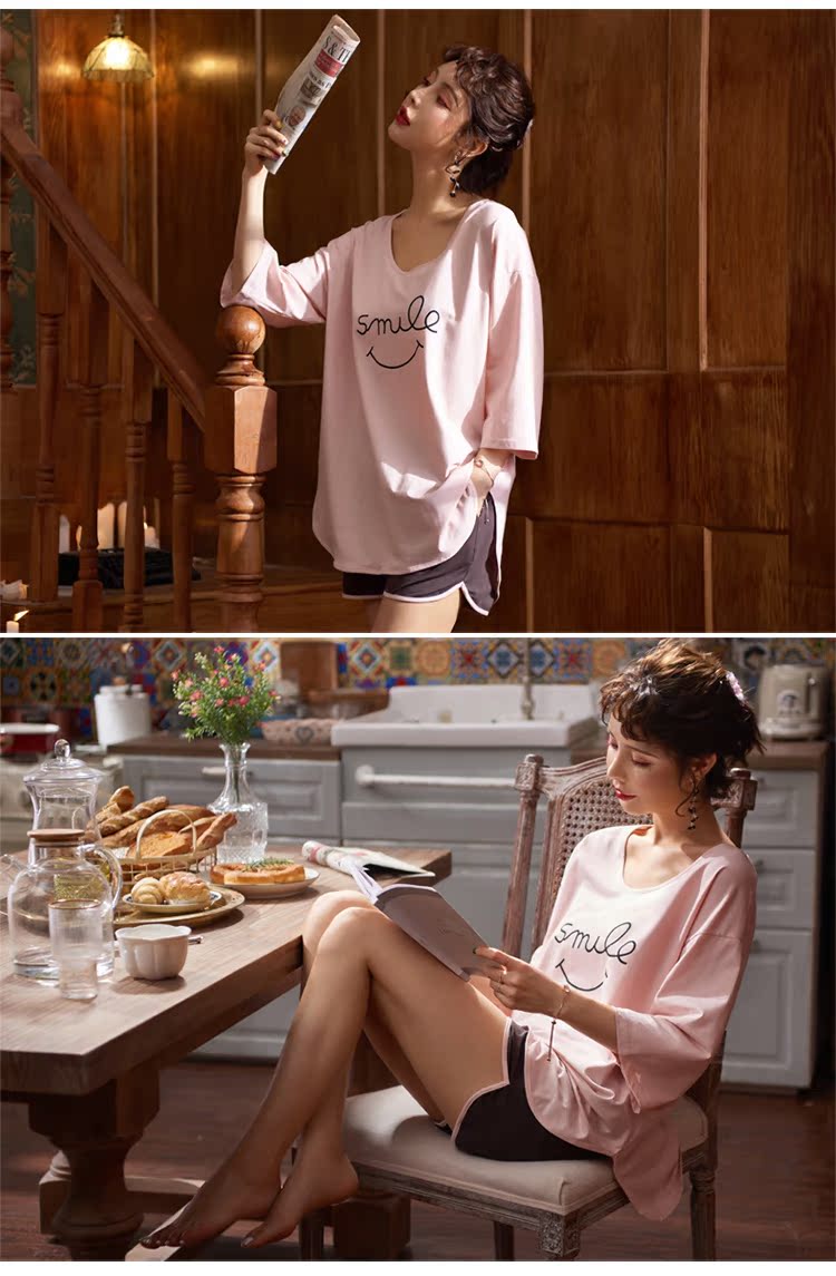 2019新款睡衣女夏季薄款純棉網紅款ins韓版可外穿寬松短褲兩件套1入
