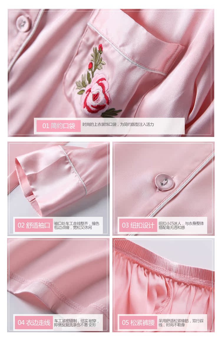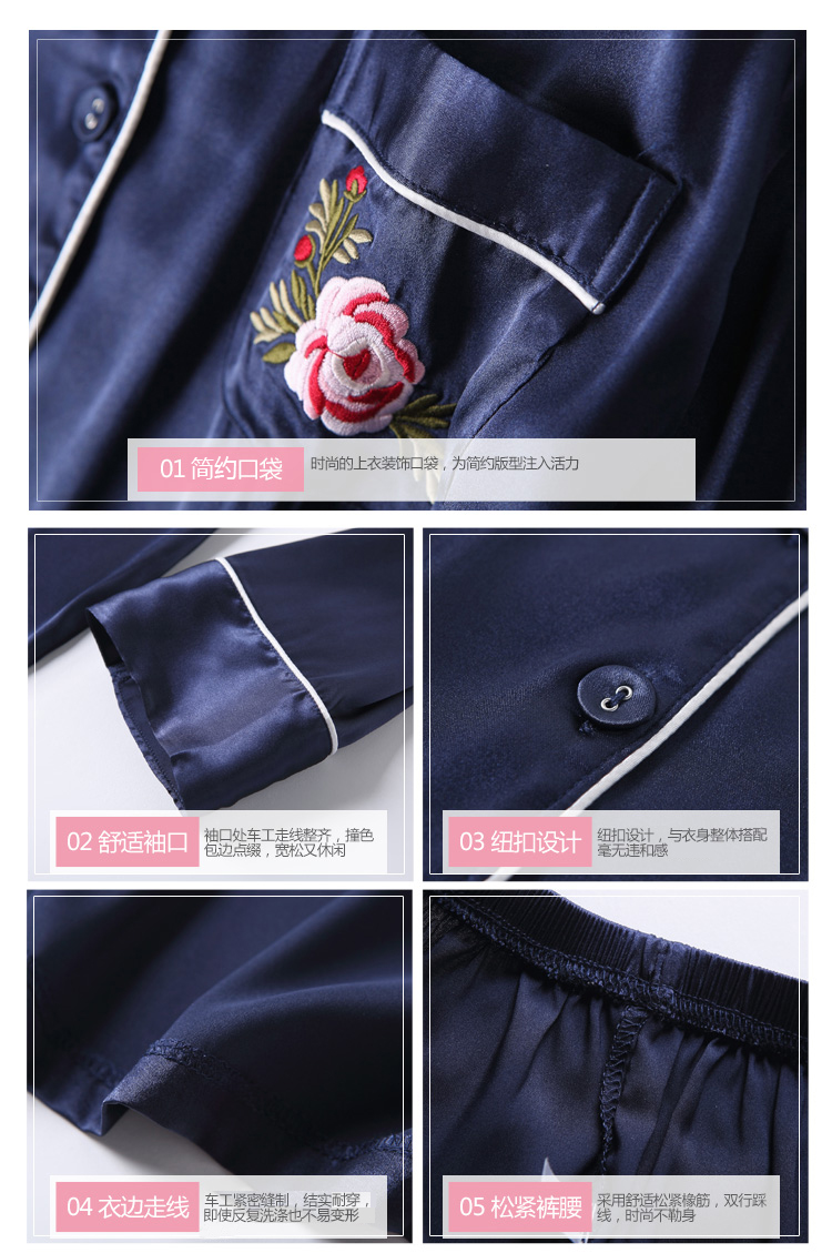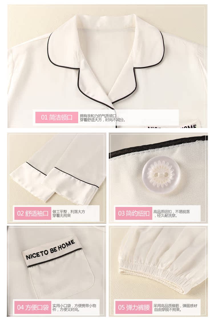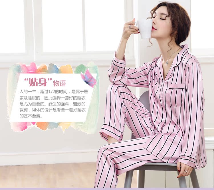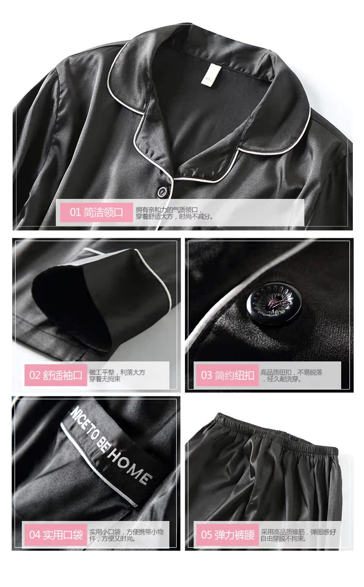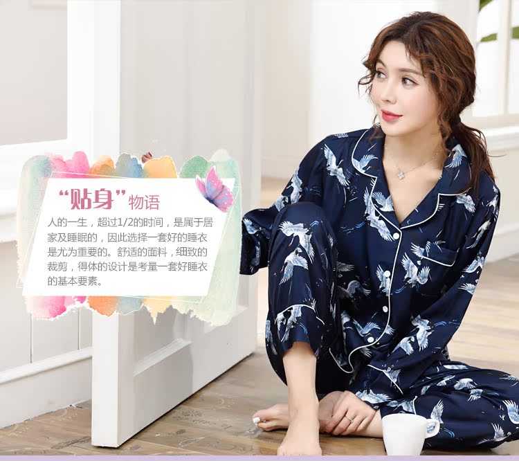長袖睡衣女套裝薄款女士夏季冰絲空調成人絲綢春秋闊腿長褲家居服1入
