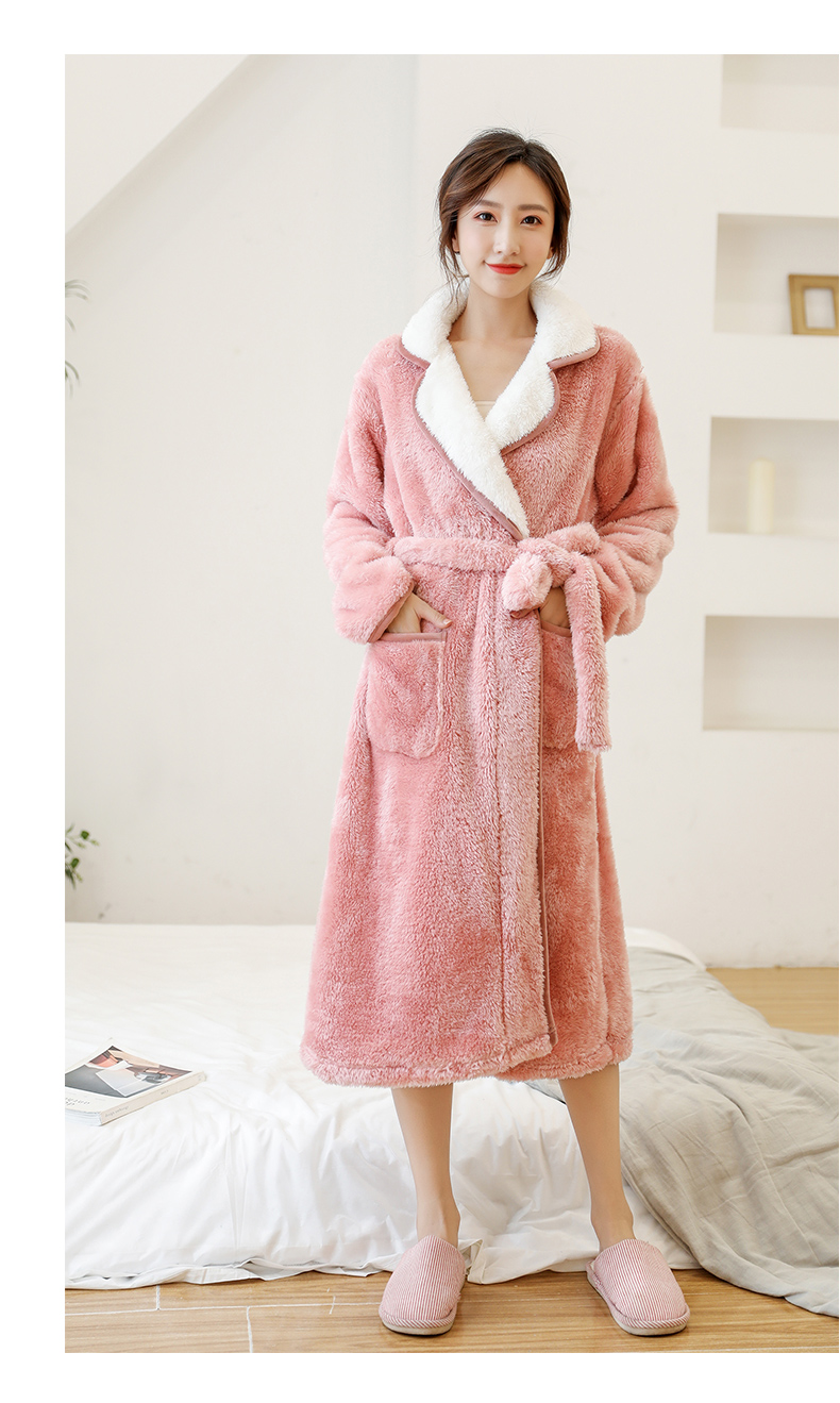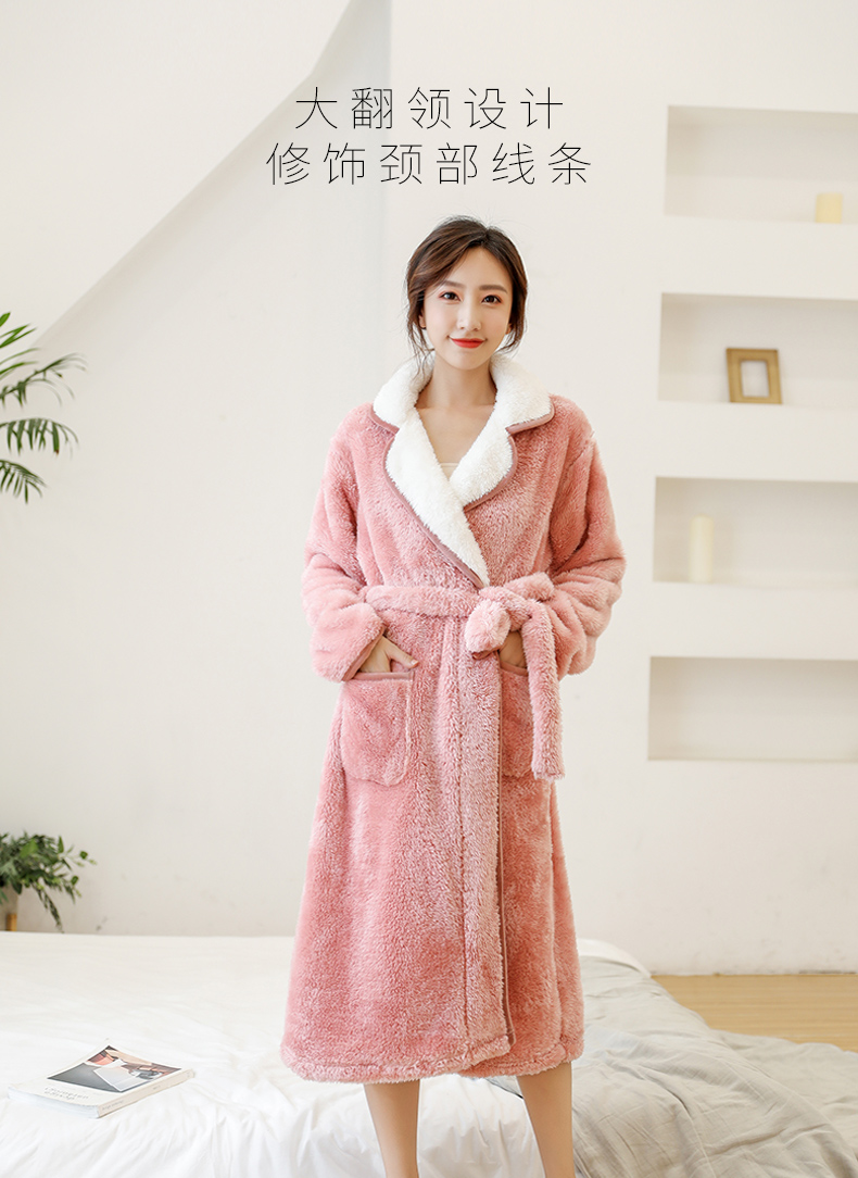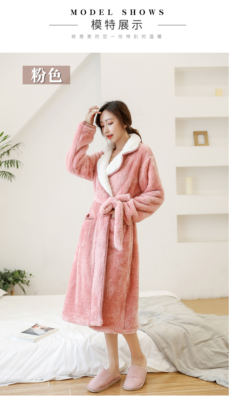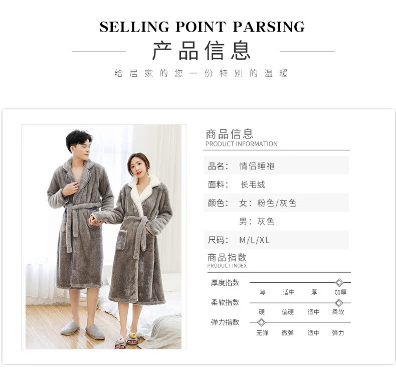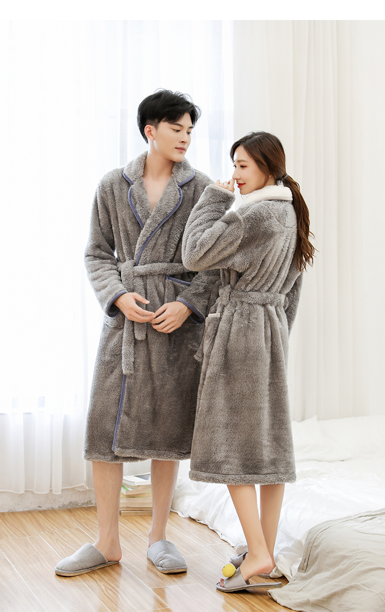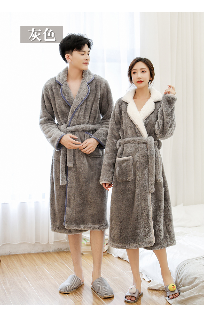 長毛舒棉絨情侶睡袍女冬季珊瑚絨浴袍法蘭絨睡衣男士加厚加絨秋冬1入