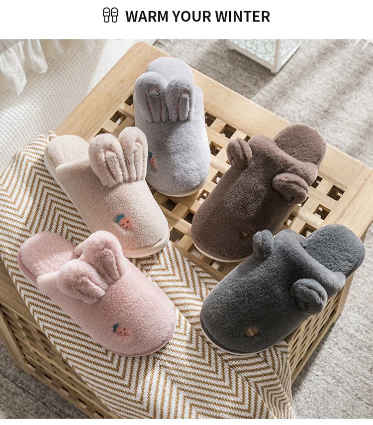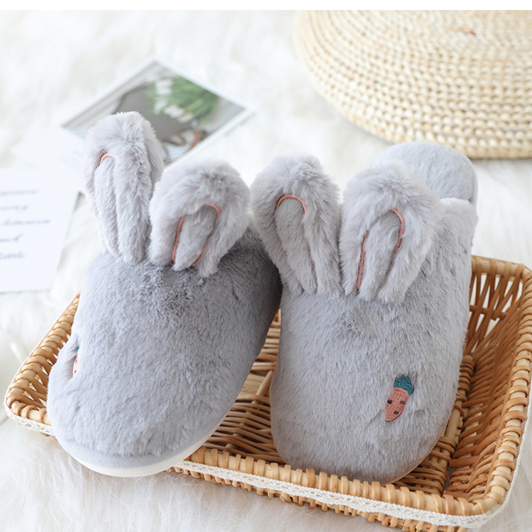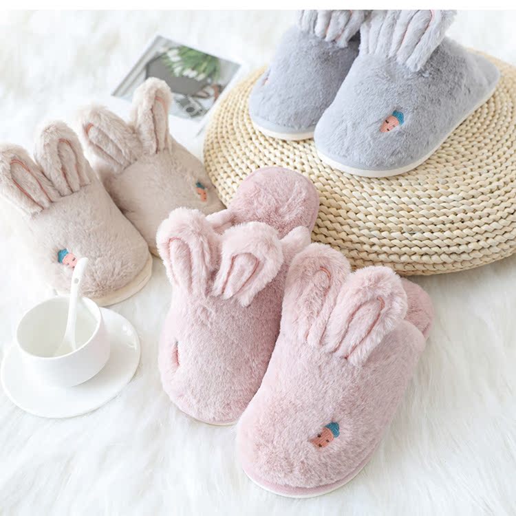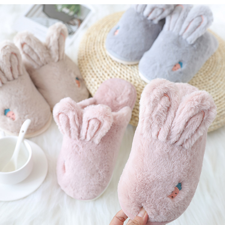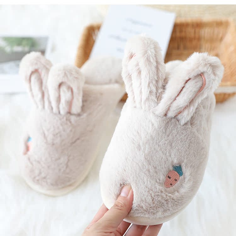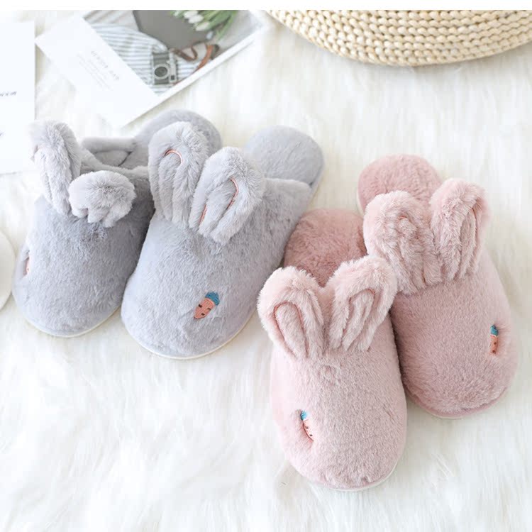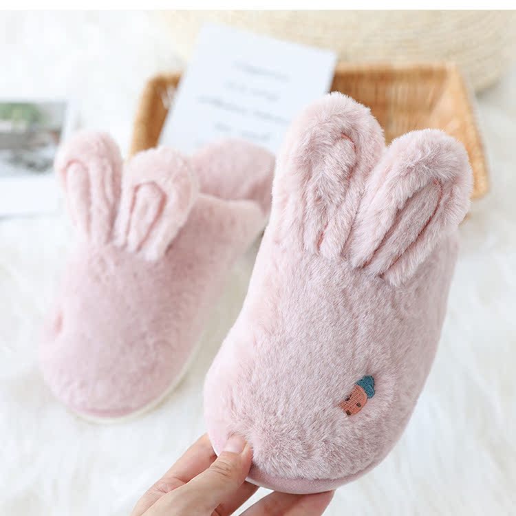 2019新款情侶棉拖鞋蘿卜兔子厚棉拖男女毛絨冬季防滑耐磨保暖拖鞋1入
