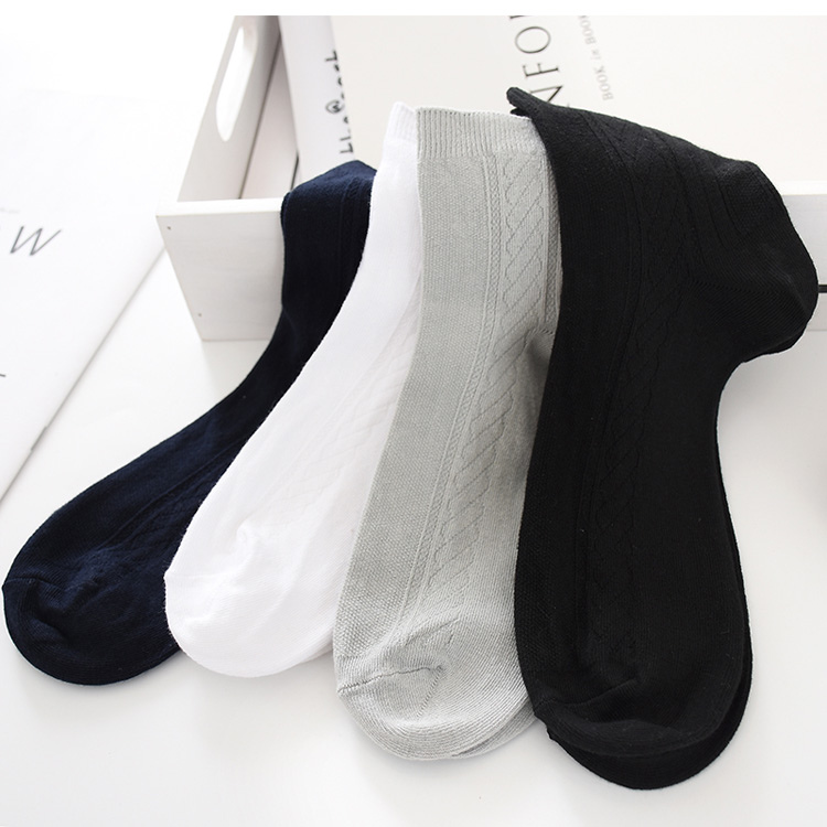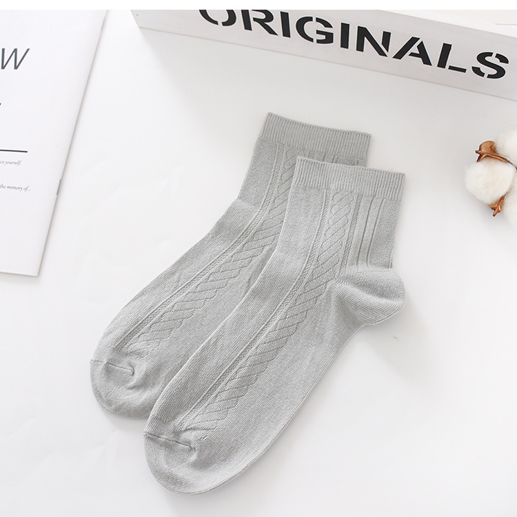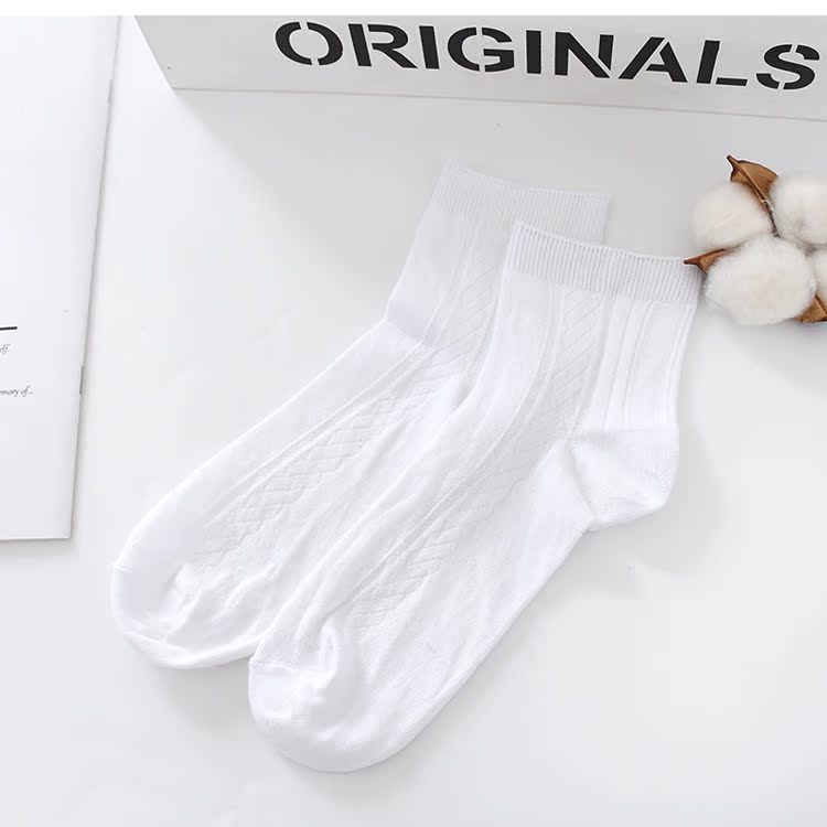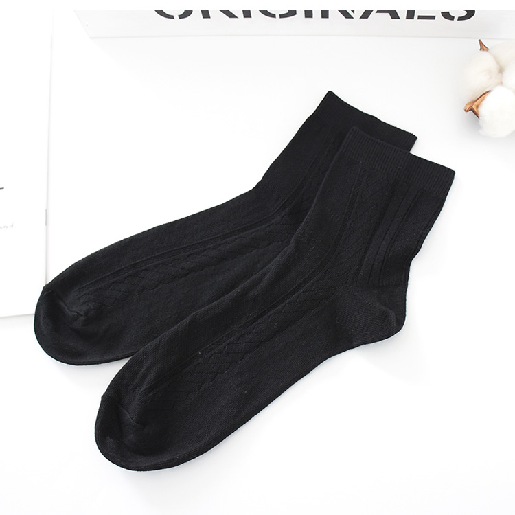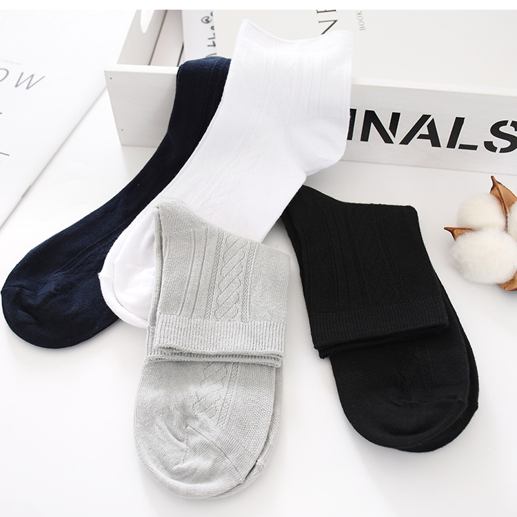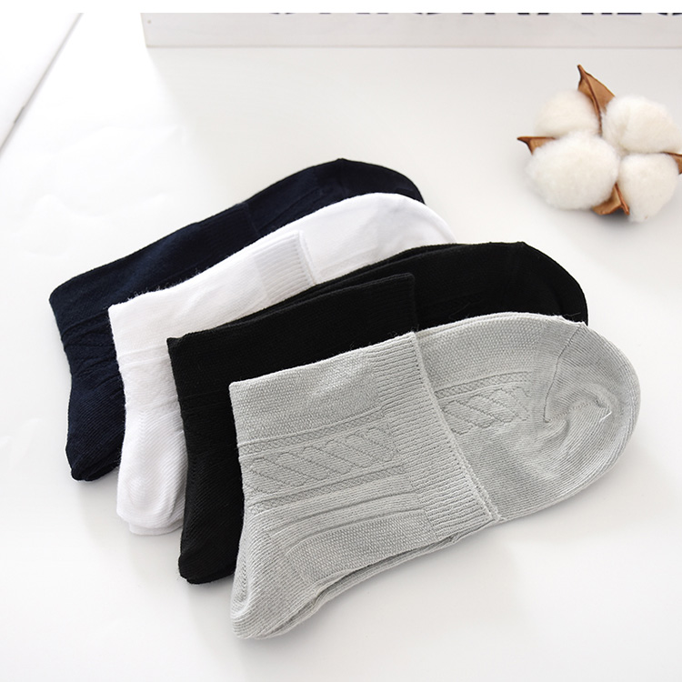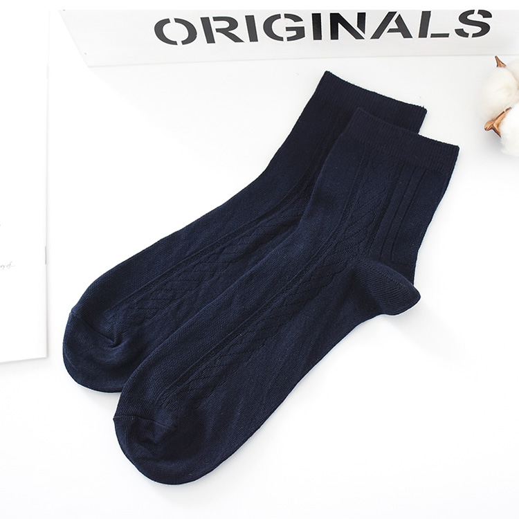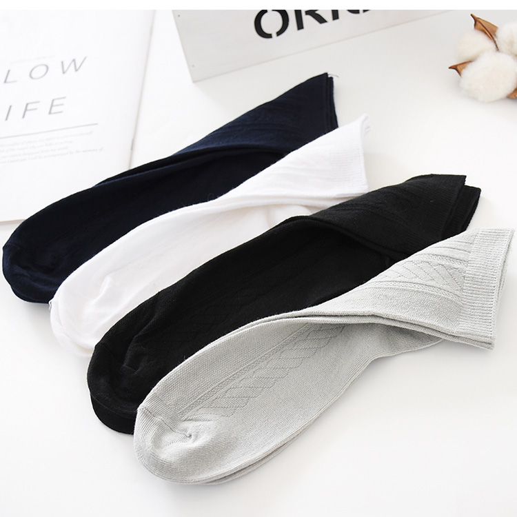 襪子男秋季中筒襪純棉薄款四季防臭男士休閑棉襪純色織花商務男襪1入