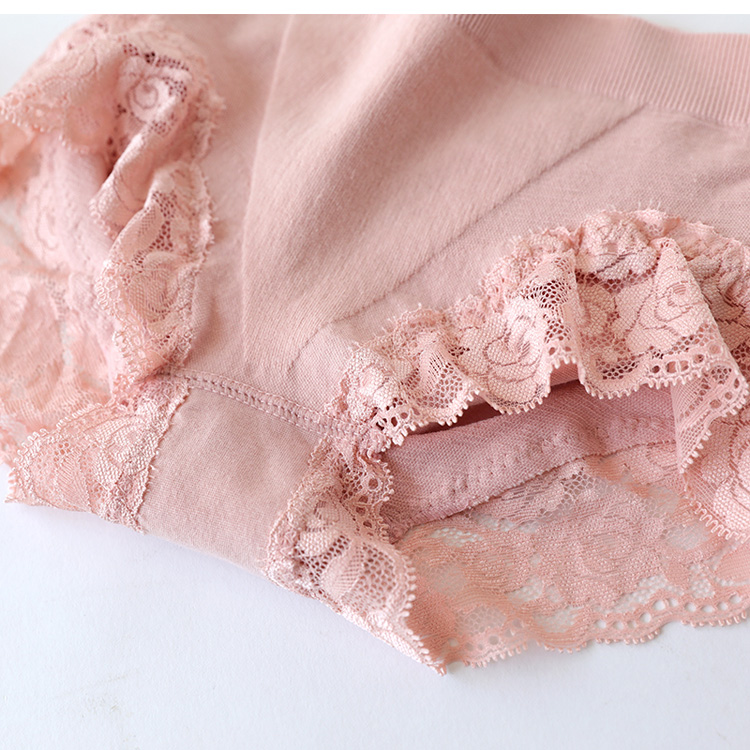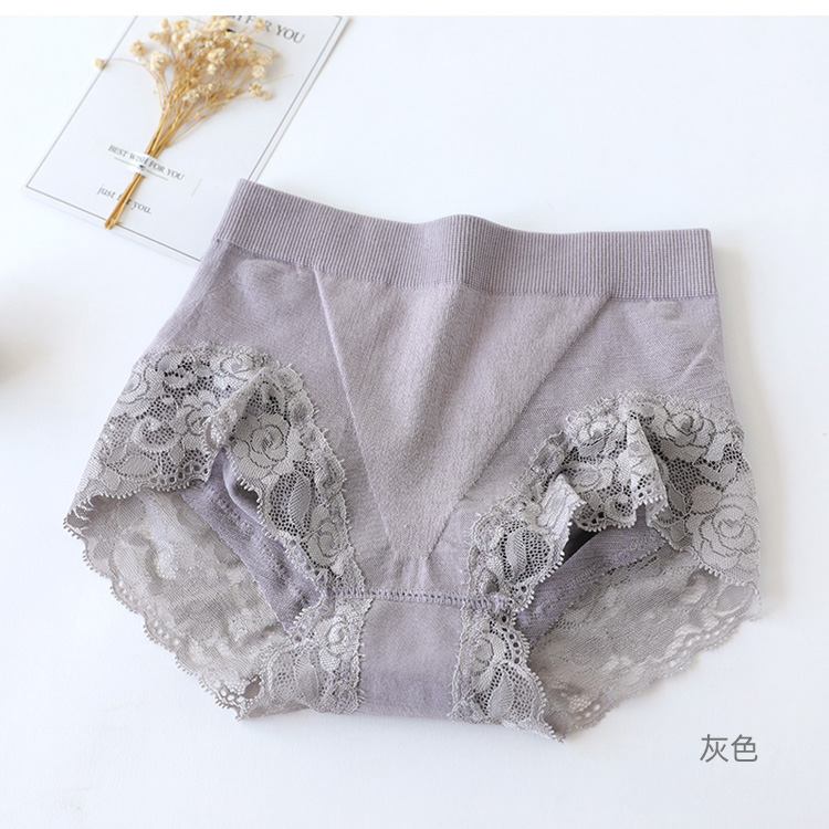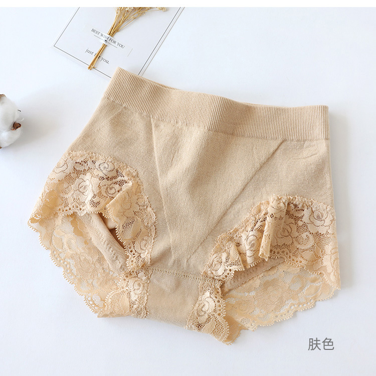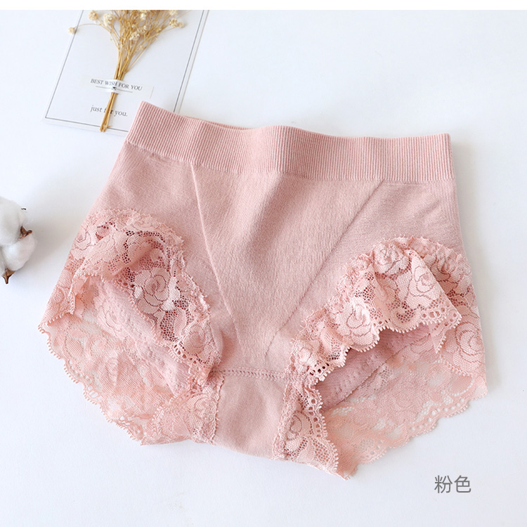 高腰內褲女純棉襠收腹提臀無痕蕾絲邊大碼棉質面料三角褲包臀1入