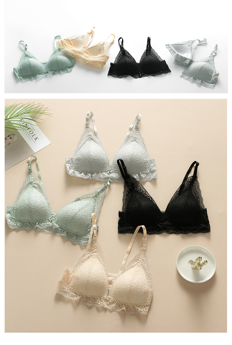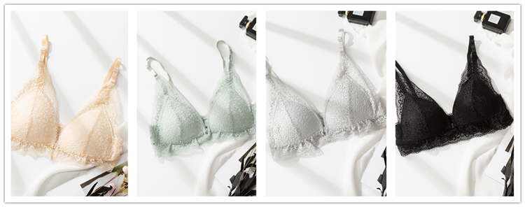 顏色:黑色,膚色,青色,灰色尺碼:S M L XL 罩杯:3/4模杯類型:薄模杯肩帶類型:固定雙肩帶排扣類型:前搭扣期待已久得文胸,屬于夏季的文胸,無論是顏色,還是款式,太美了輕盈透氣的一款無鋼圈薄杯文胸精美的蕾絲把整個文胸全部包裹了起來,別致的小清新,柔軟,細膩簡約的前搭扣設計,避免移位的尷尬背部的蕾絲在夏天也適合搭配lu背的衣服哦本款產品是AB通杯的薄款文胸,優點就是輕薄,舒適,貼身為主適合喜愛薄杯的MM,聚攏效果也不錯哦