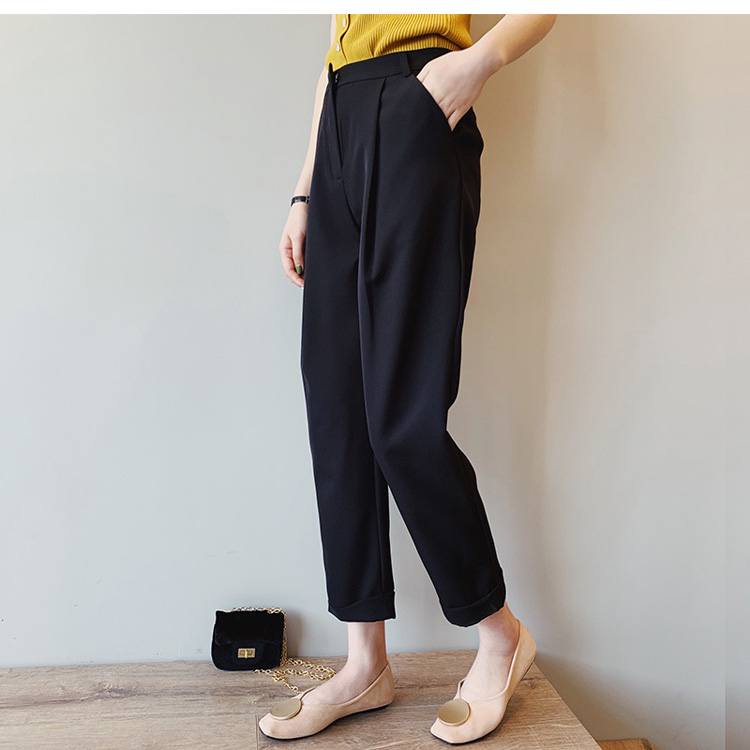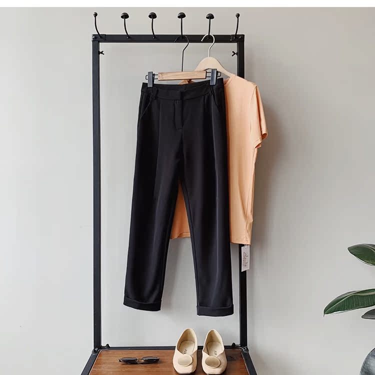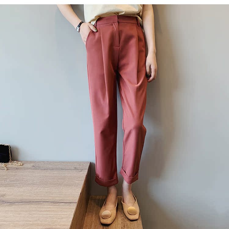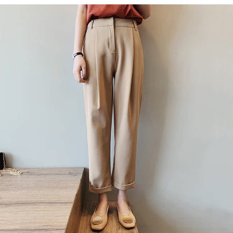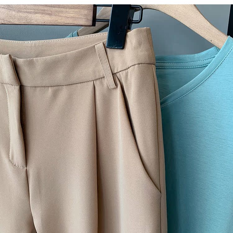 闊腿褲女高腰垂感西裝褲直筒顯瘦高腰寬松休閑褲九分褲子工裝褲1入