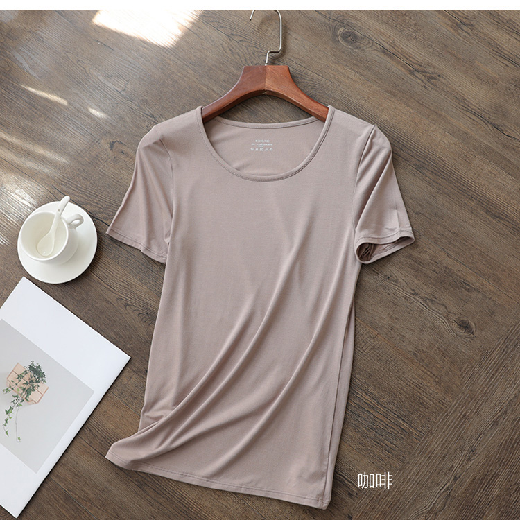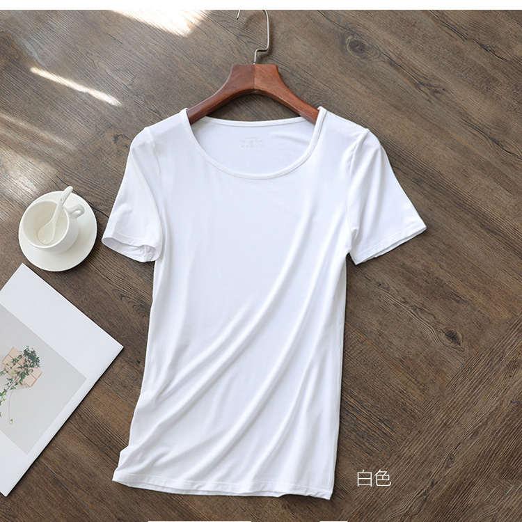 2019新款T恤女短袖薄款上衣內搭修身純色打底衫夏季莫代爾白色1入