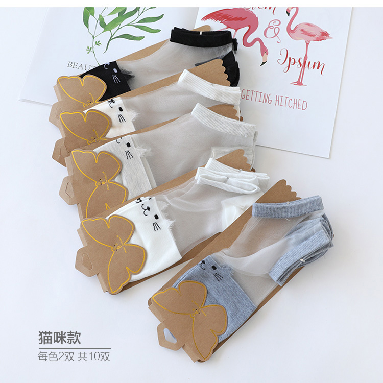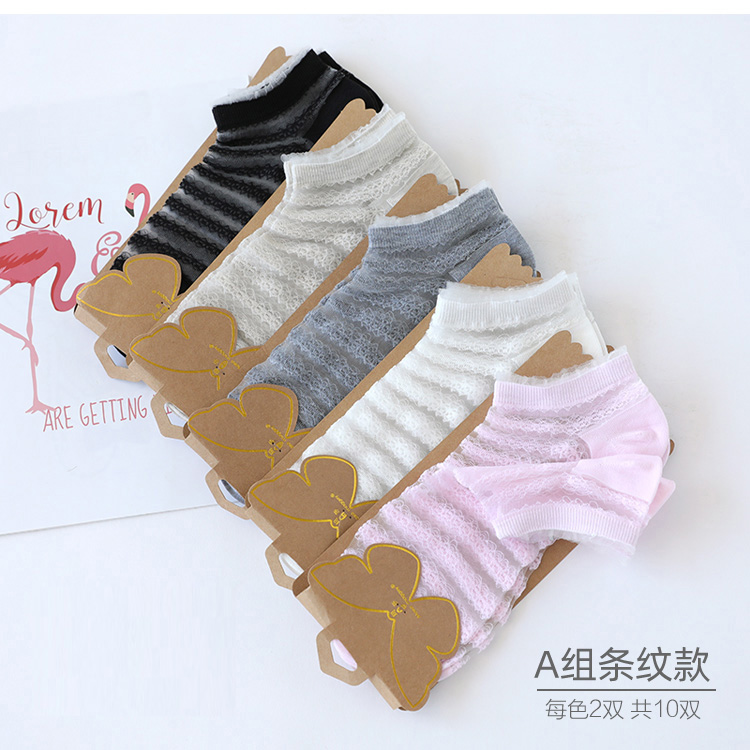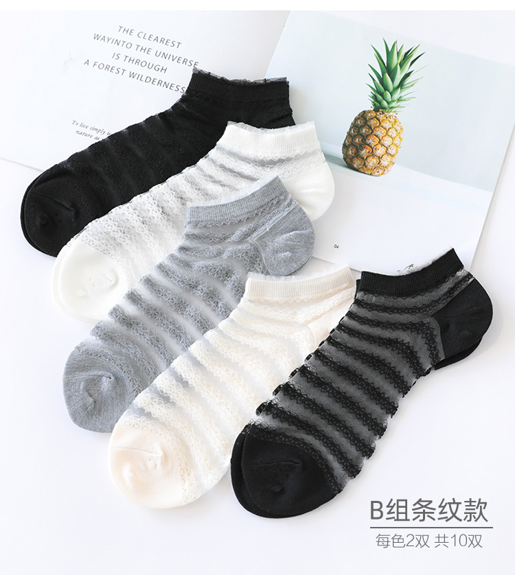 10雙裝日系襪子女薄款隱形襪短襪淺口船襪夏季夏天玻璃絲襪防滑1入