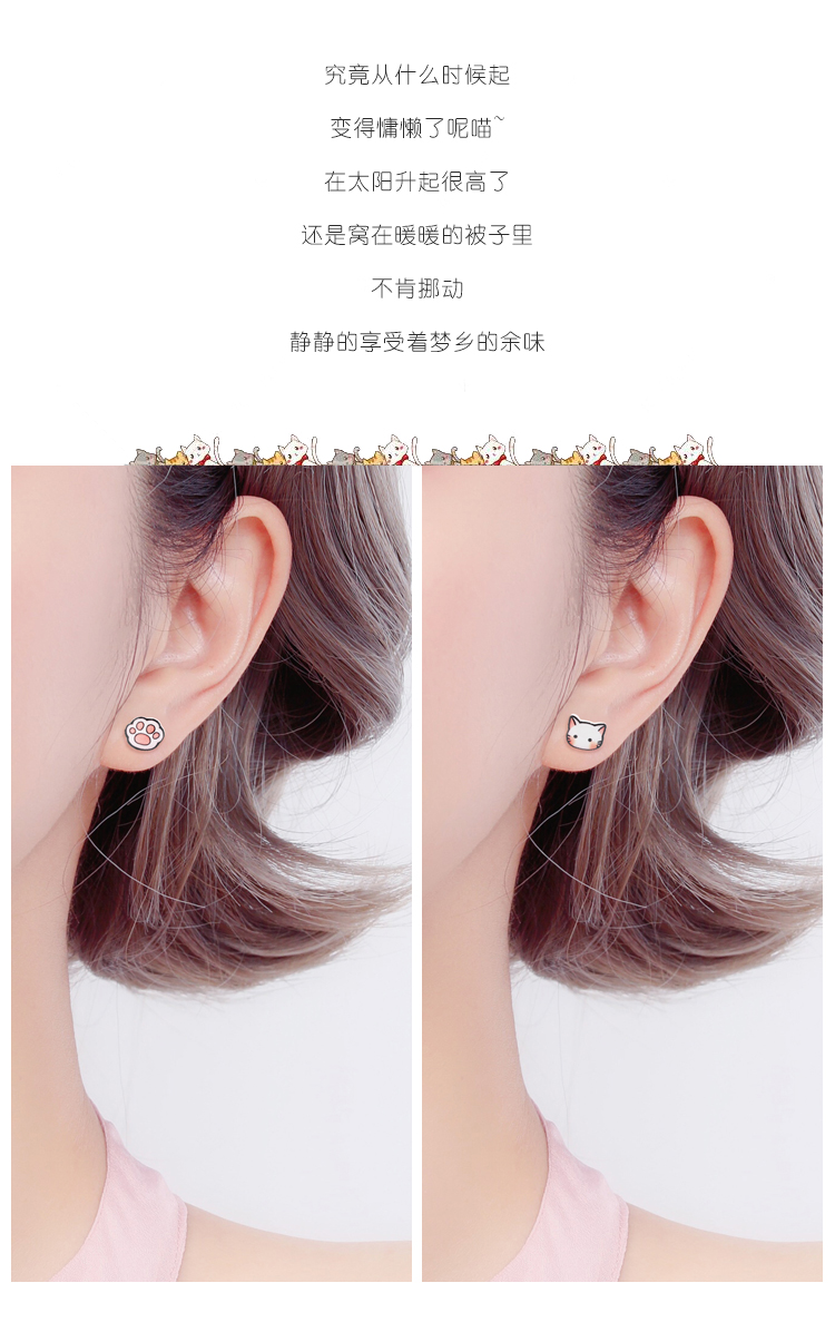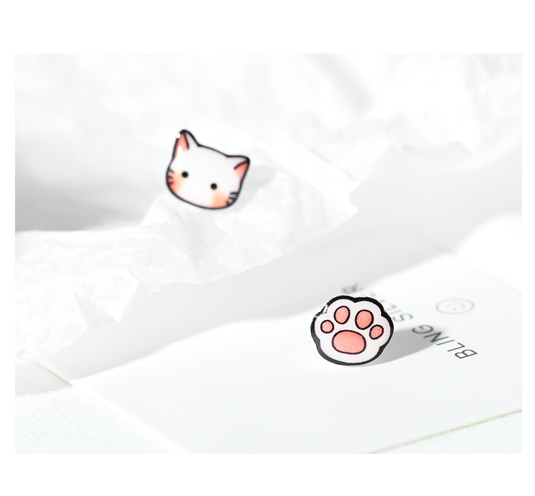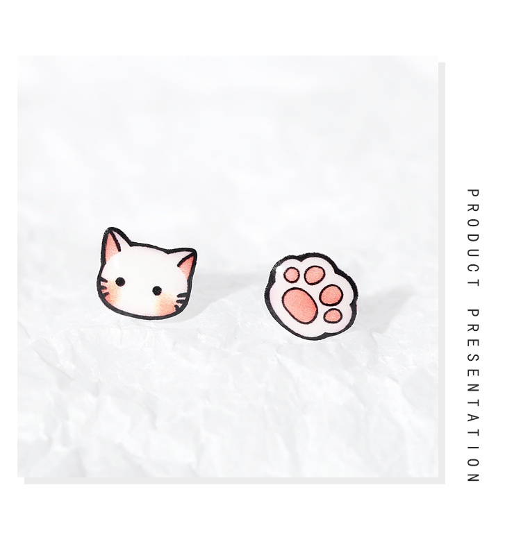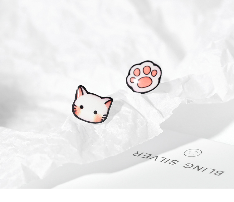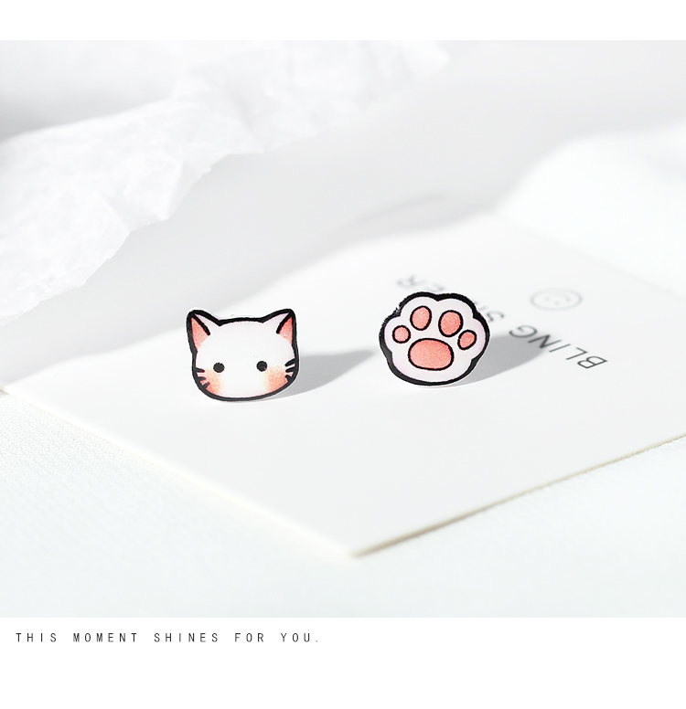 貓咪貓爪可愛少女心ins不對稱耳釘女純銀小簡約氣質銀針耳環網紅1入