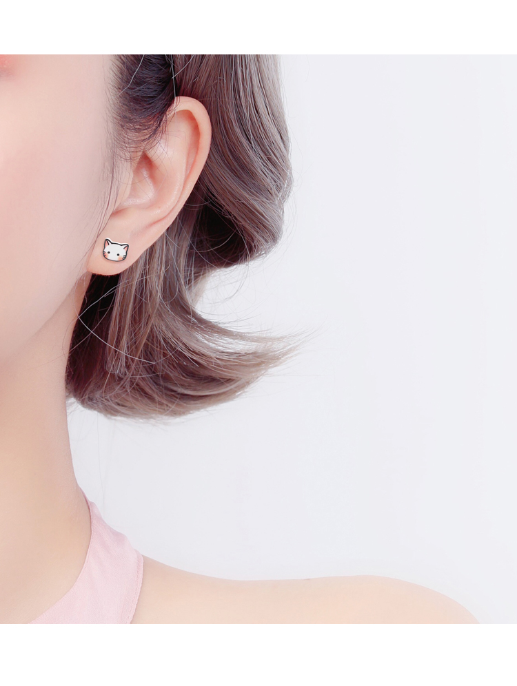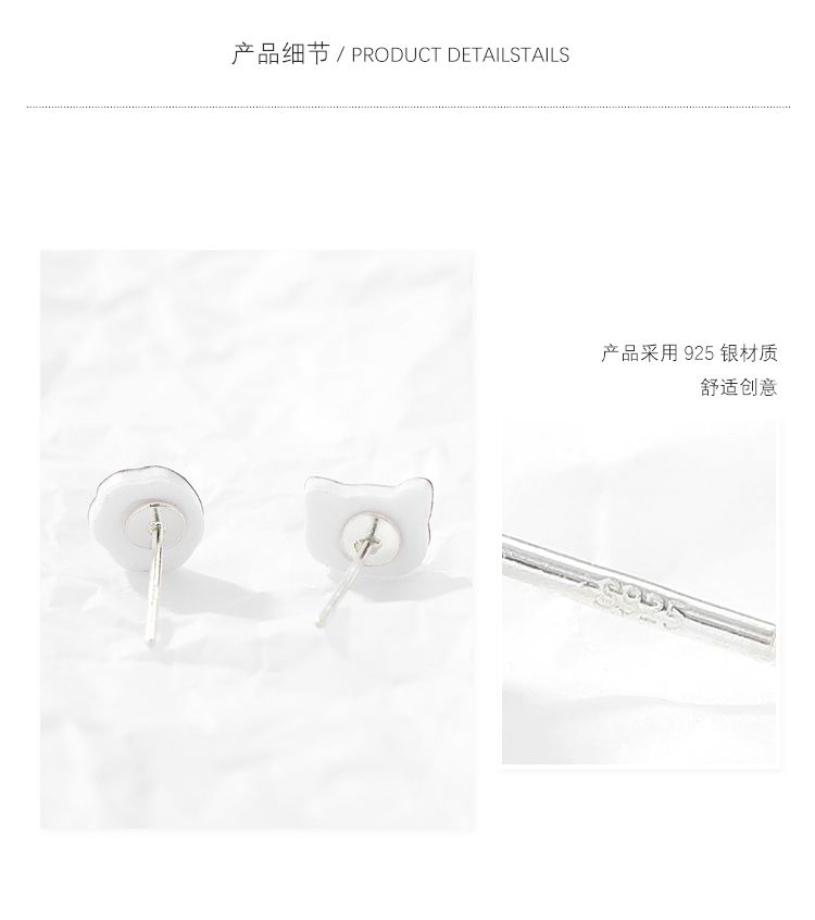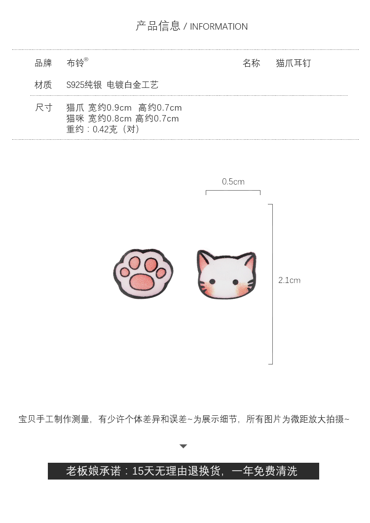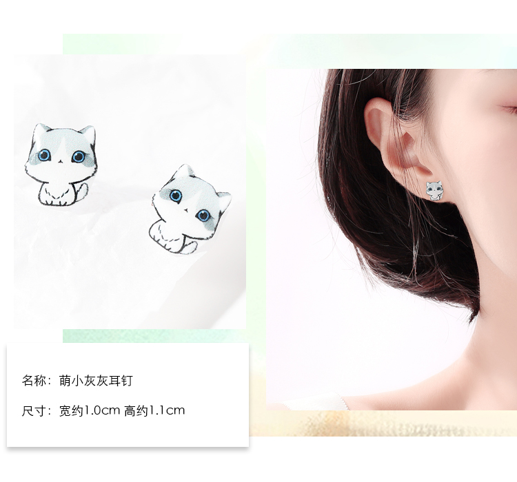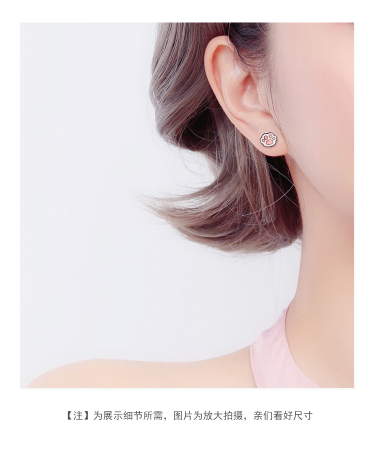 貓咪貓爪可愛少女心ins不對稱耳釘女純銀小簡約氣質銀針耳環網紅1入
