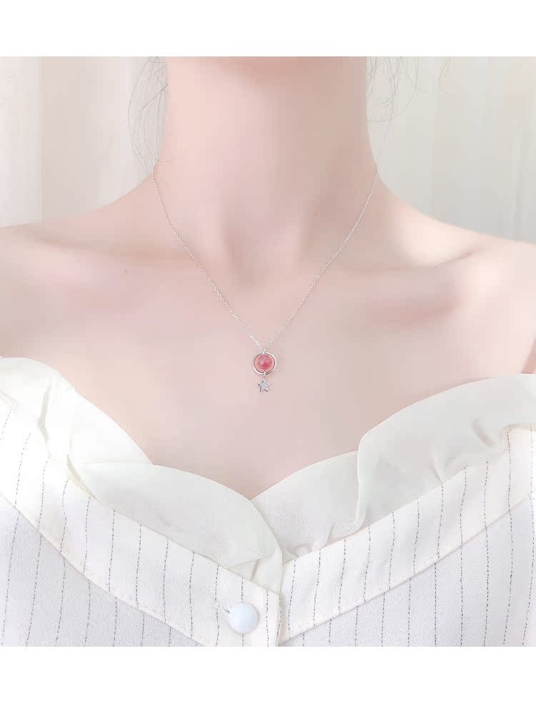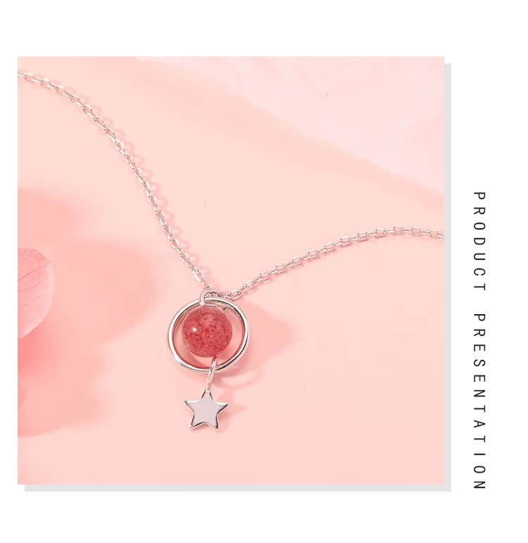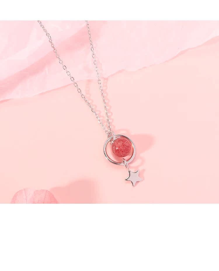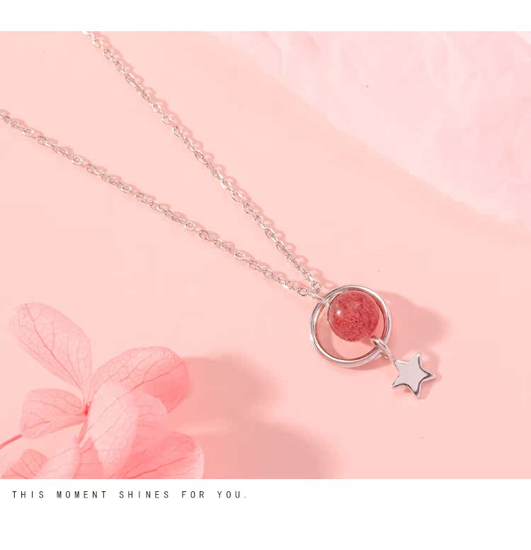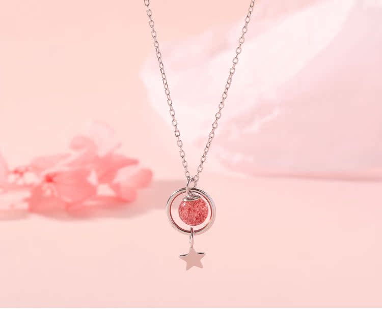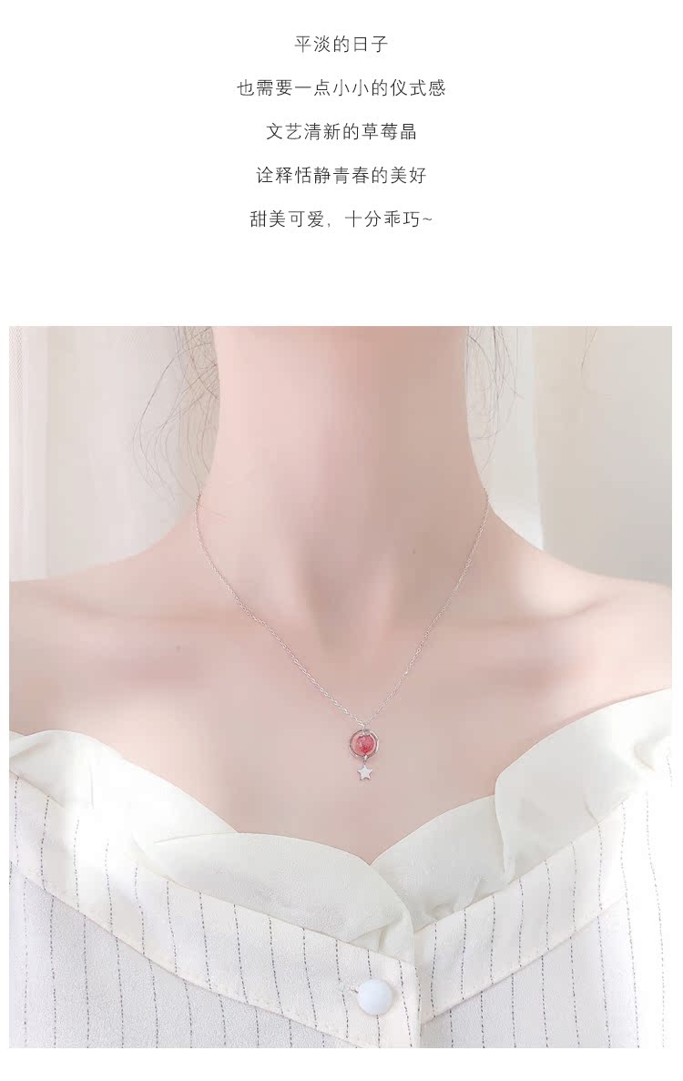 魔法星圈項鏈女純銀輕奢小眾設計鎖骨鏈草莓晶招桃花清新可愛森系1入