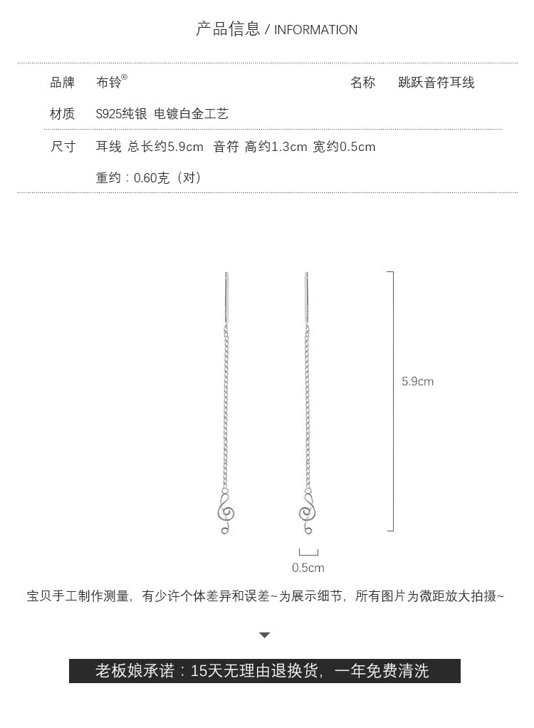 音符耳線女純銀長款耳墜小清新可愛氣質超仙網紅日系純銀925文藝1入