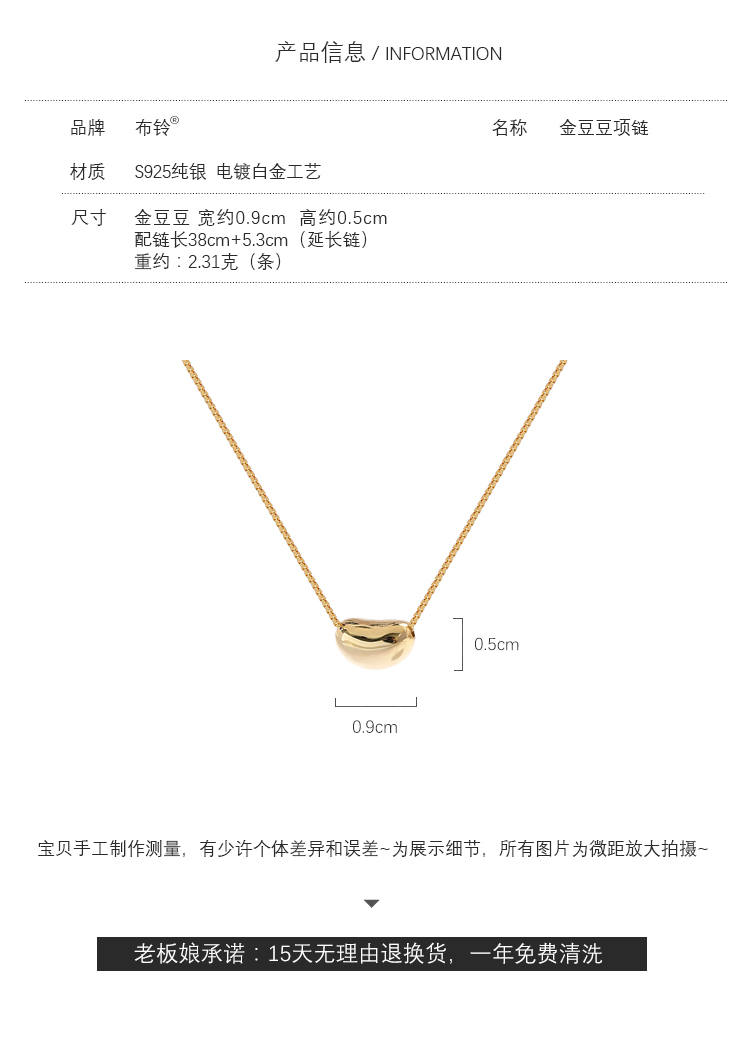 輕奢小眾設計金豆豆項鏈女純銀精致個性簡約百搭鎖骨鏈潮網紅ins1入