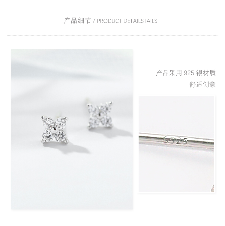 鋯石四葉花迷你耳釘女純銀小簡約精致冷淡風網紅銀針設計感學生1入