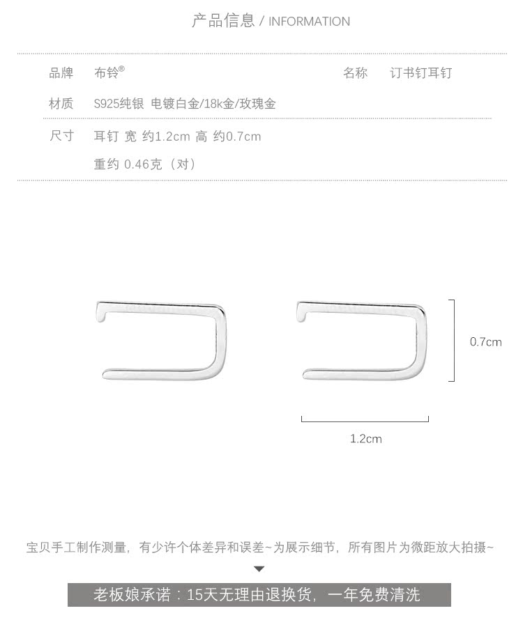 訂書釘耳釘女純銀簡約冷淡風小巧氣質韓國個性酷帥網紅耳環創意潮1入