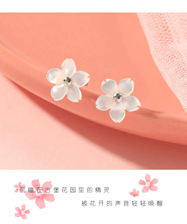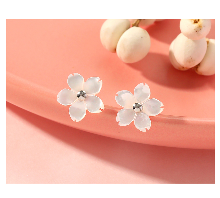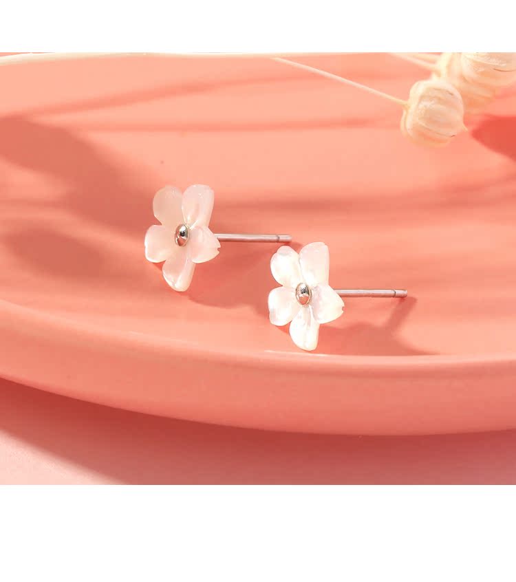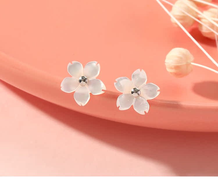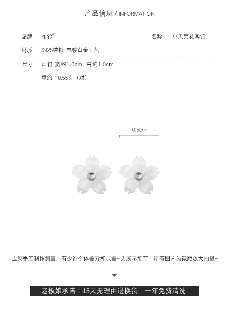 貝殼花朵耳釘女純銀可愛簡約冷淡風氣質百搭小巧清新ins韓國個性1入