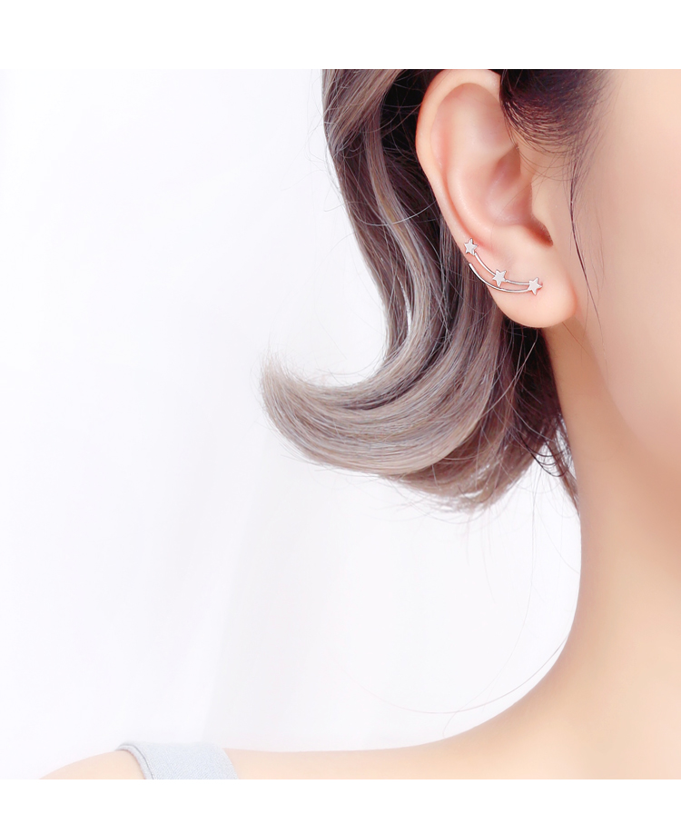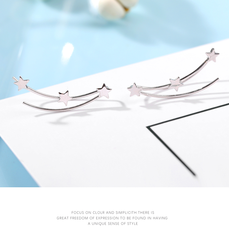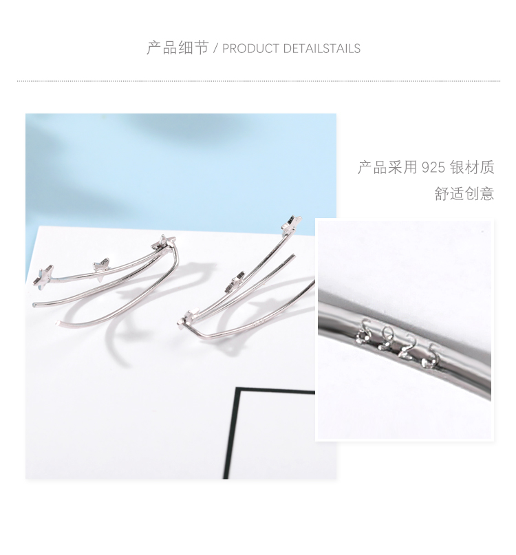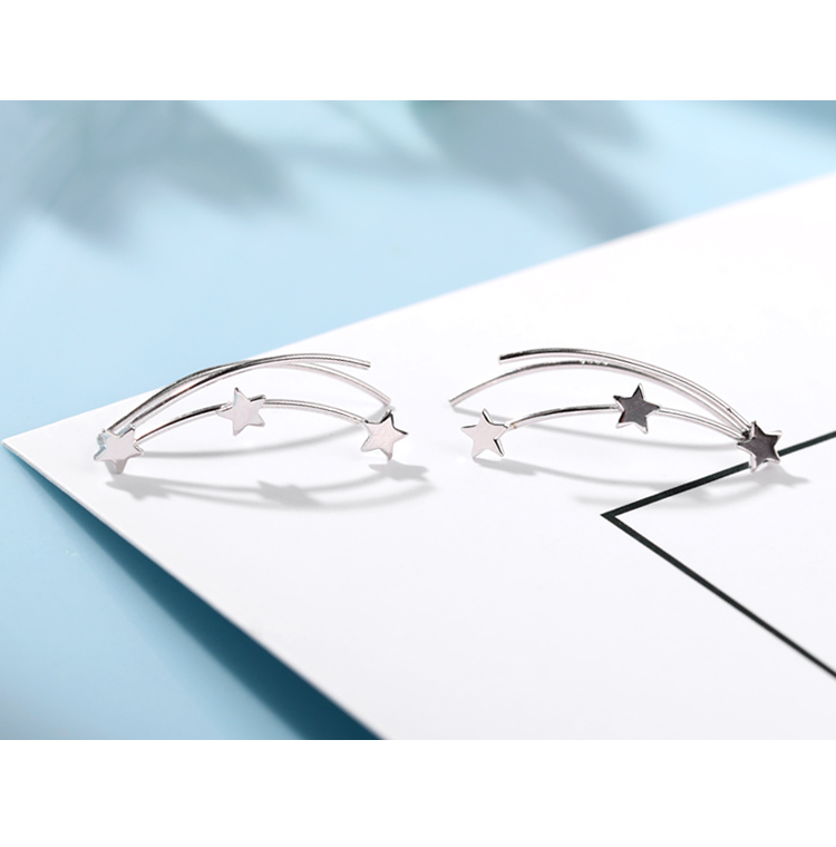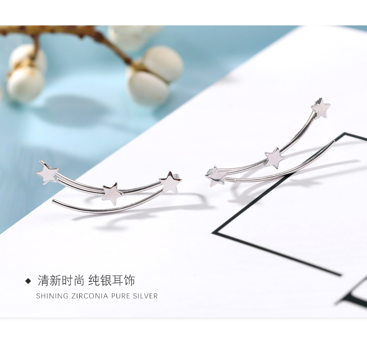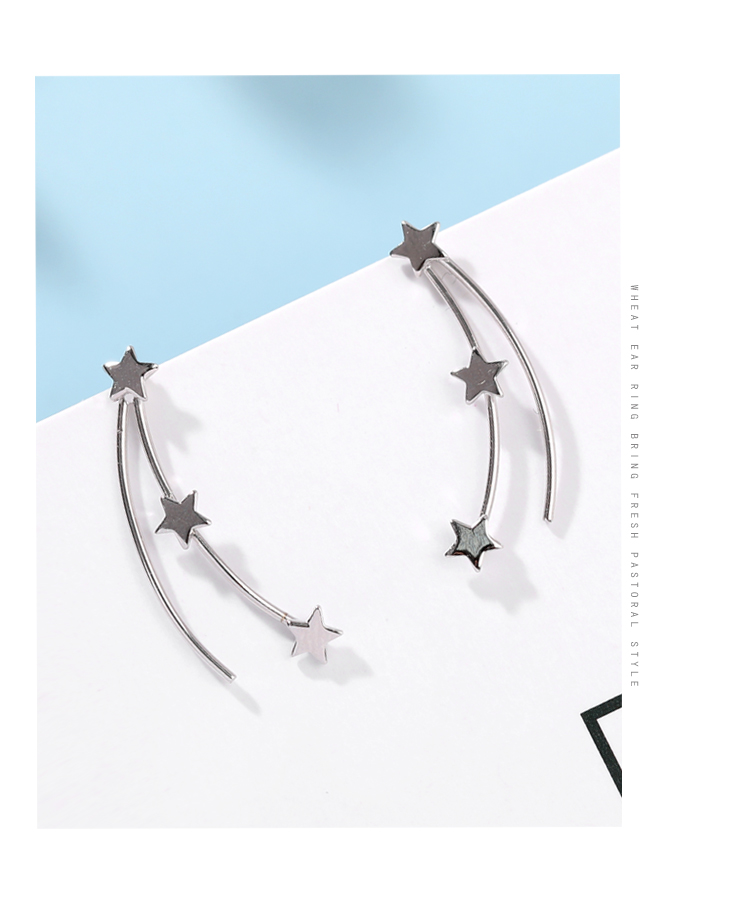 許愿星星耳排耳釘女純銀小簡約學生清新氣質銀針防過敏網紅耳環1入