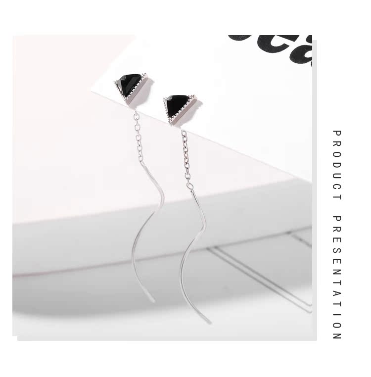 黑色三角耳線女簡約氣質韓國網紅純銀耳鏈短款小耳墜精致百搭耳飾1入