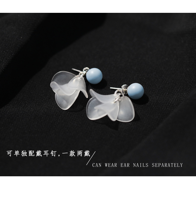 高級感耳釘女花瓣款小花耳環女長款氣質超仙純銀耳飾百搭網紅小眾1入