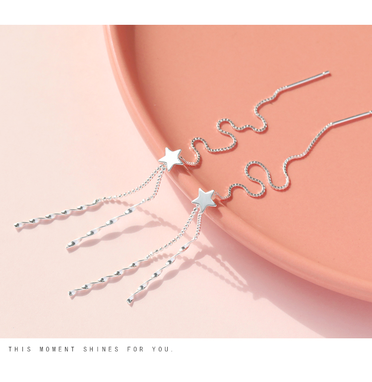 許愿星耳墜純銀耳環女長款氣質超仙流蘇耳線女韓國耳飾小巧精致1入