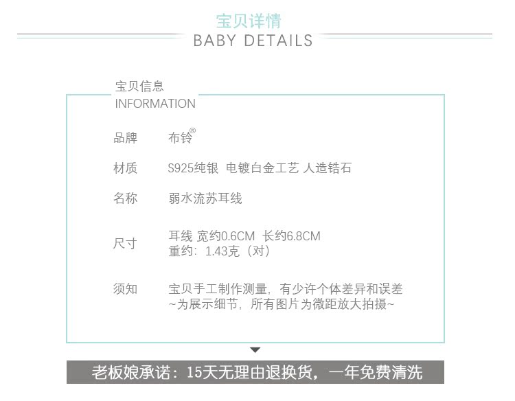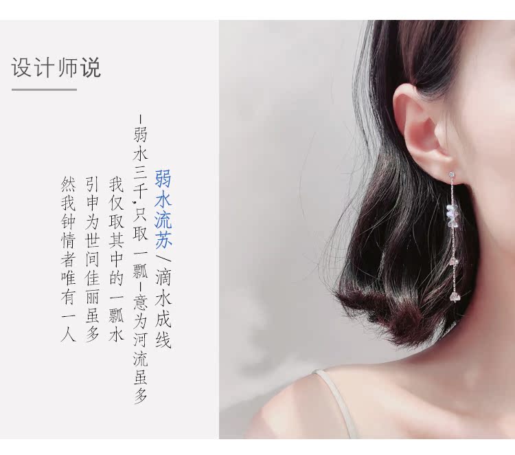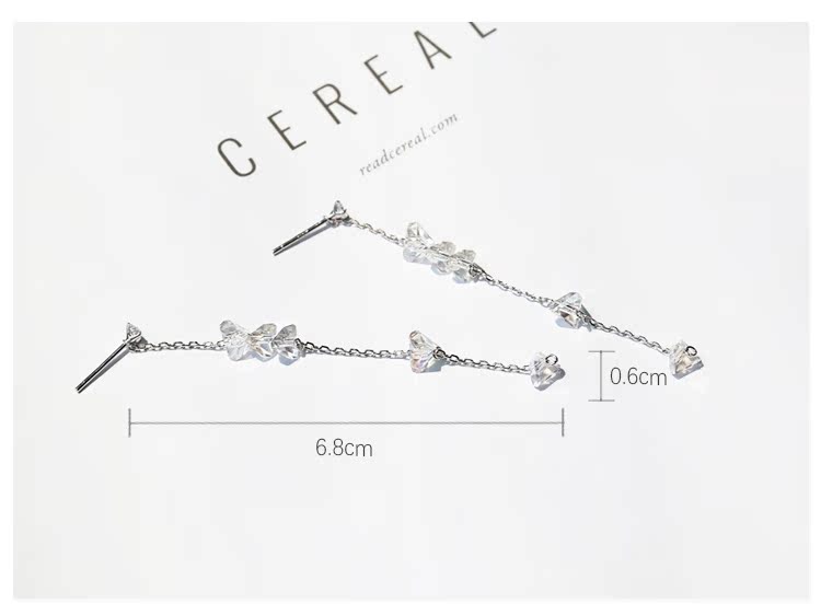 鋯石耳釘超閃純銀個性耳鏈超仙耳環長款氣質簡約耳線耳墜韓國女1入