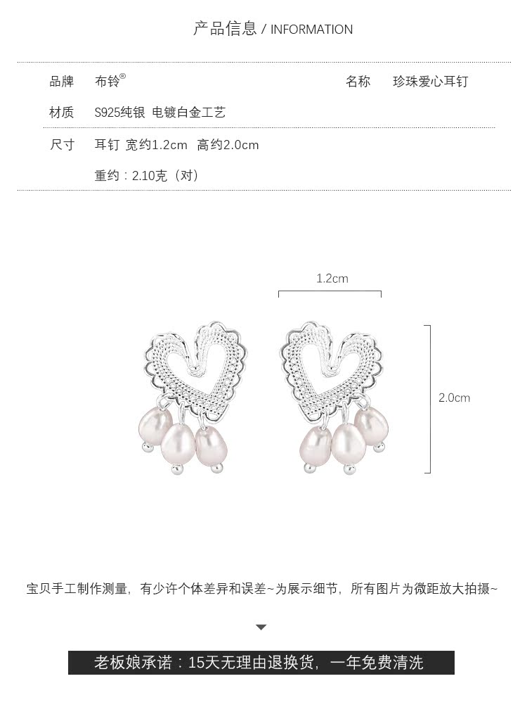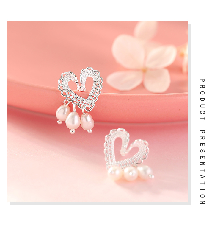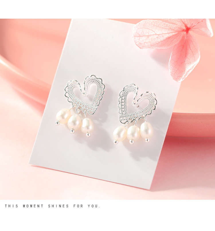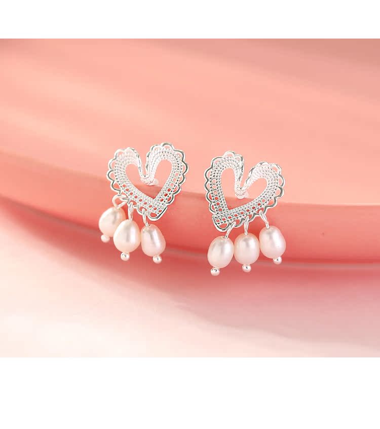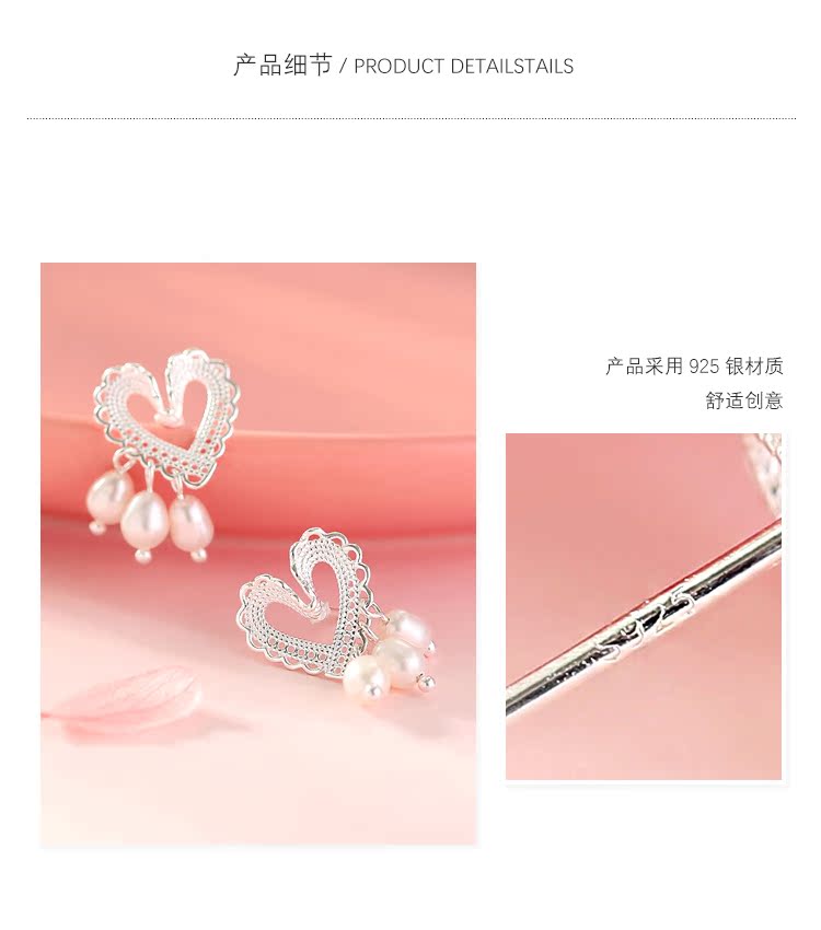 輕奢小眾設計蕾絲愛心珍珠耳釘女純銀清新可愛優雅氣質超仙高級感1入