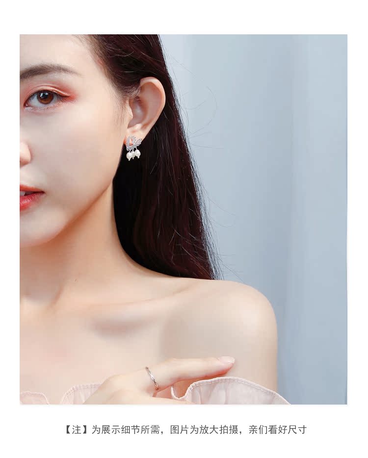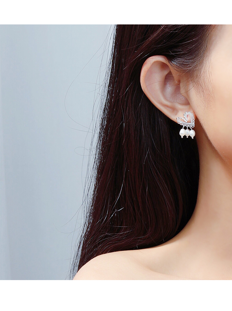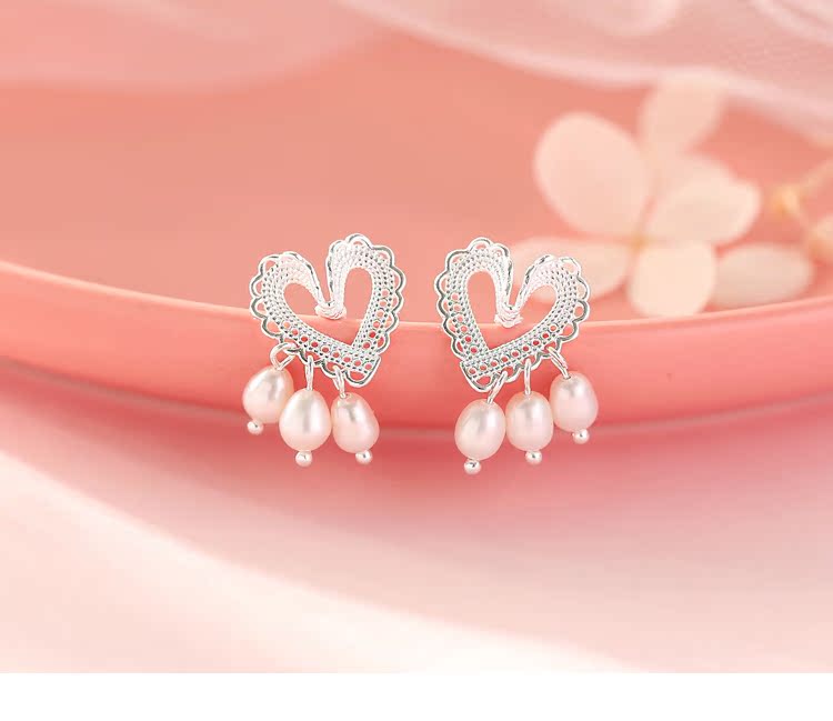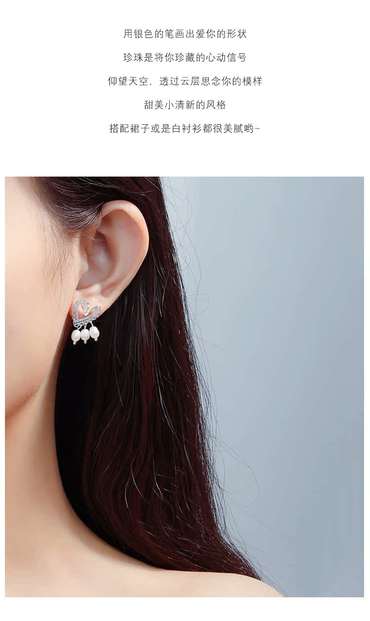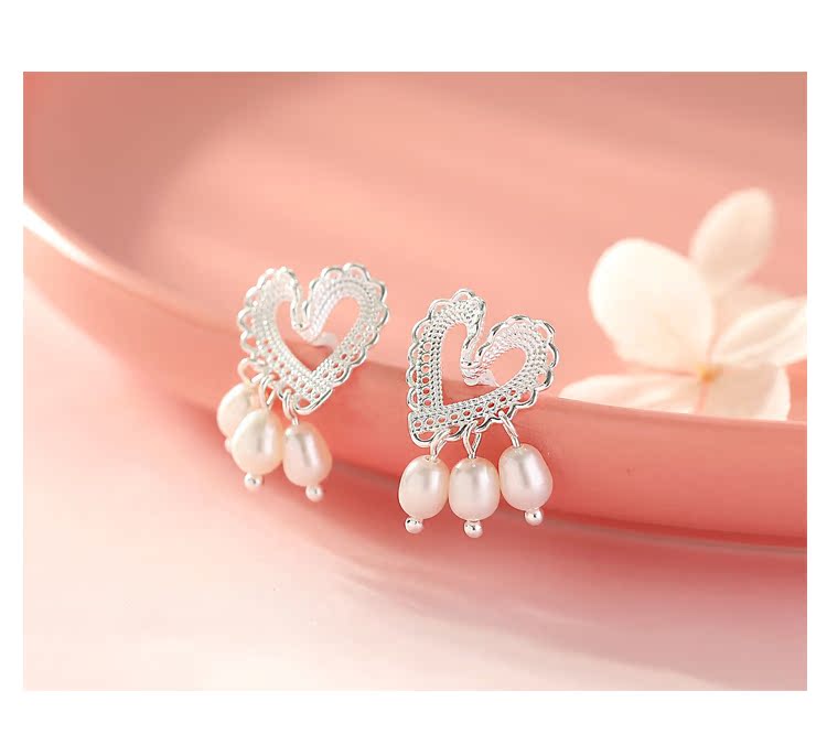 輕奢小眾設計蕾絲愛心珍珠耳釘女純銀清新可愛優雅氣質超仙高級感1入