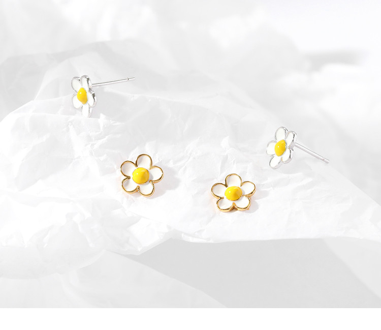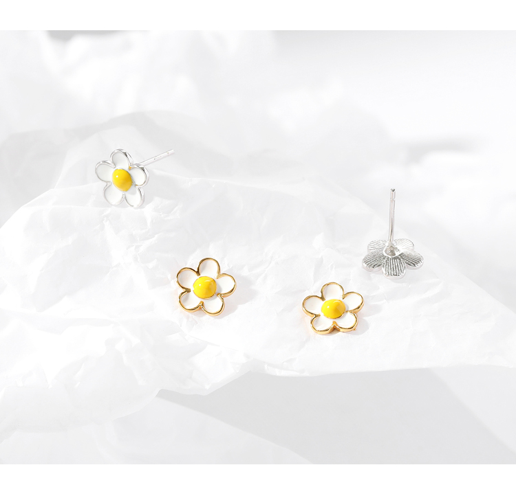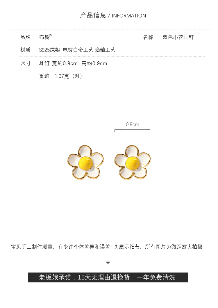 金銀雙色小花百搭溫柔可愛清新泫雅風純銀簡約耳釘1入