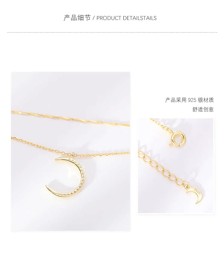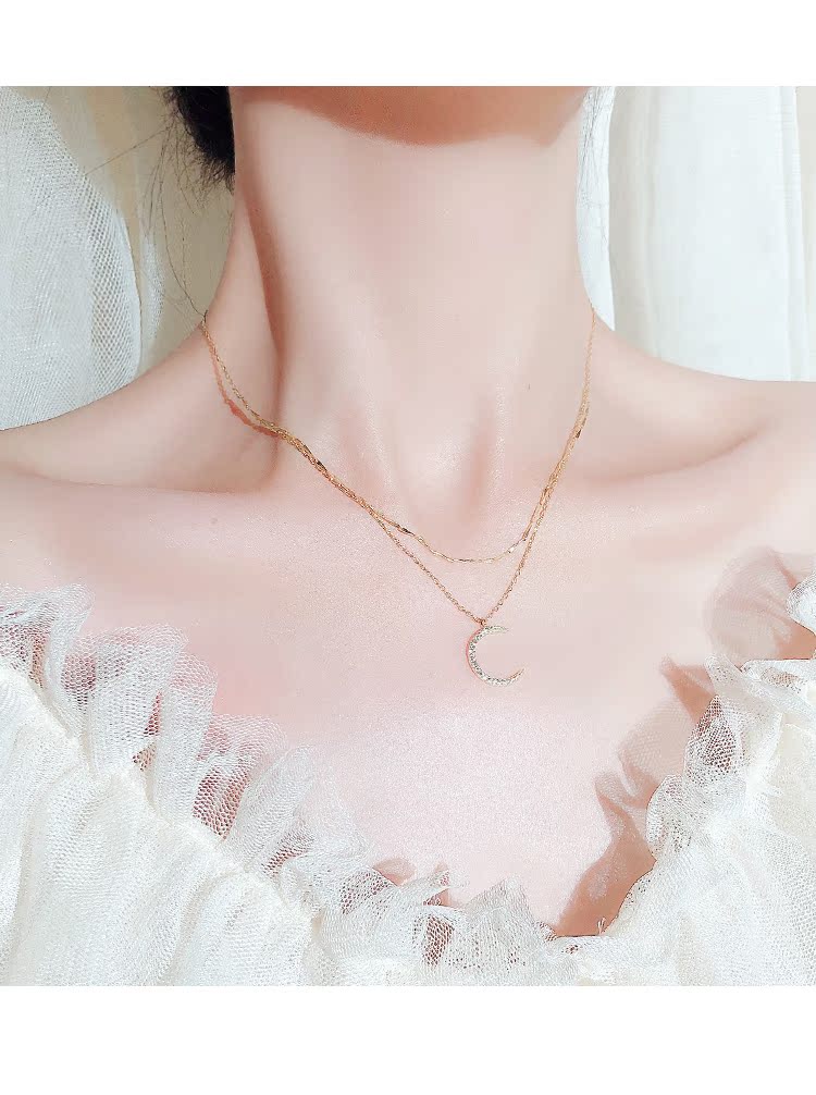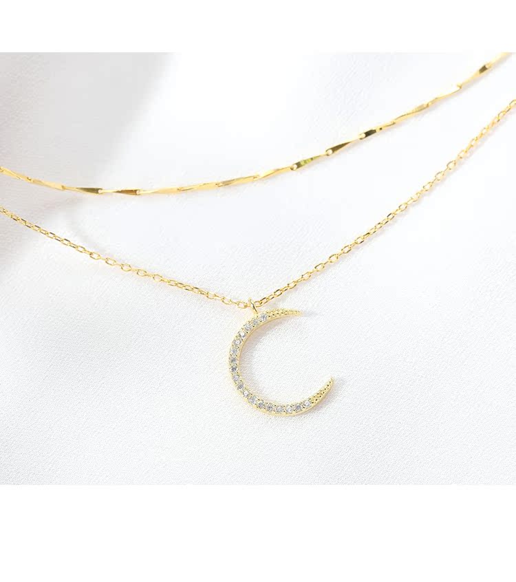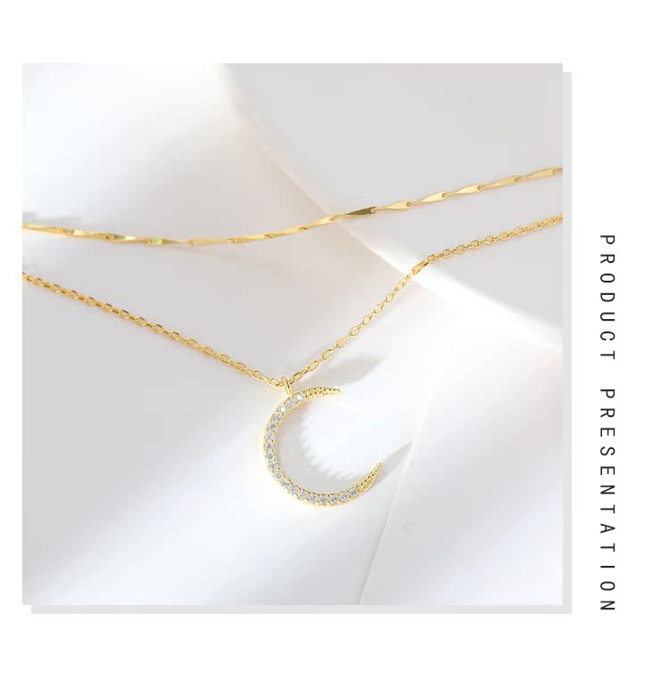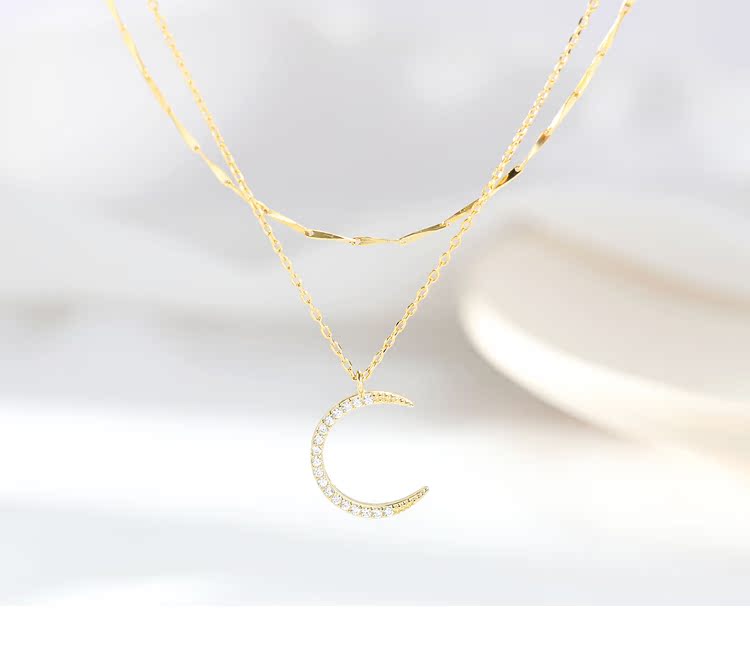 輕奢小眾設計雙層金月項鏈女純銀項圈鎖骨鏈氣質仙女網紅ins風9251入