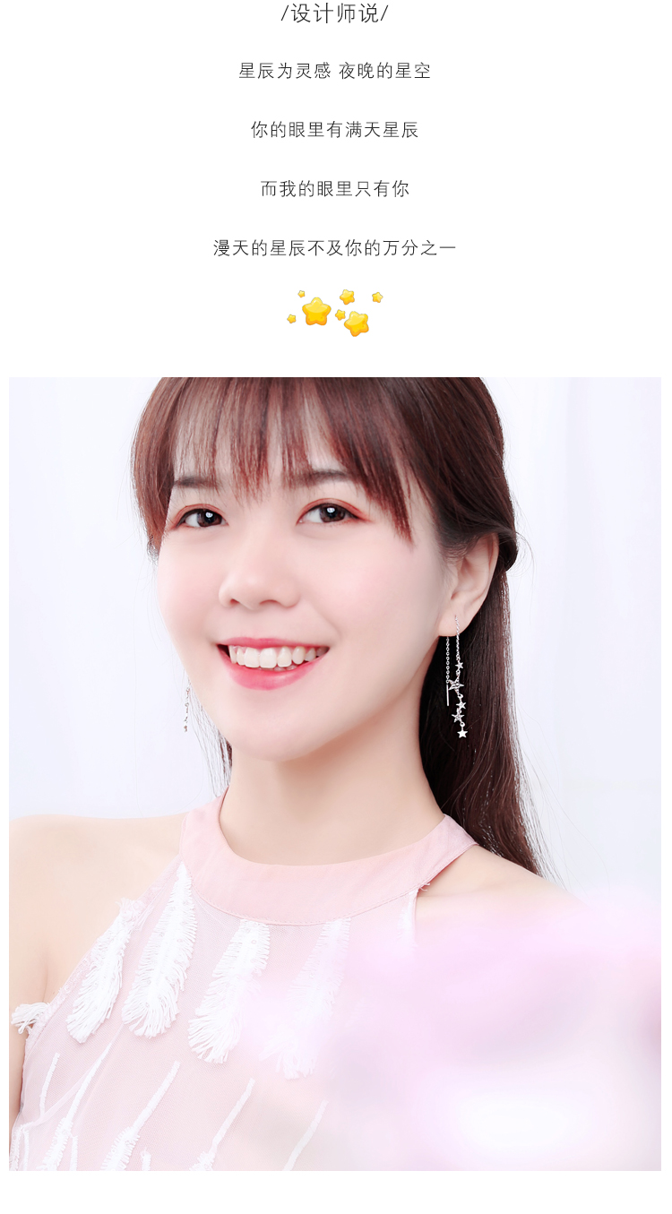 長款氣質超仙流蘇純銀星星耳線女高級感耳環法式優雅網紅清新百搭1入