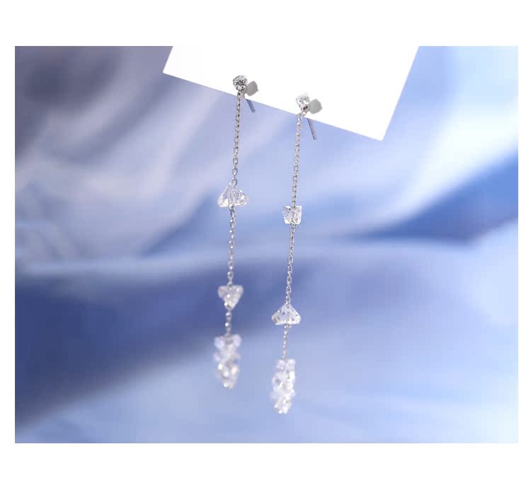 閃鉆耳鏈氣質韓國長款耳釘女純銀簡約個性超仙耳線網紅森系日系1入