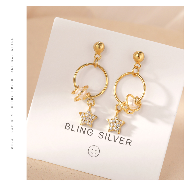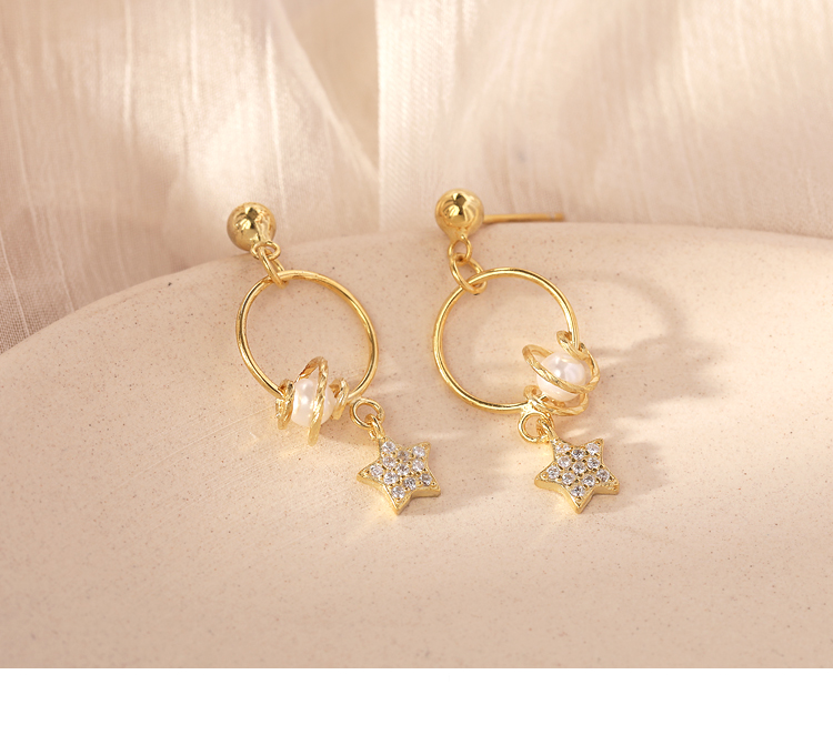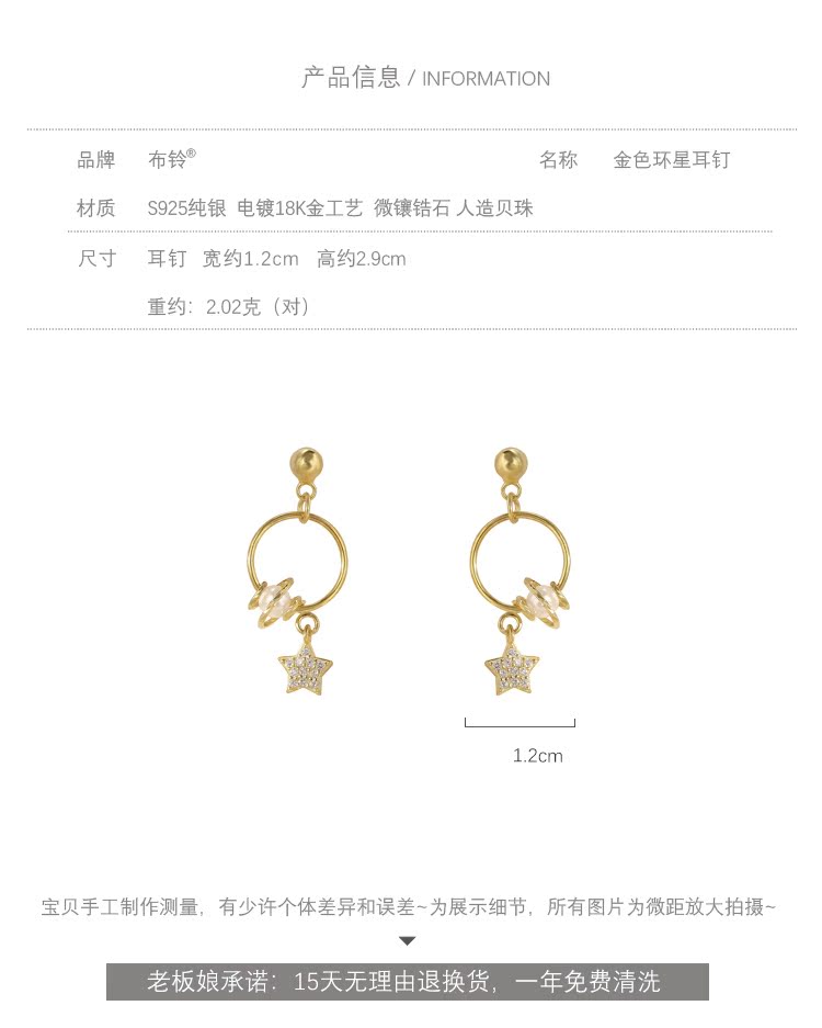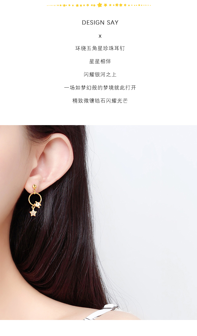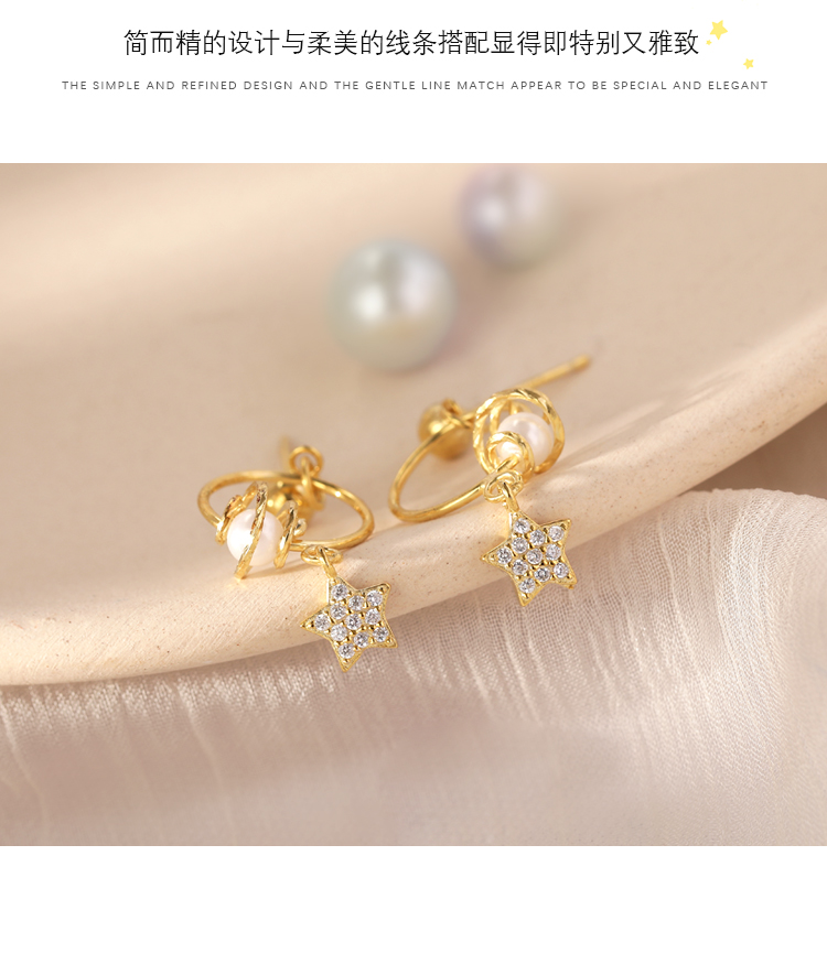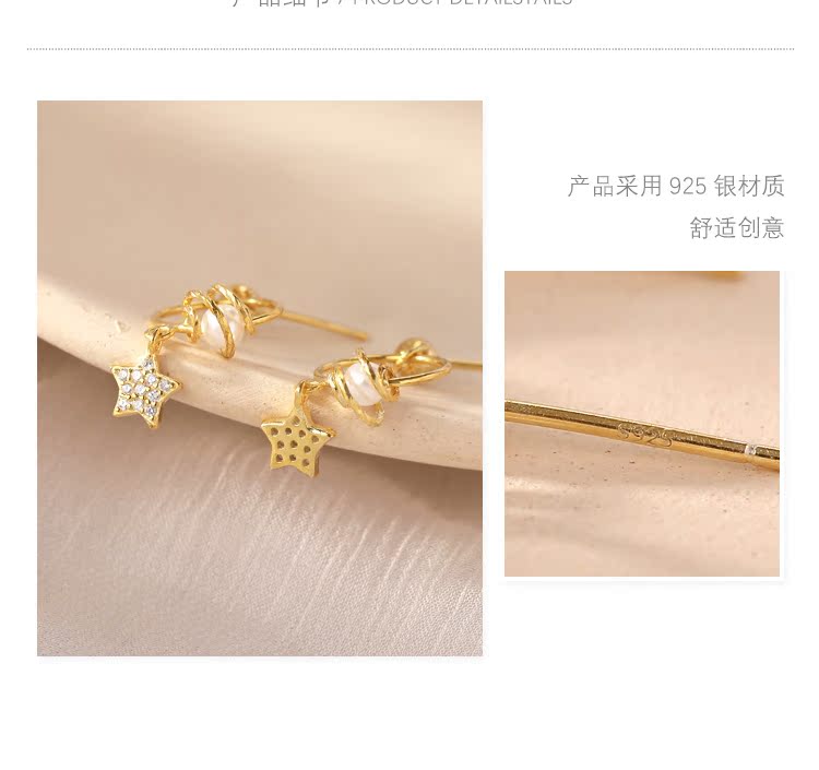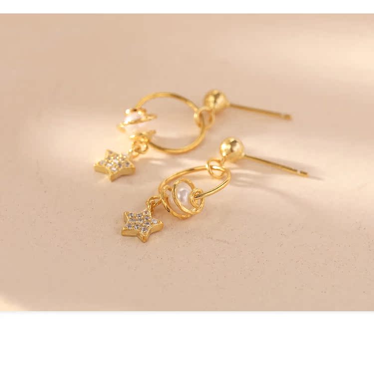 輕奢小眾設計閃耀星際耳釘女純銀鍍14k金不對稱耳飾高級感耳環Ins1入