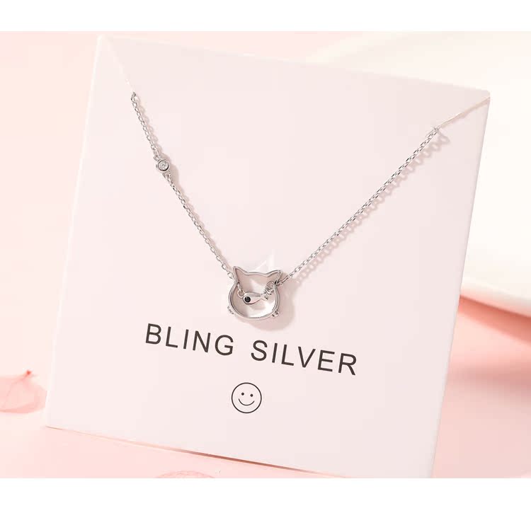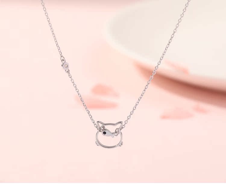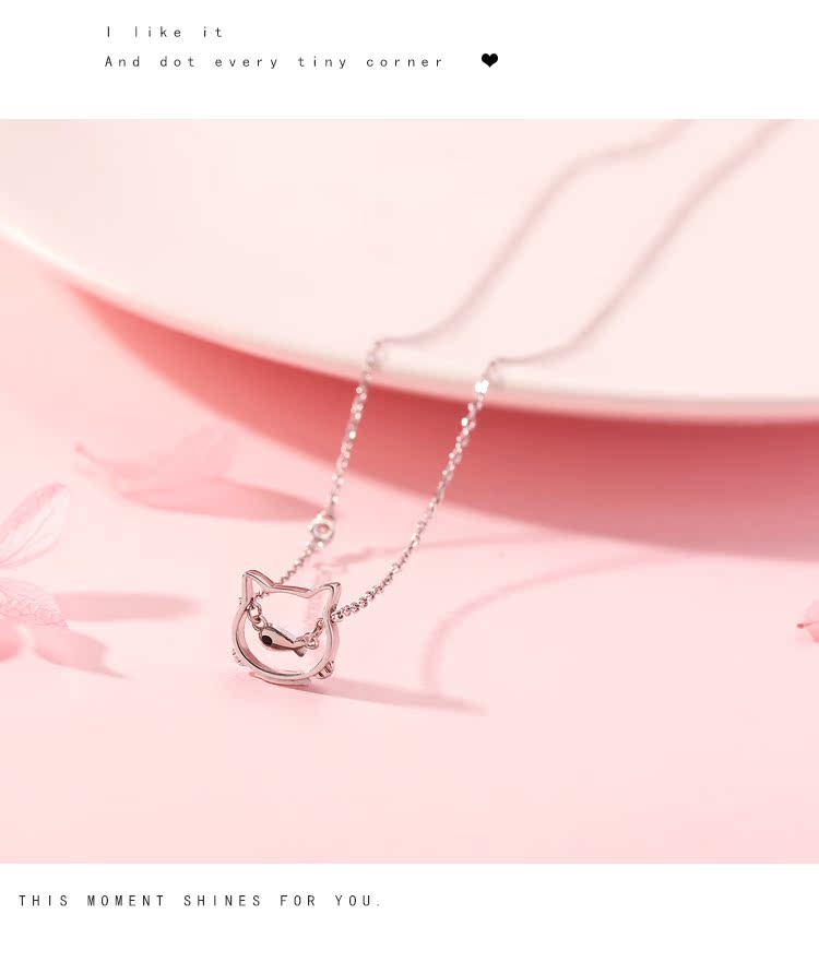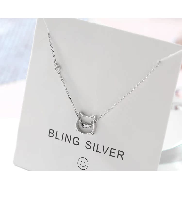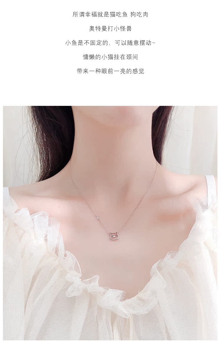 貓小魚項鏈吊墜純銀韓版可愛氣質女1入