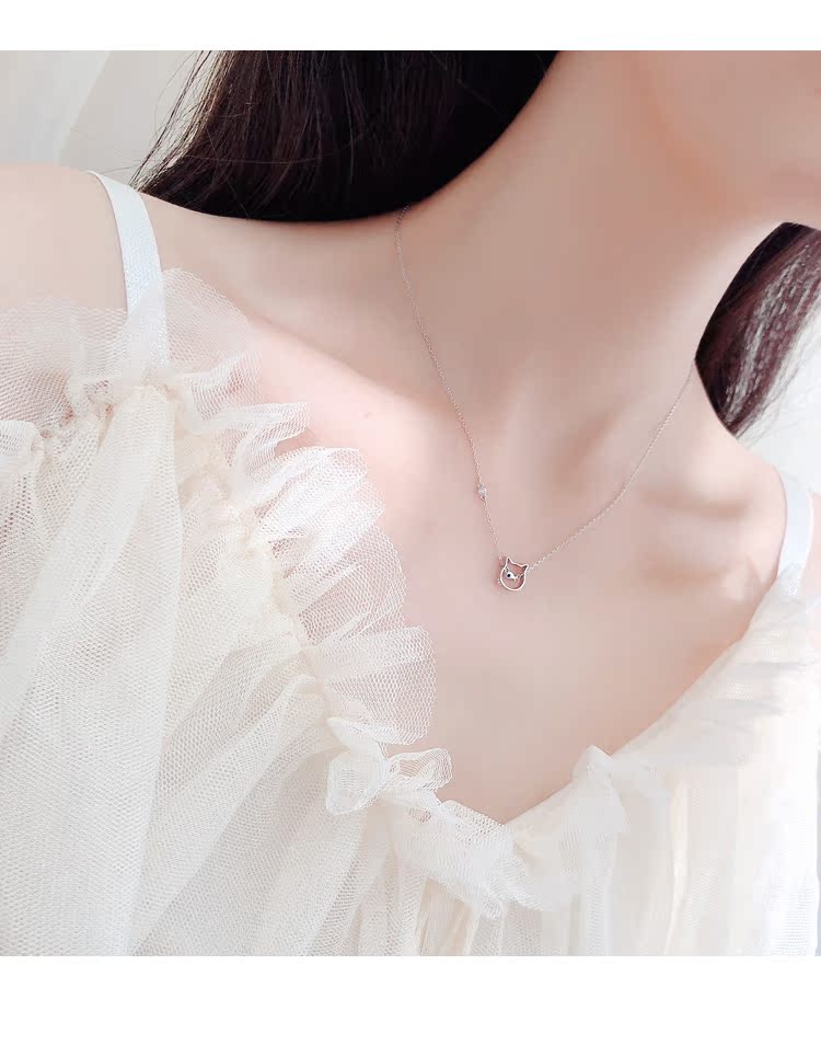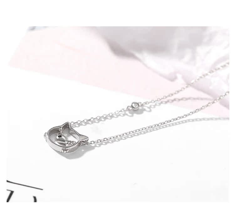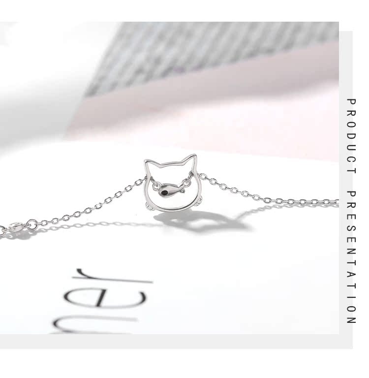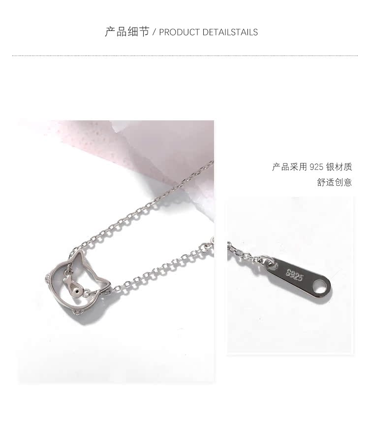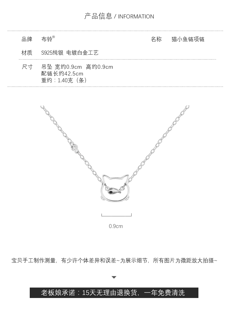 貓小魚項鏈吊墜純銀韓版可愛氣質女1入