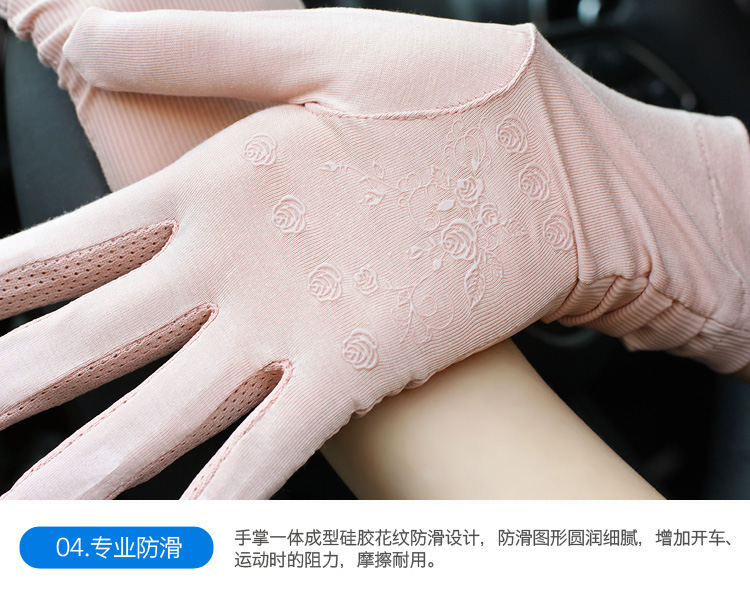 春秋夏季防紫外線防滑觸摸屏冰絲蕾絲開車駕駛薄款全指防曬手套女1入