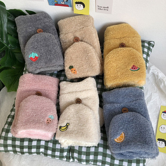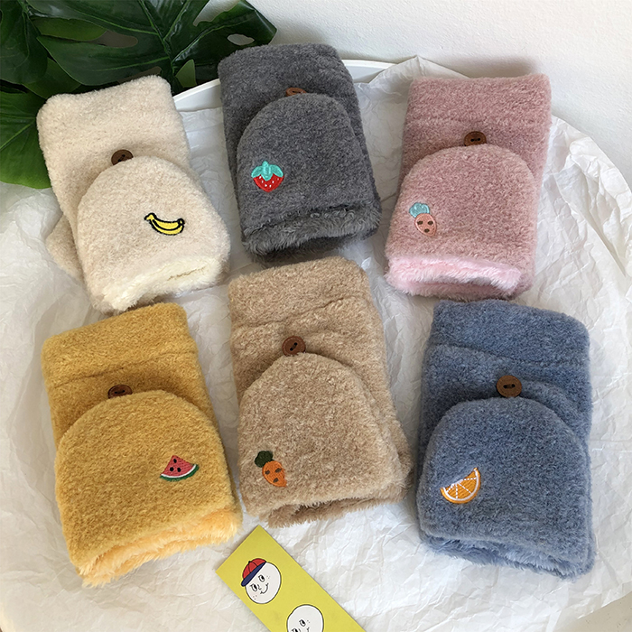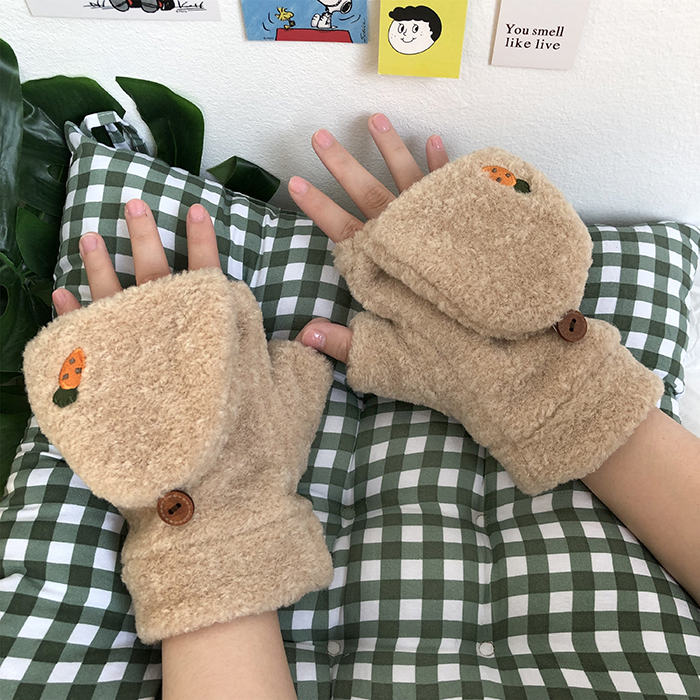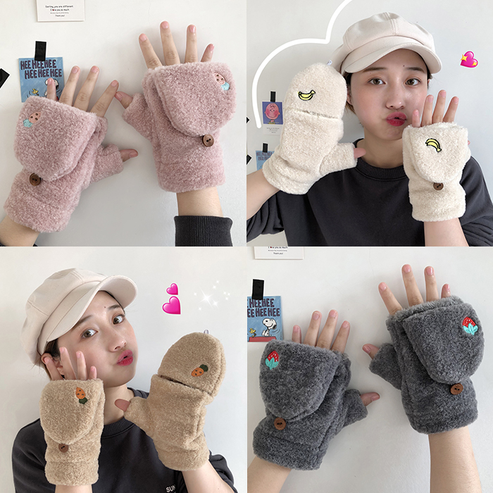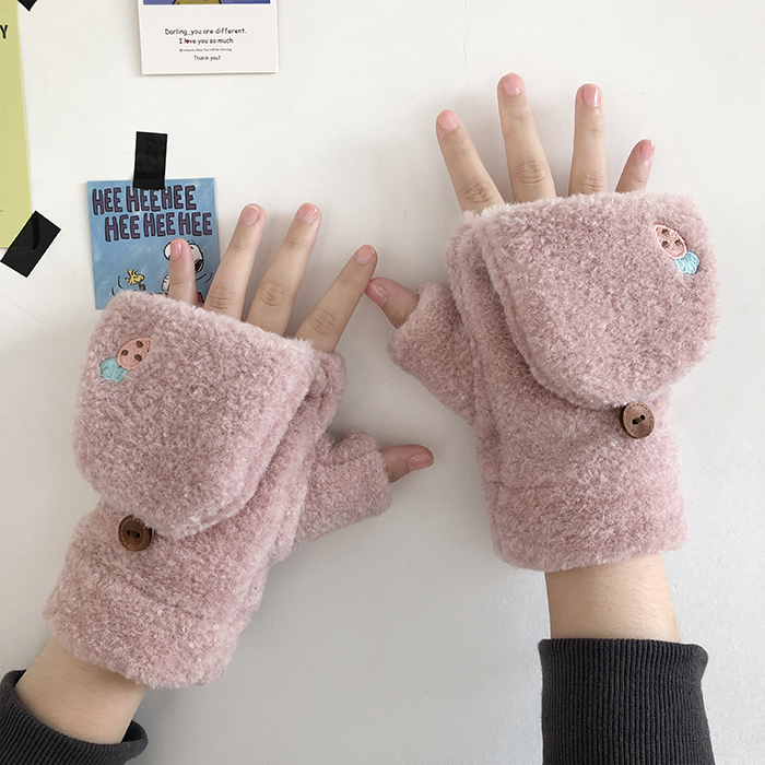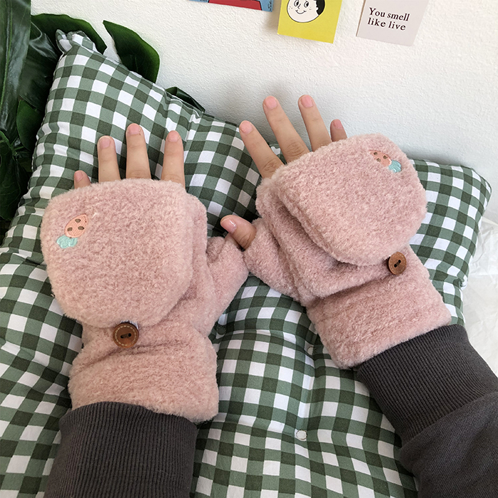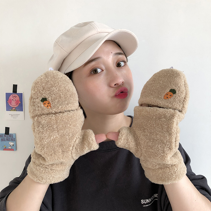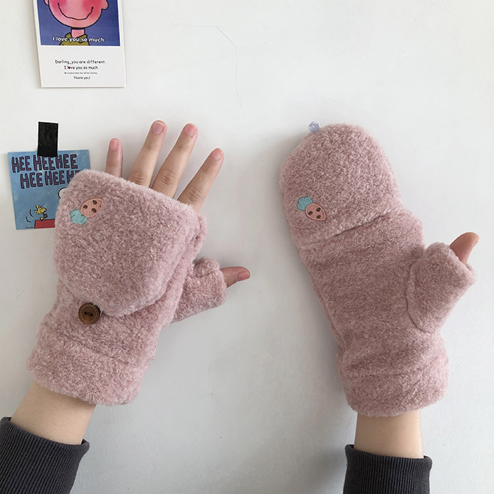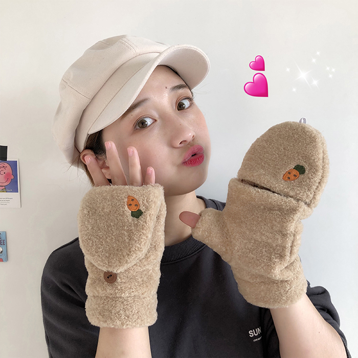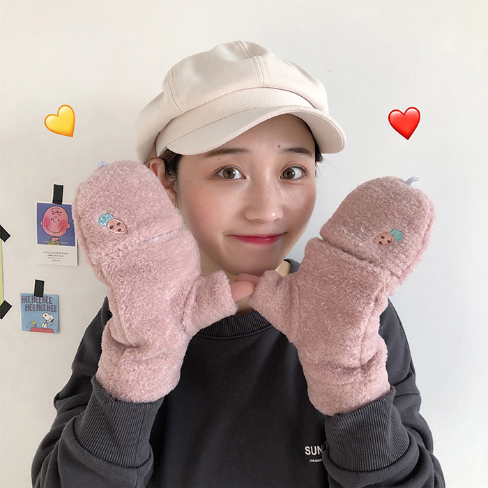 韓版冬季網紅少女心翻蓋五指全包兩用毛絨手套~