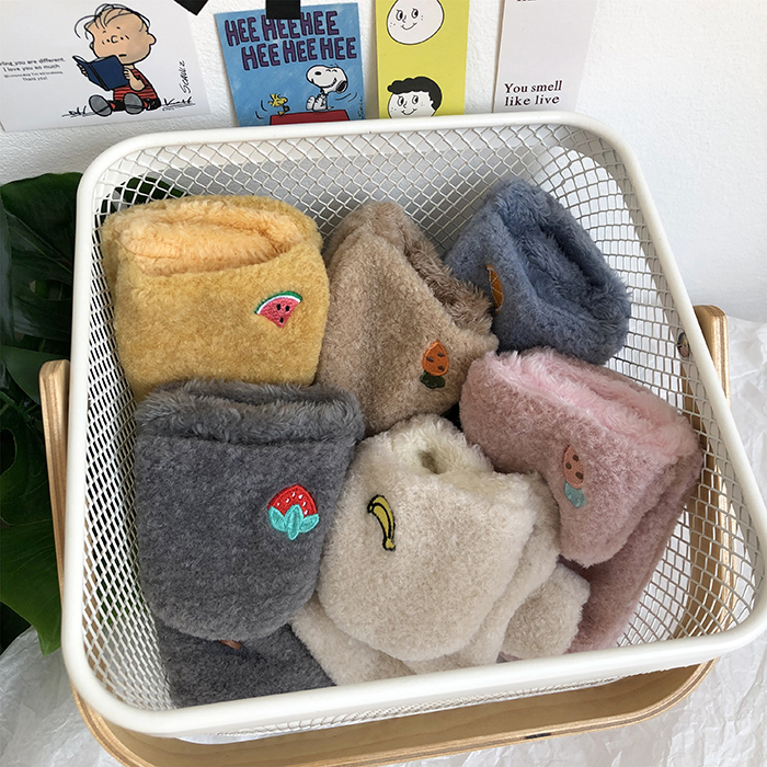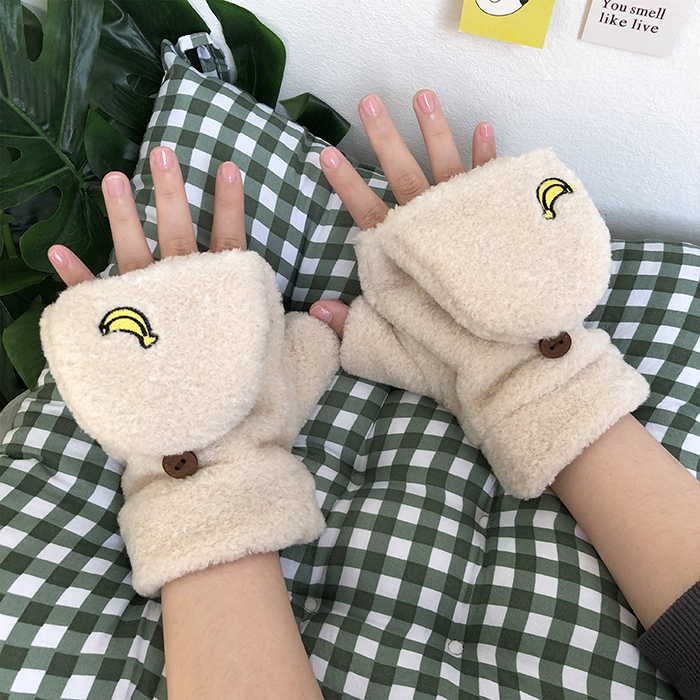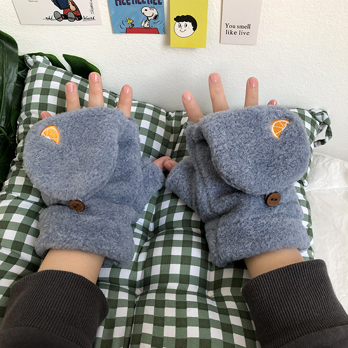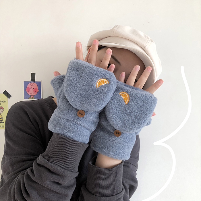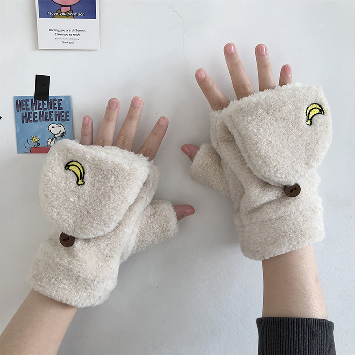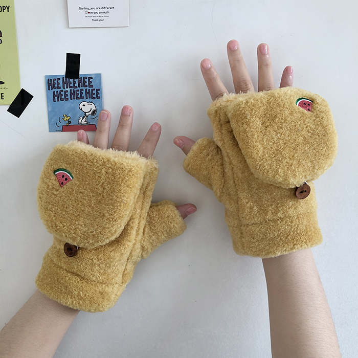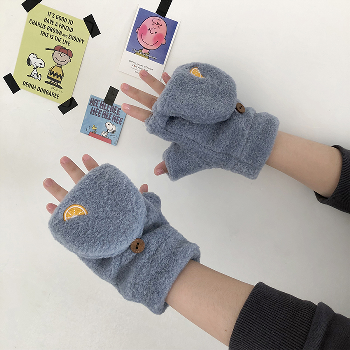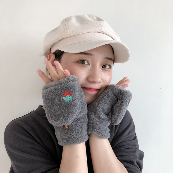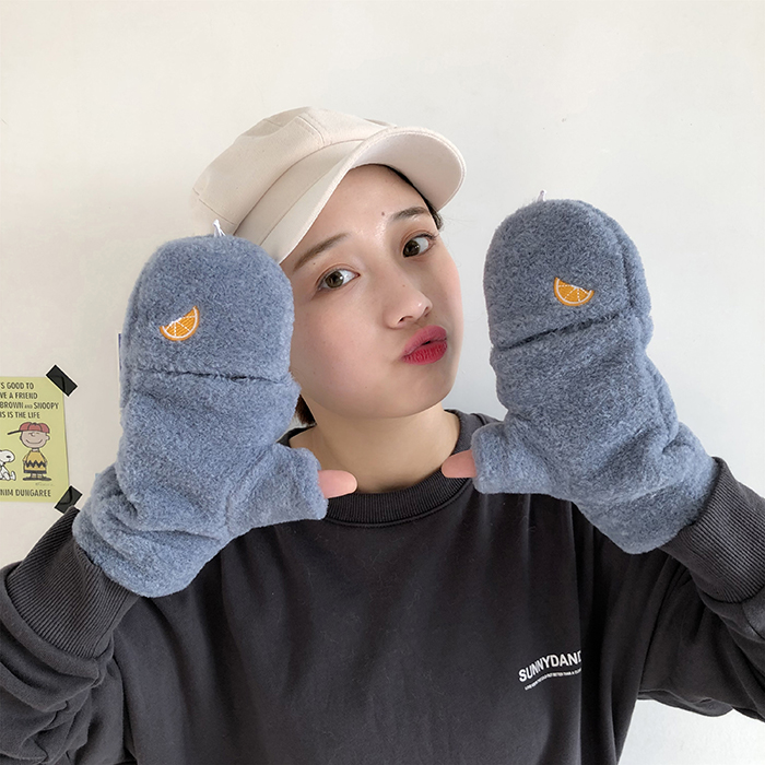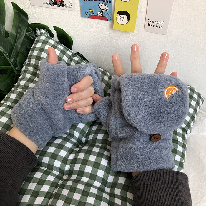 韓版冬季網紅少女心翻蓋五指全包兩用毛絨手套~