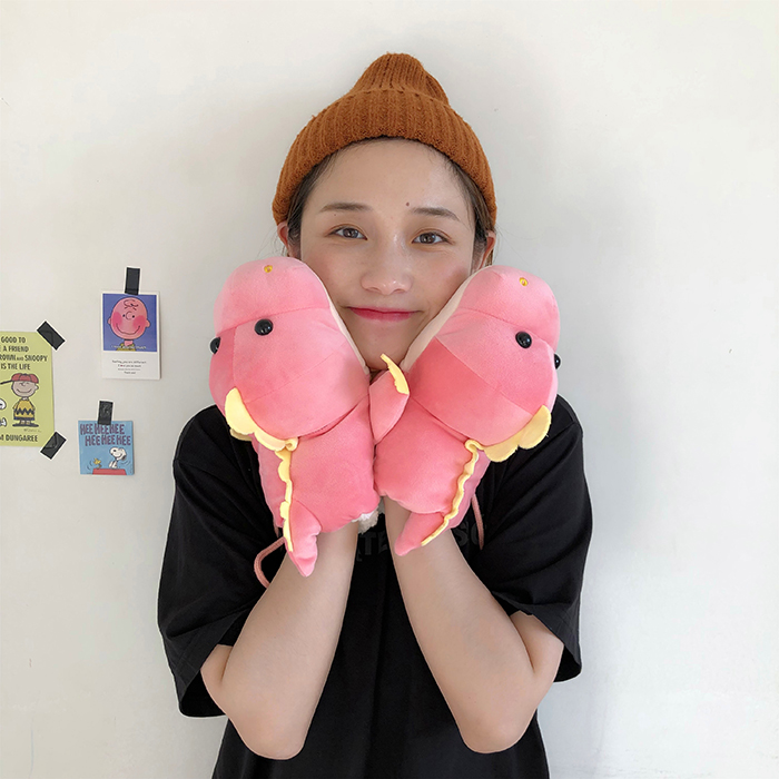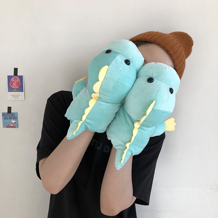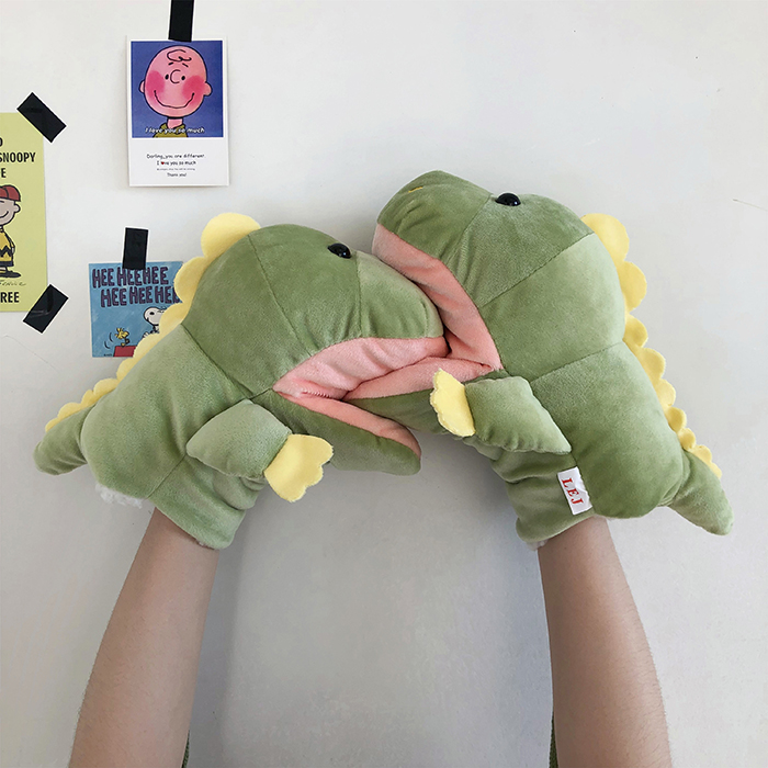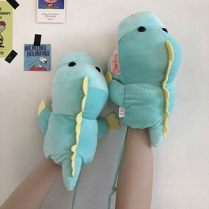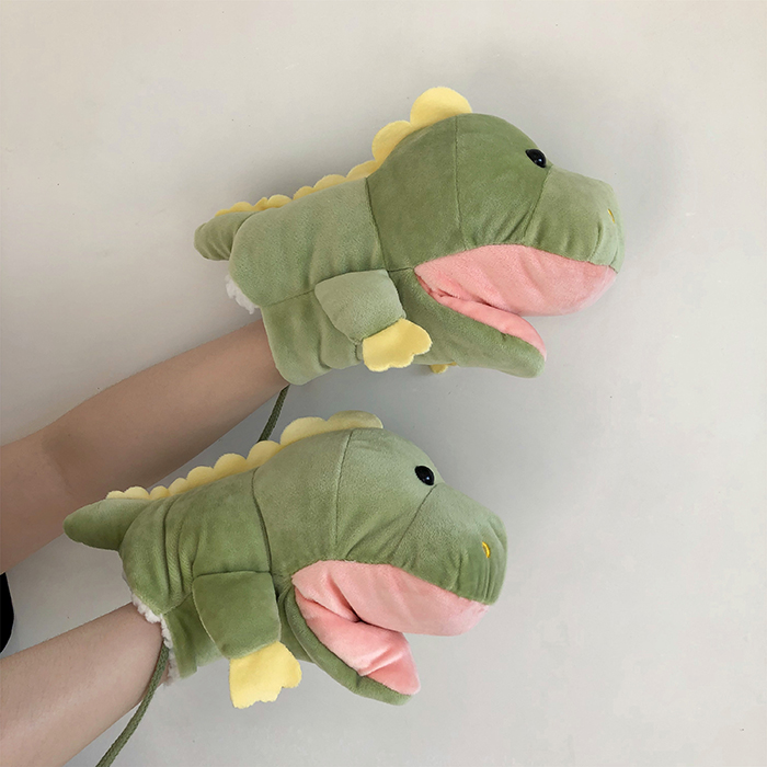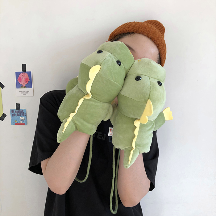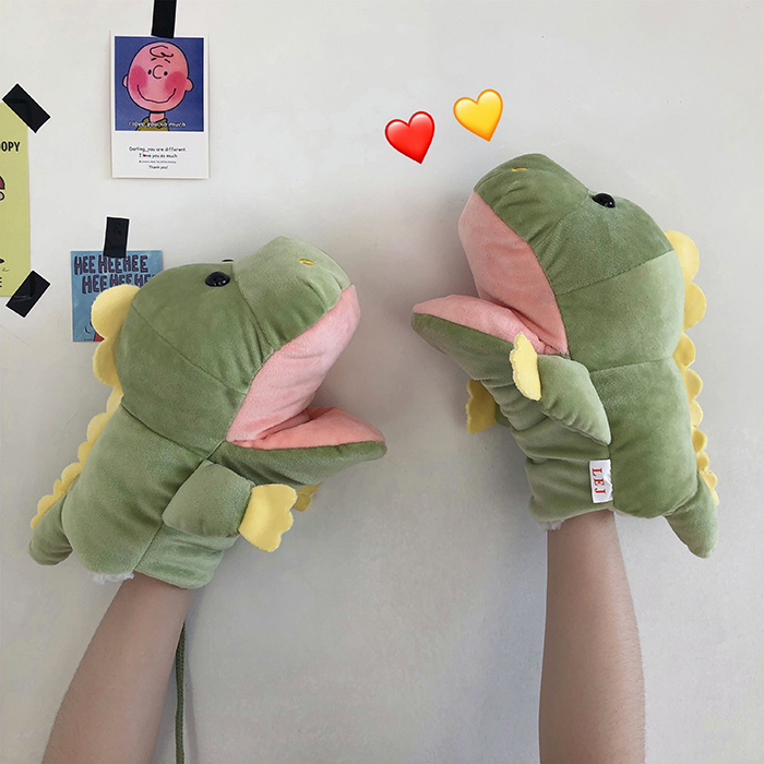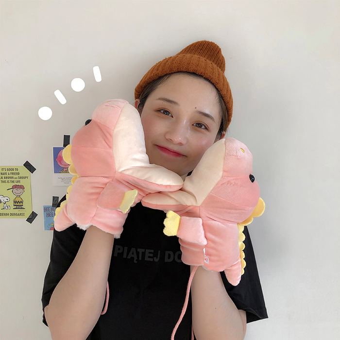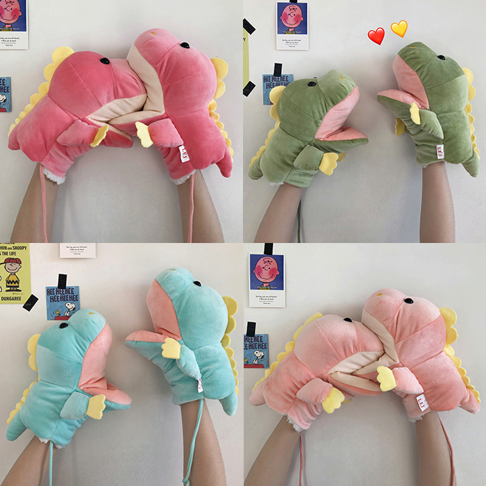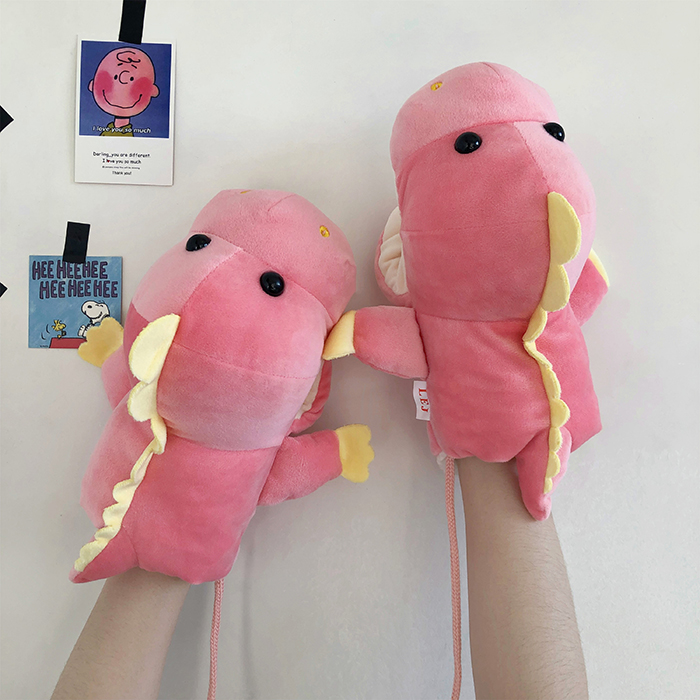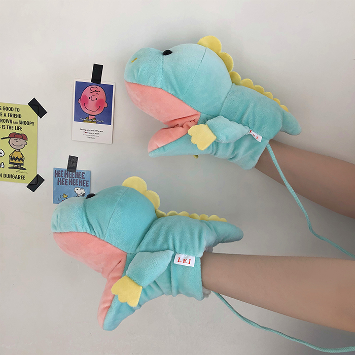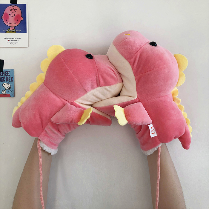 ins少女心卡通新款毛絨絨保暖加厚恐龍掛脖手套~