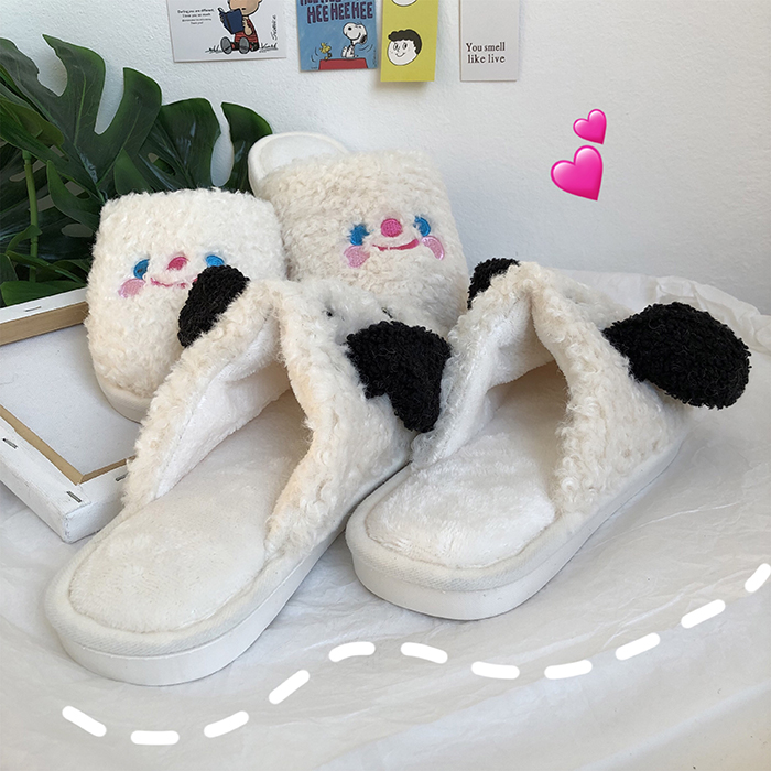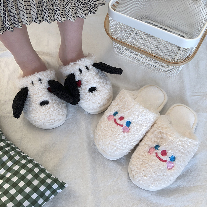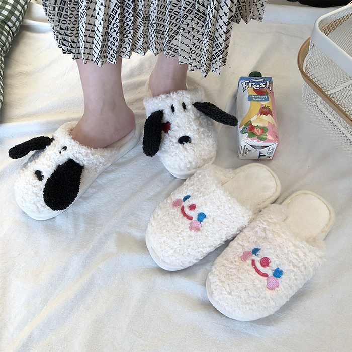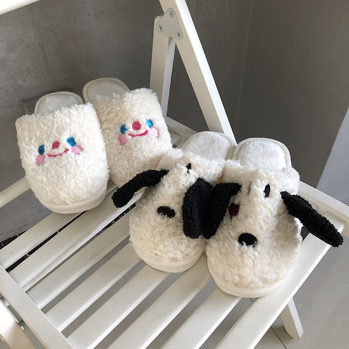 韓國ins卡通軟萌毛絨絨云朵笑臉小狗狗棉拖鞋~